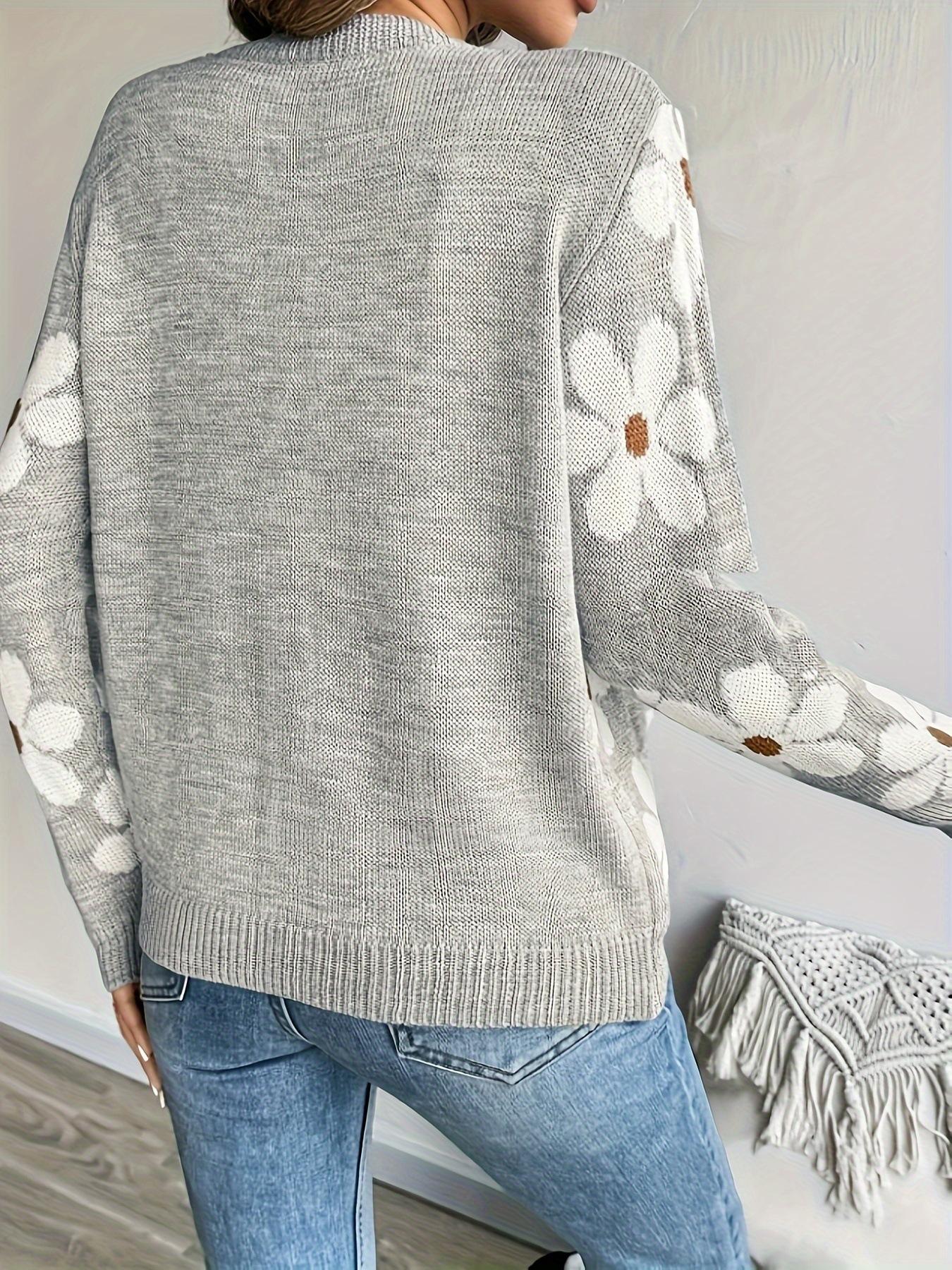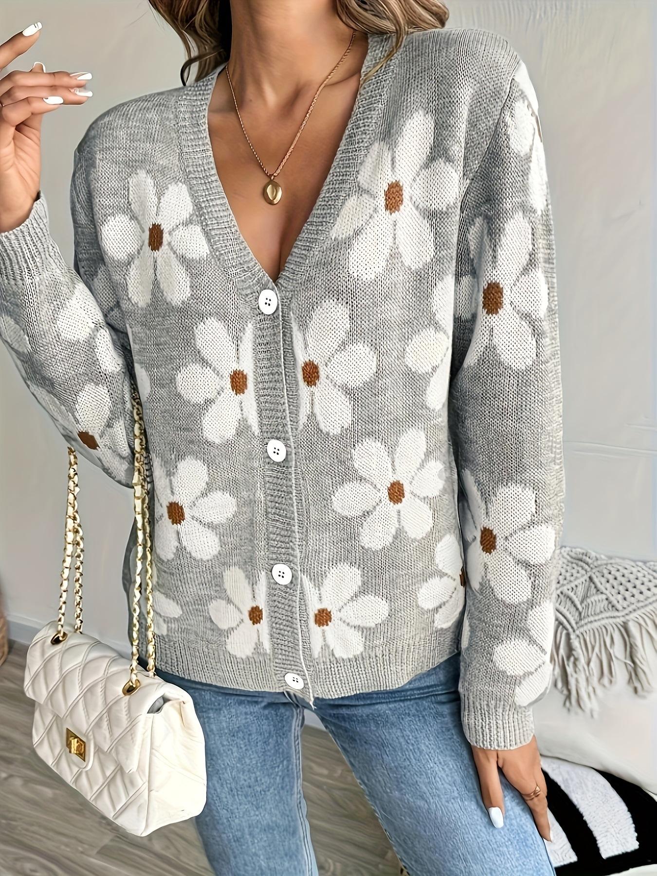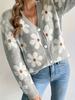 Tejido de Punto Floral Europeo y Americano Transfronterizo para Mujer Otoño e Invierno Nuevo Cárdigan Cuello V Tejido Jacquard Ropa Exterior para Mujer