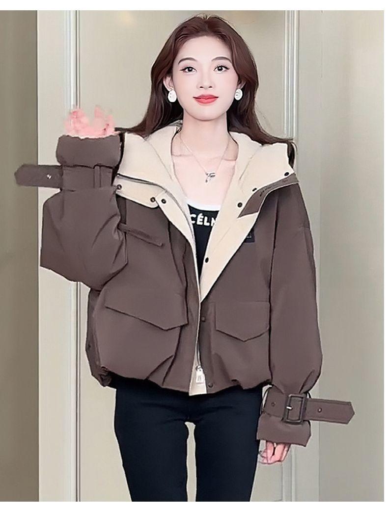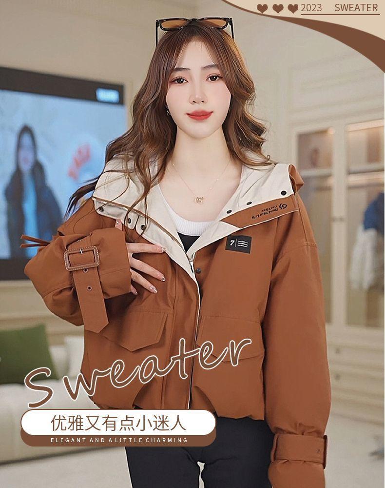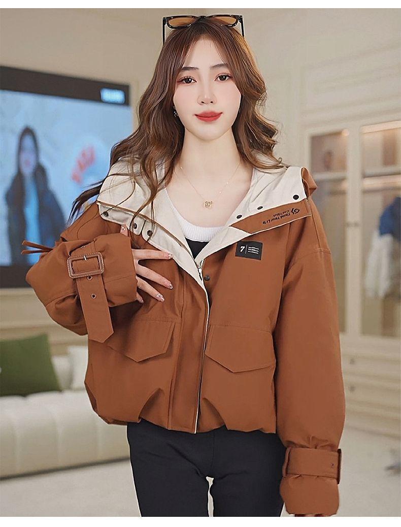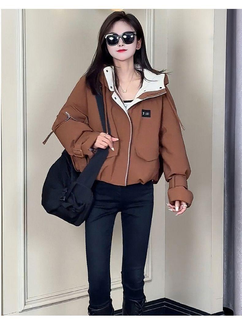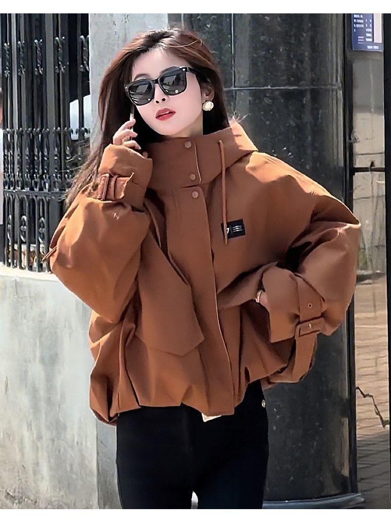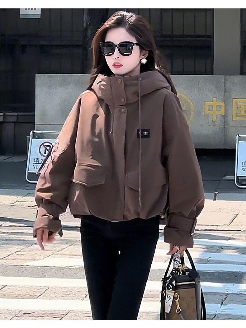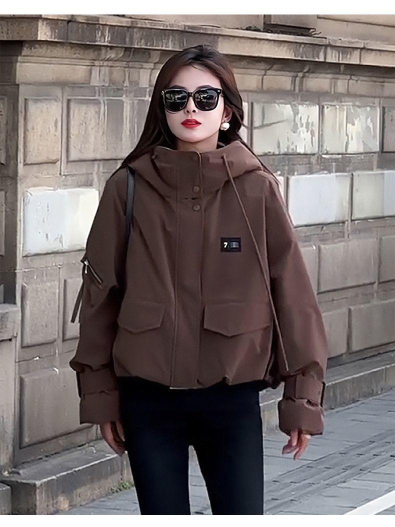 Chamarra corta de trabajo con plumón para mujer 2025 Invierno Nuevo Estilo Coreano Suelta Casual Moda Chaqueta con capucha