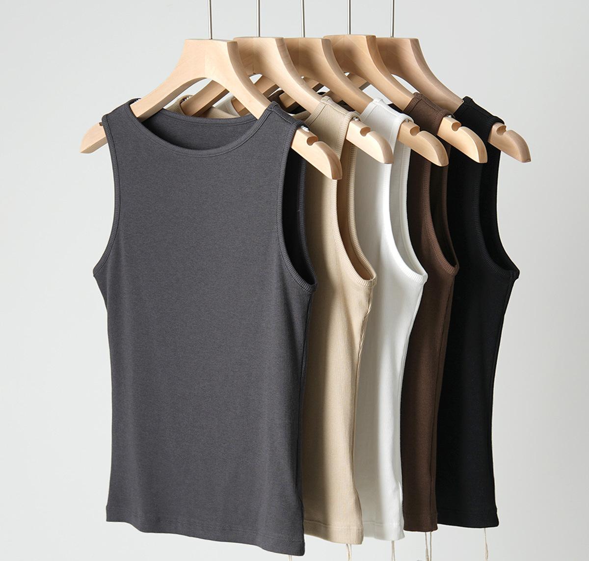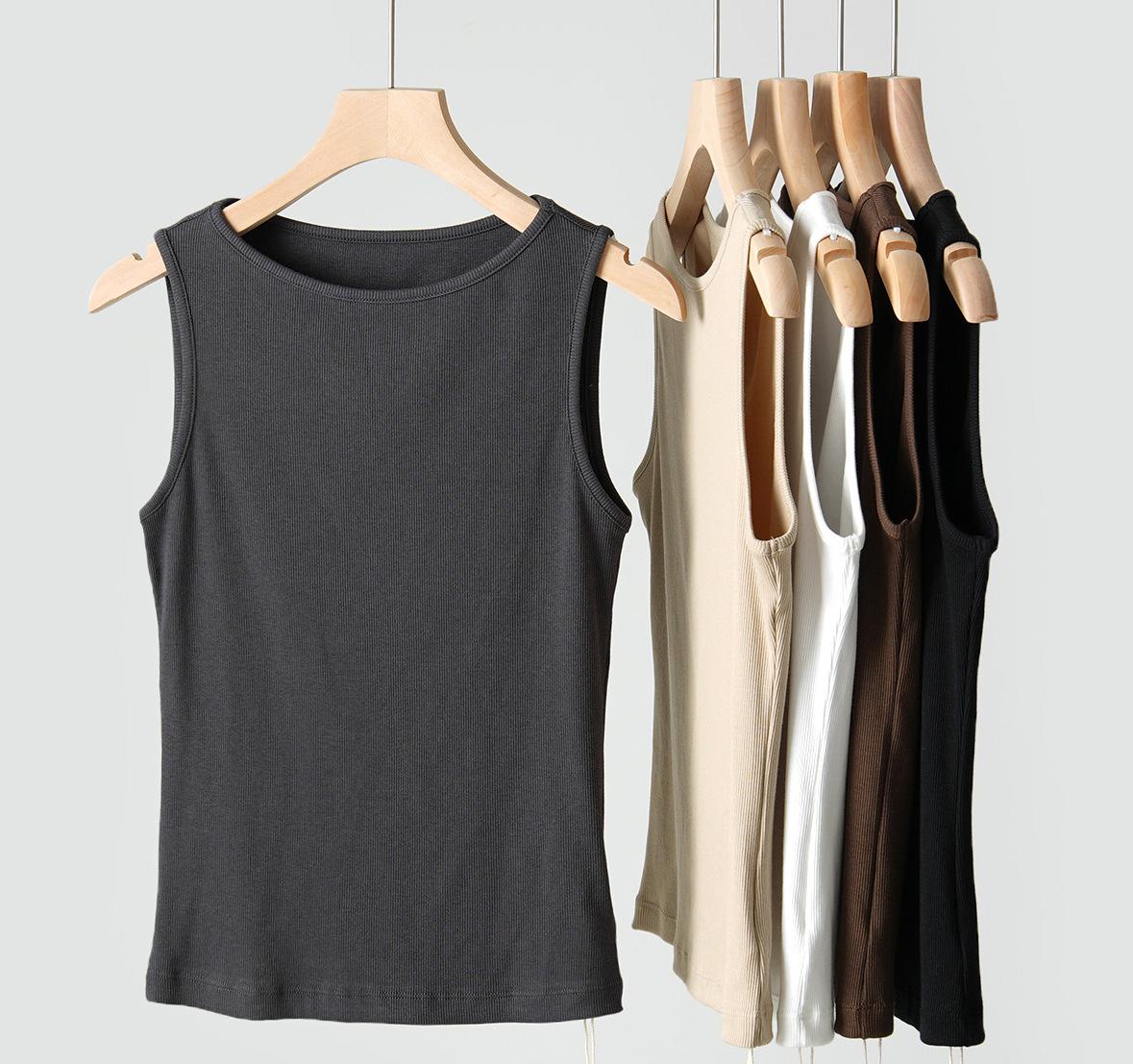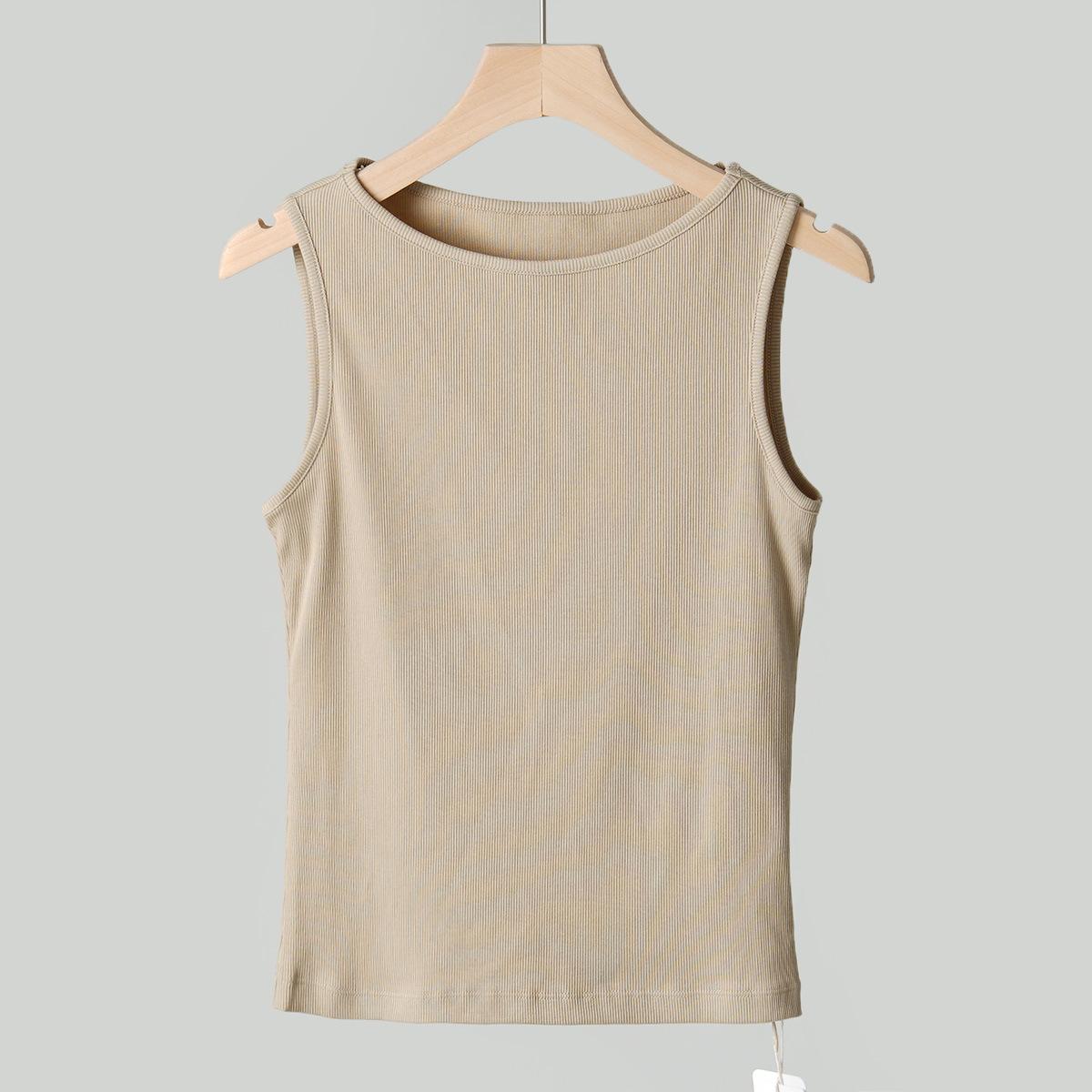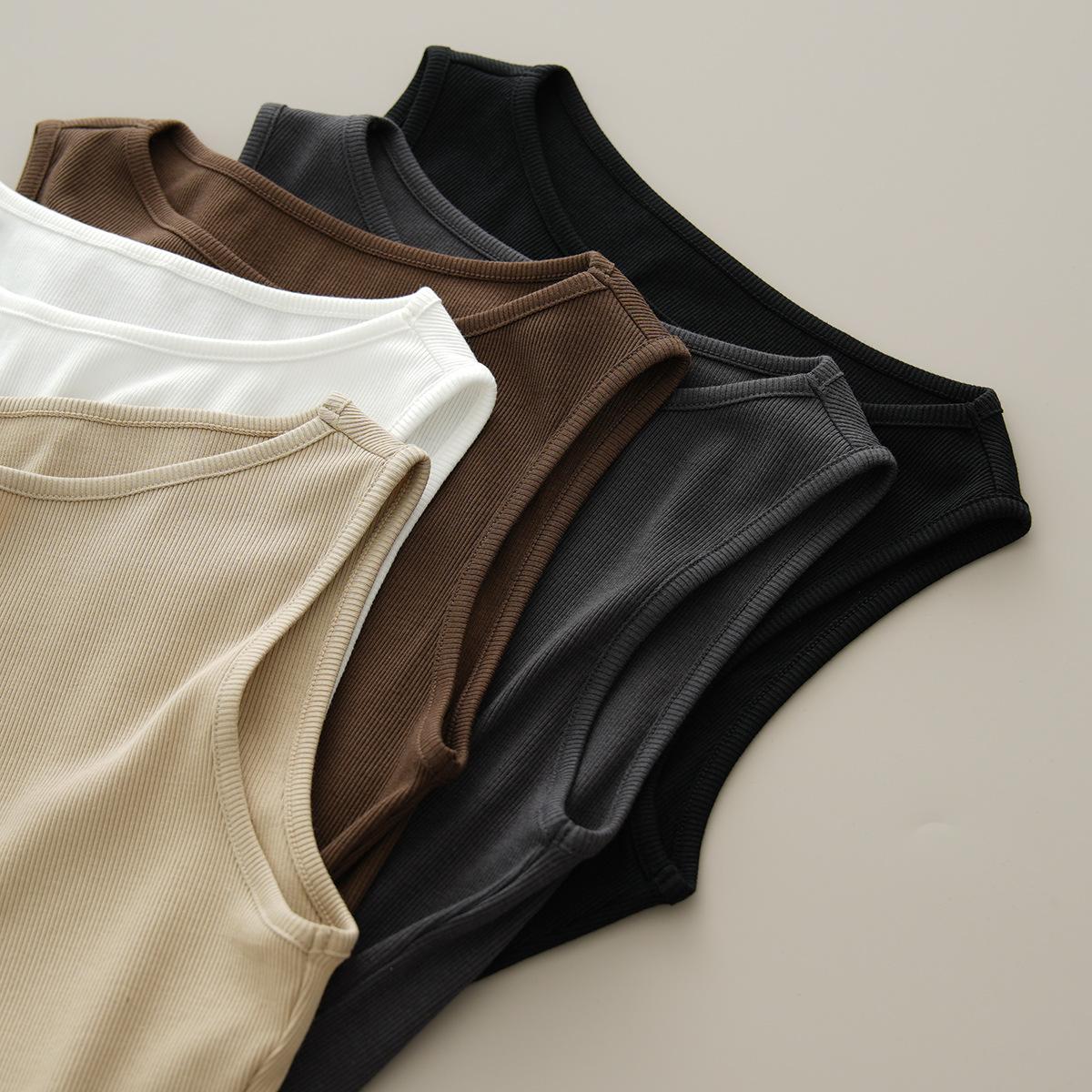 & Buen Material & Hilo de Algodón de Alta Elasticidad Tirante Ancho de Hombro Chaleco sin Mangas para Mujer 2025 Verano Nuevo Ajustado para Usar Debajo para Usar Encima Tirante