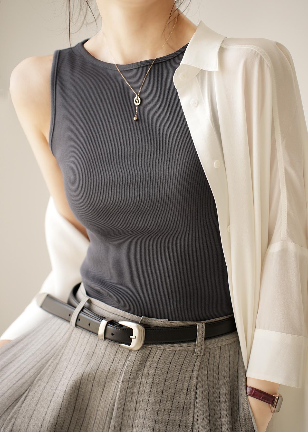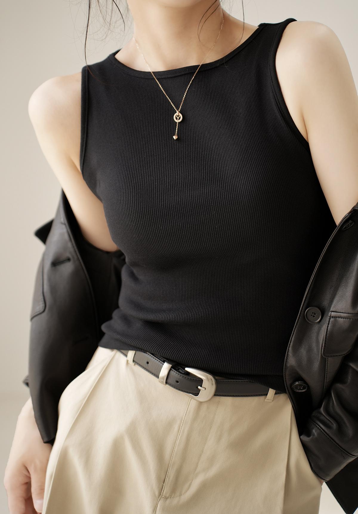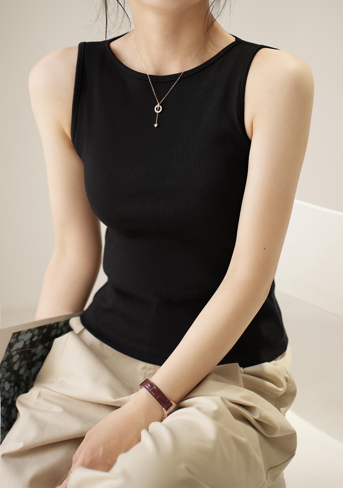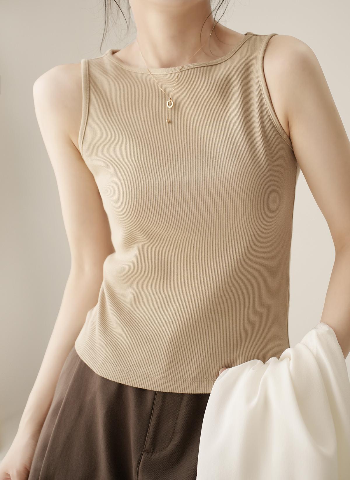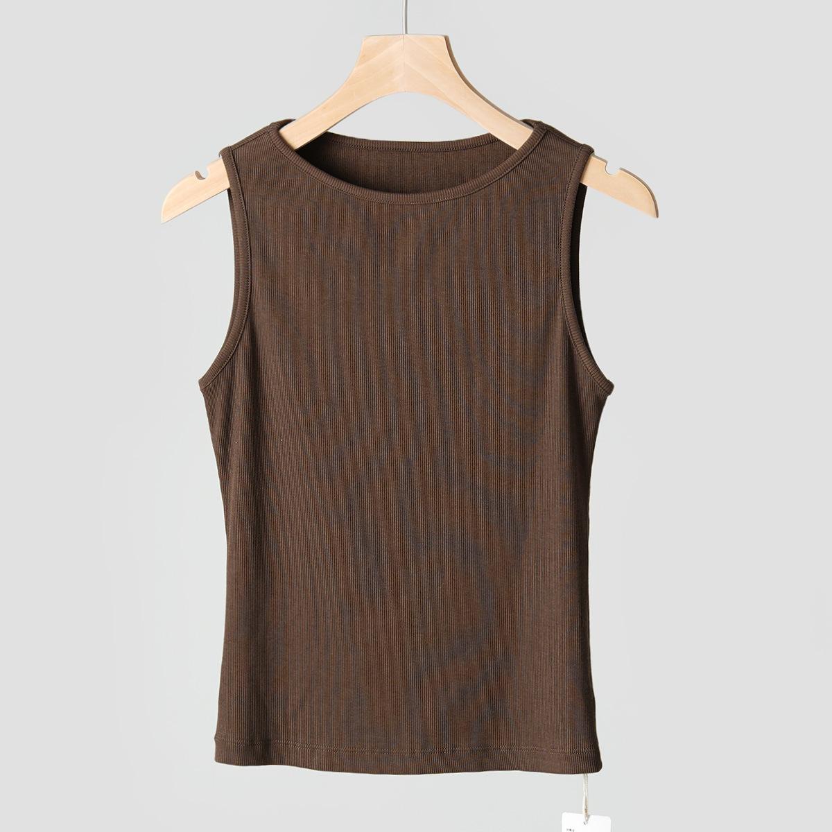 & Buen Material & Hilo de Algodón de Alta Elasticidad Tirante Ancho de Hombro Chaleco sin Mangas para Mujer 2025 Verano Nuevo Ajustado para Usar Debajo para Usar Encima Tirante