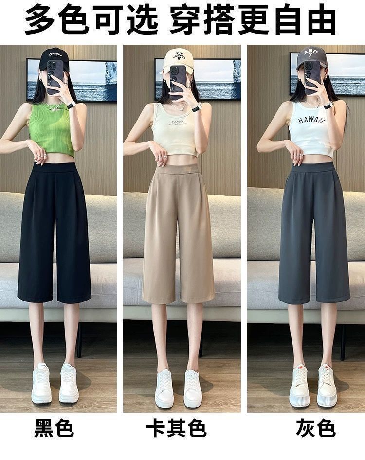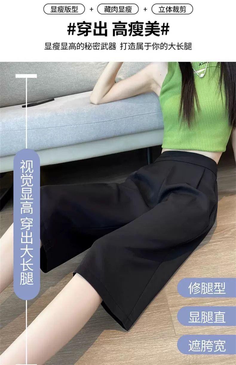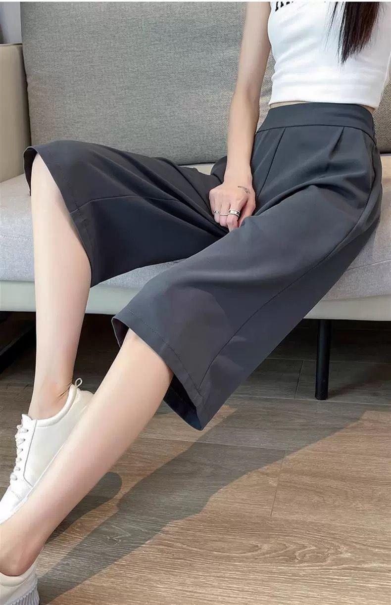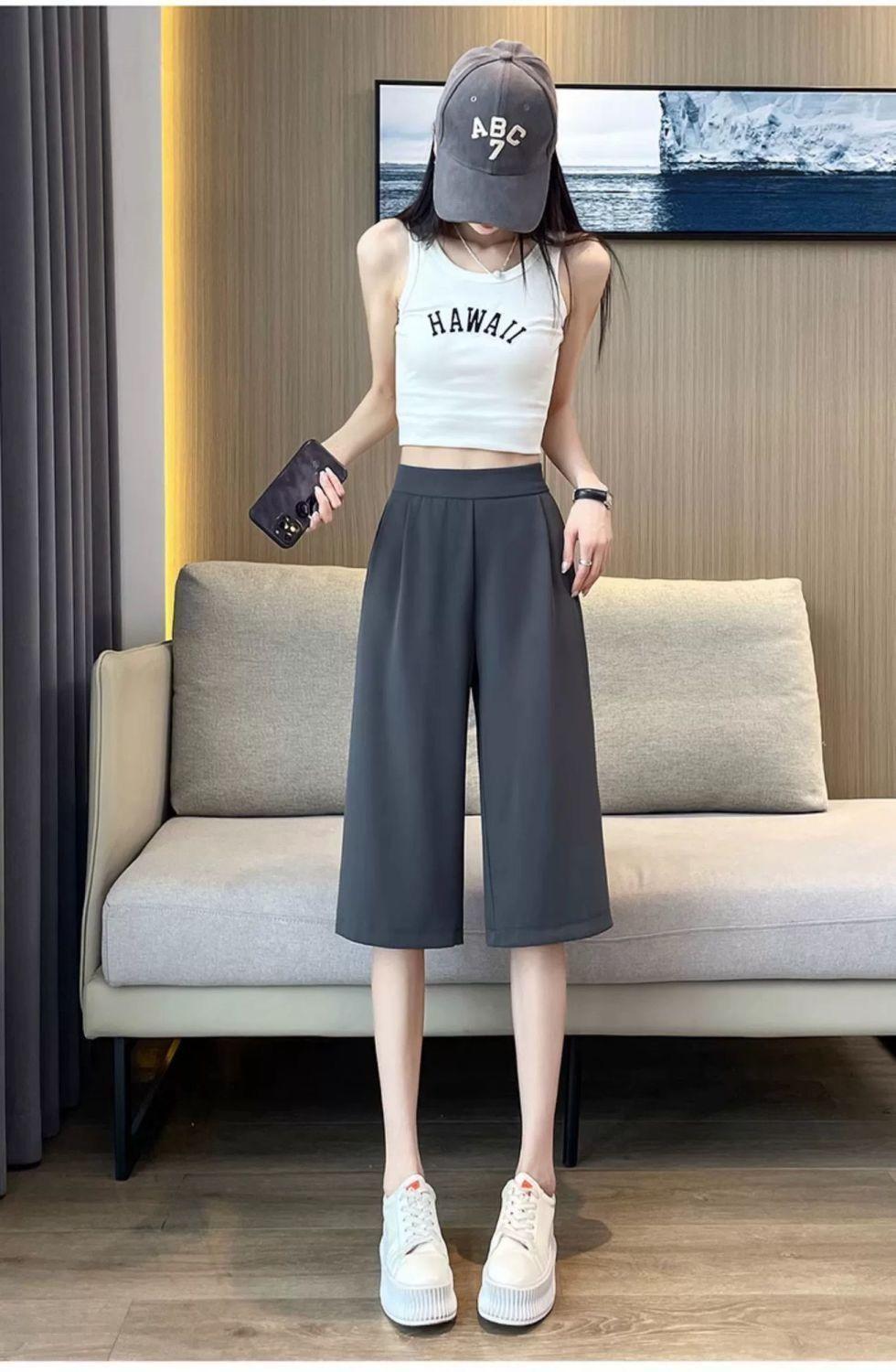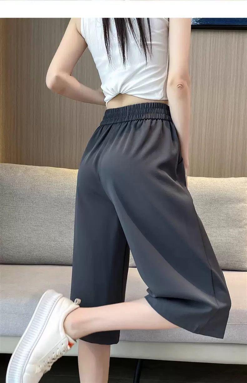 Traje Pantalones Cortos Pantalones de Pierna Ancha de Seda Helada de Verano para Mujer 2024 Nuevo Estilo Delgados Casuales Sueltos Rectos para Verano