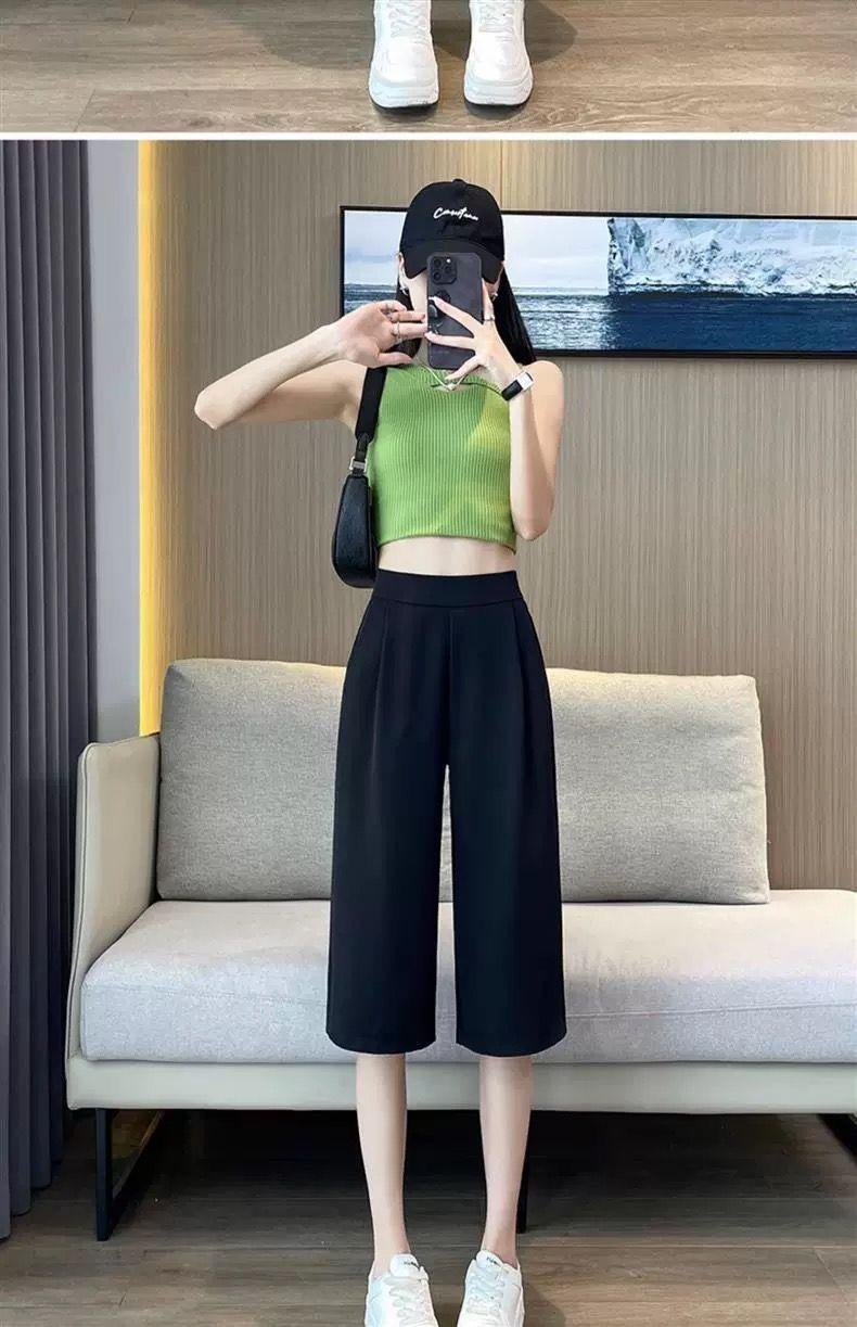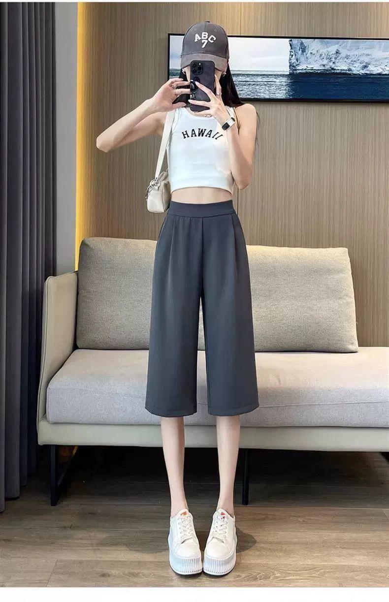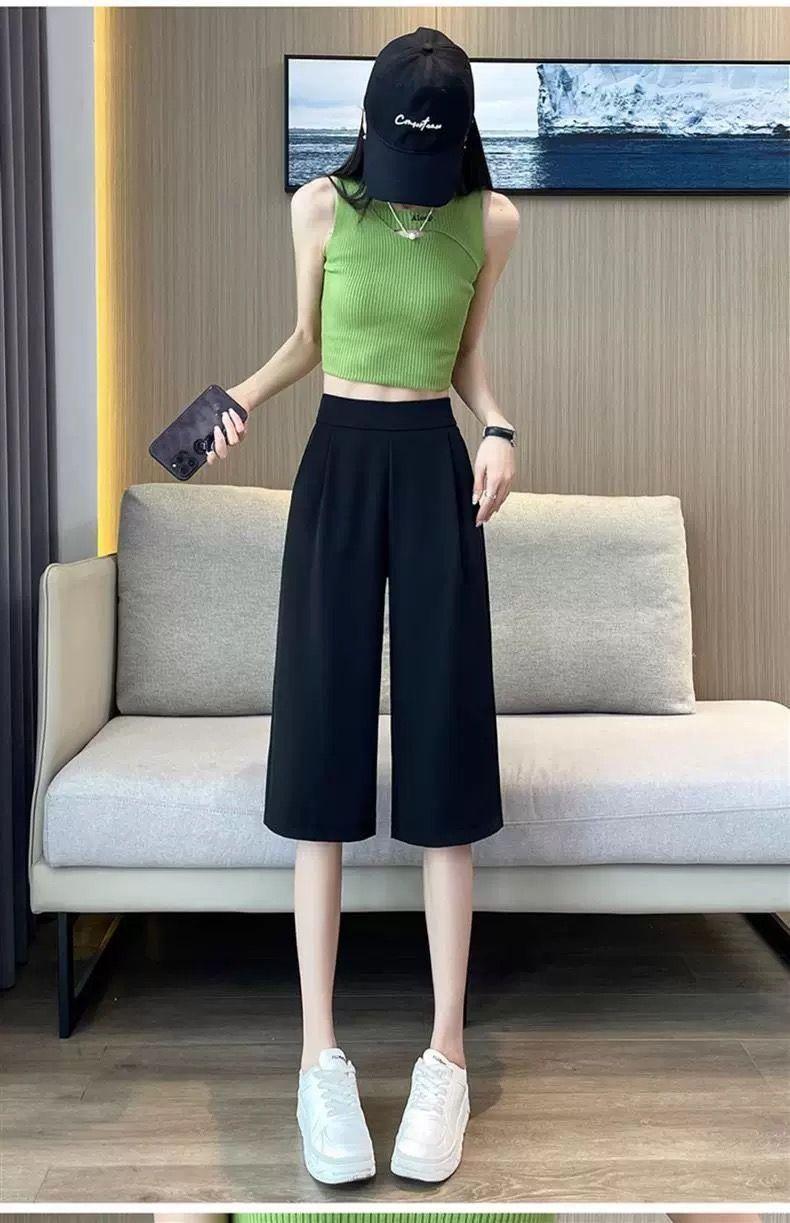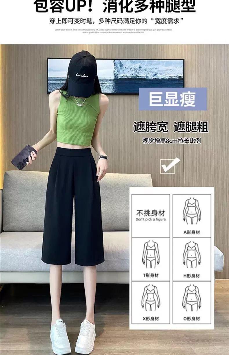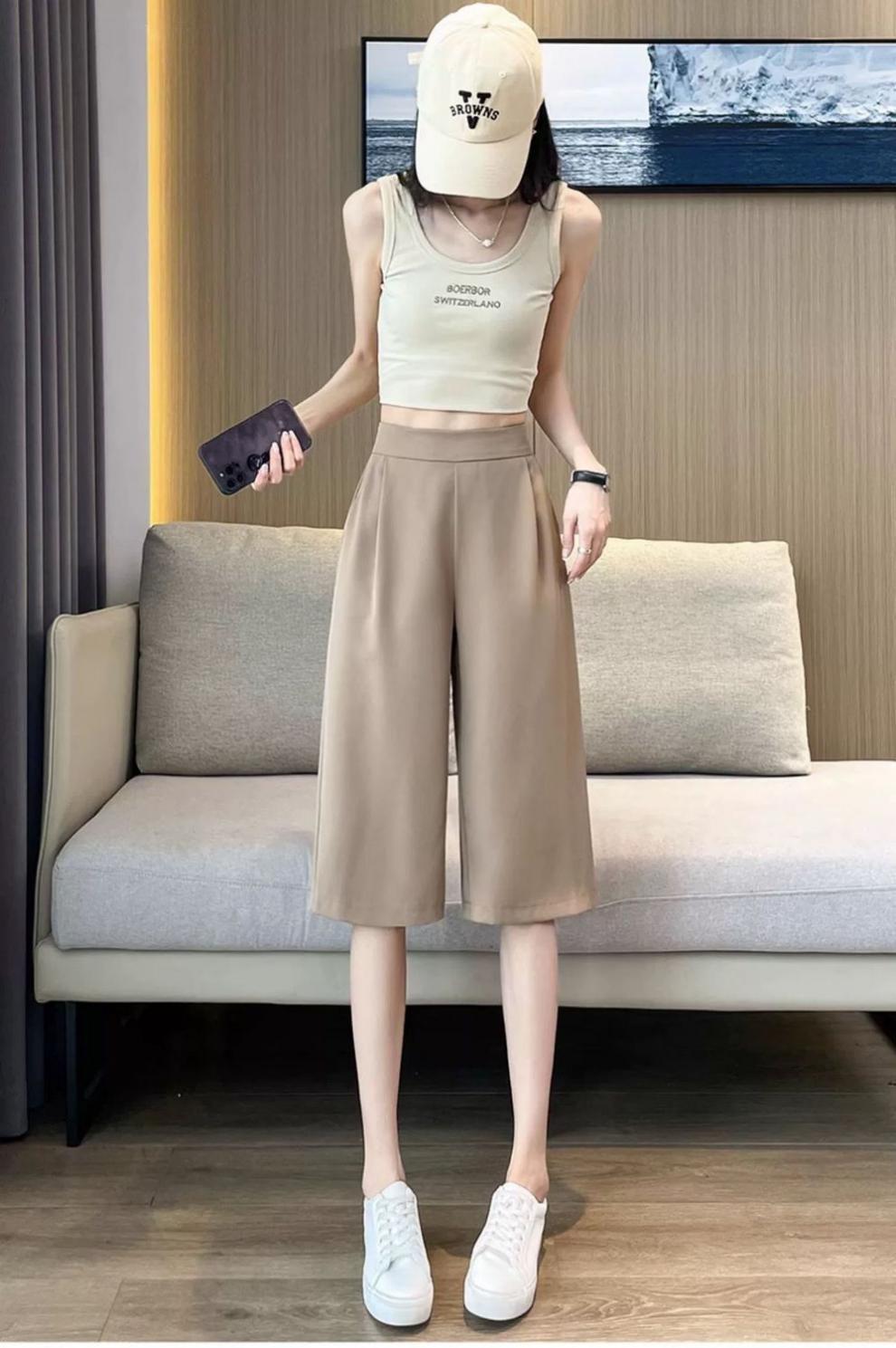 Traje Pantalones Cortos Pantalones de Pierna Ancha de Seda Helada de Verano para Mujer 2024 Nuevo Estilo Delgados Casuales Sueltos Rectos para Verano