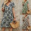2025 Verano Nuevo Ropa de Mujer Transfronteriza Europea y Americana Amazon Ebay Cuello Redondo Estampado Talla Grande Vestido de Manga Corta