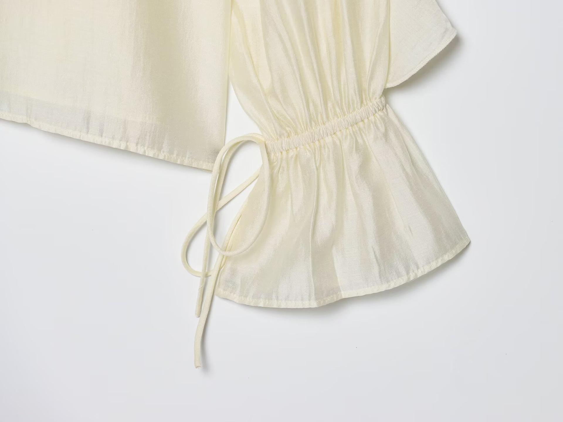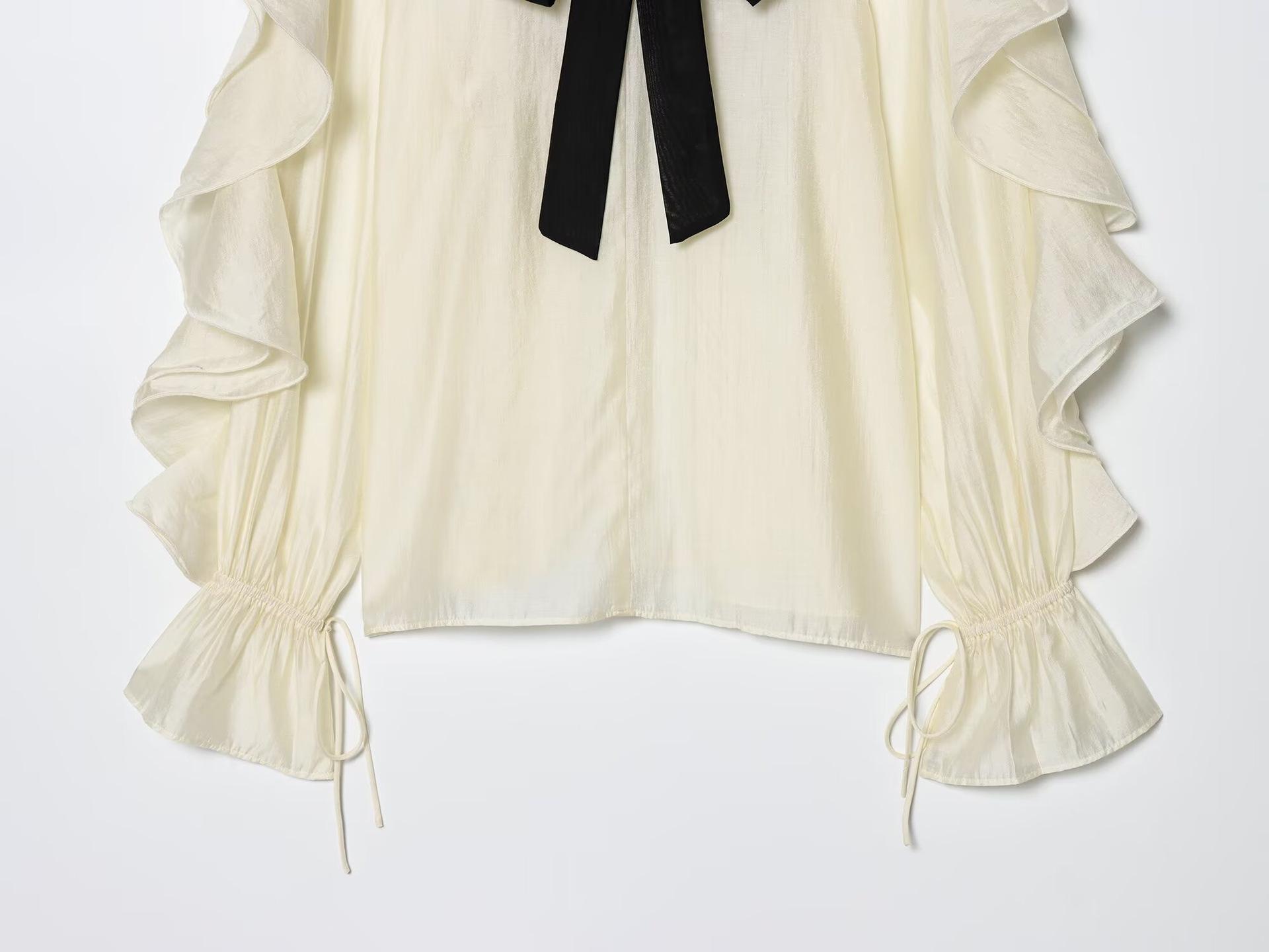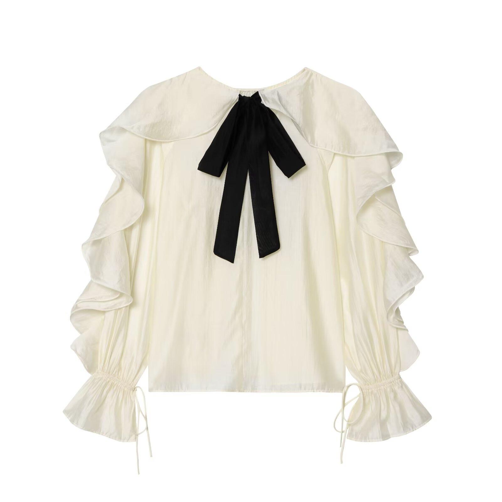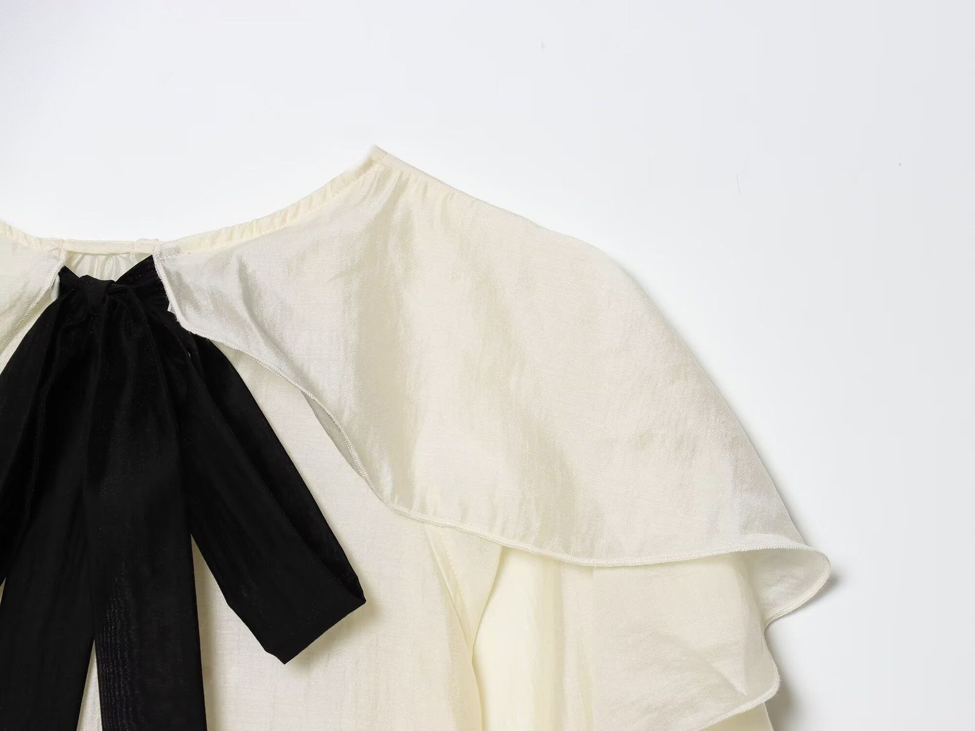 Ropa de Mujer de Comercio Exterior Transfronterizo de Amazon Colección Verano 2025 Diseño de Estilo Preppy Dulce Blusa con Volantes y Lazo