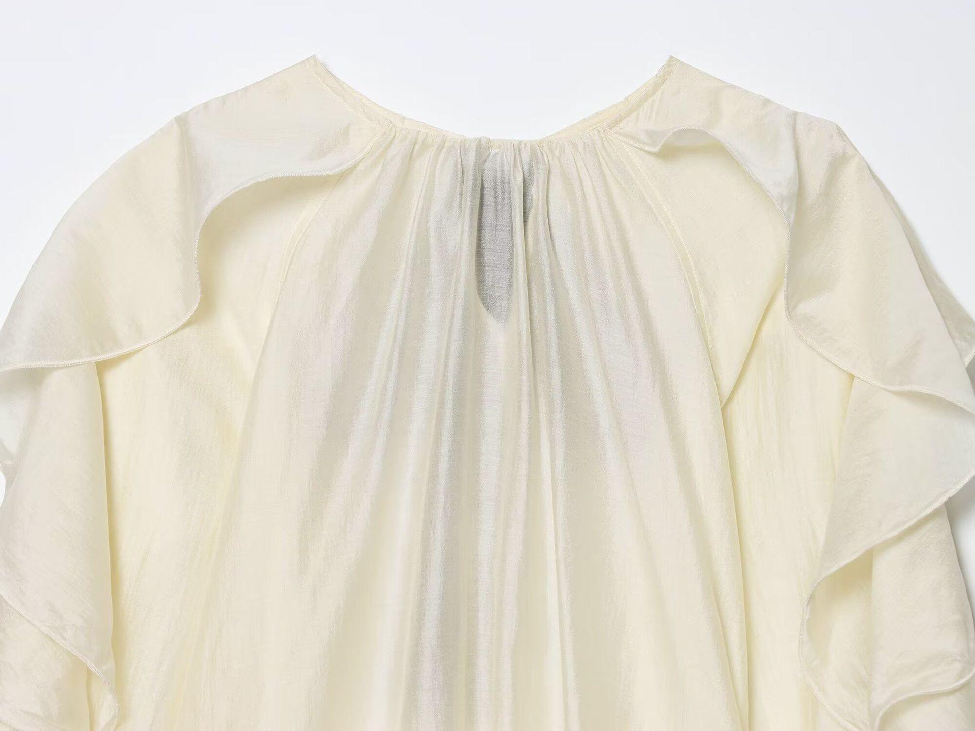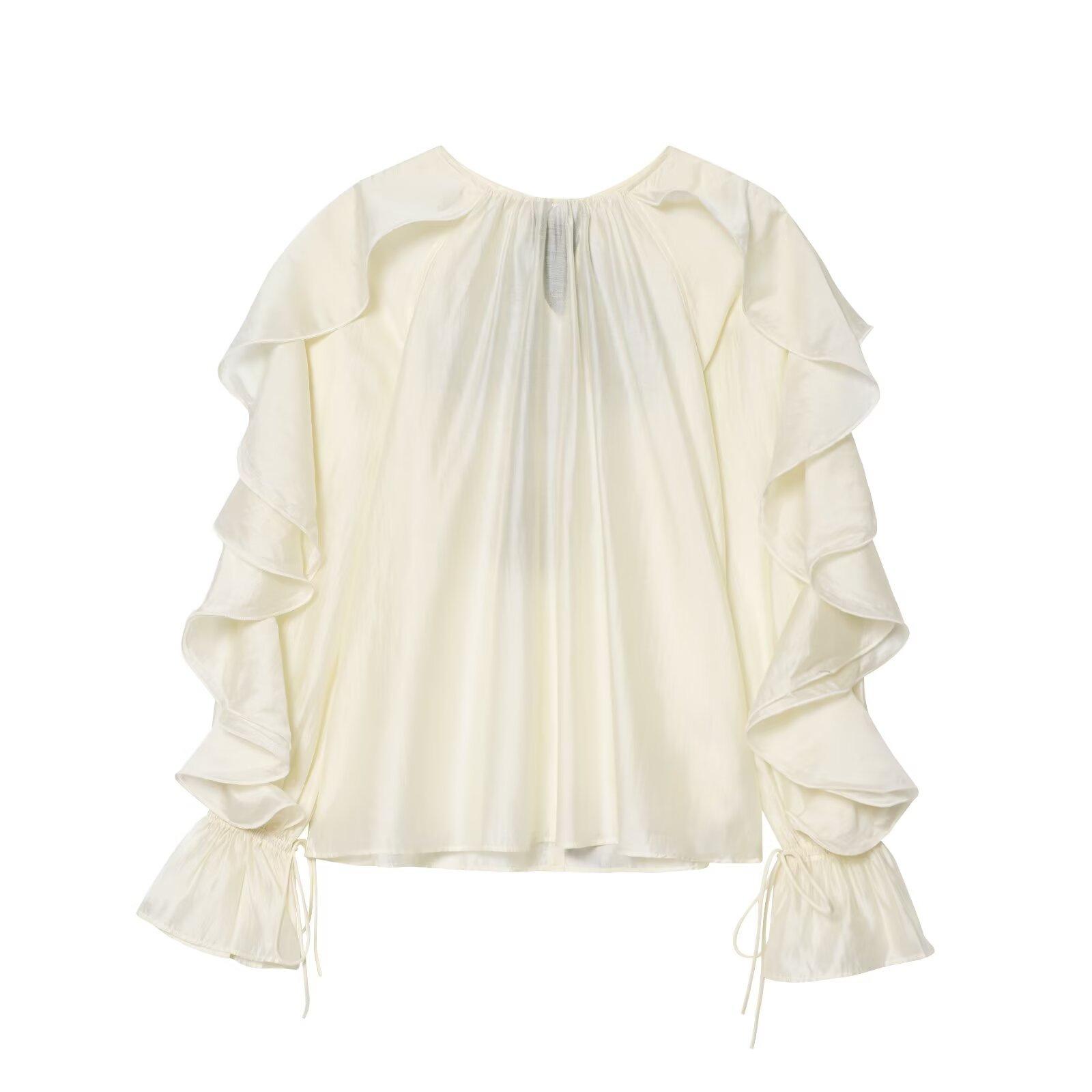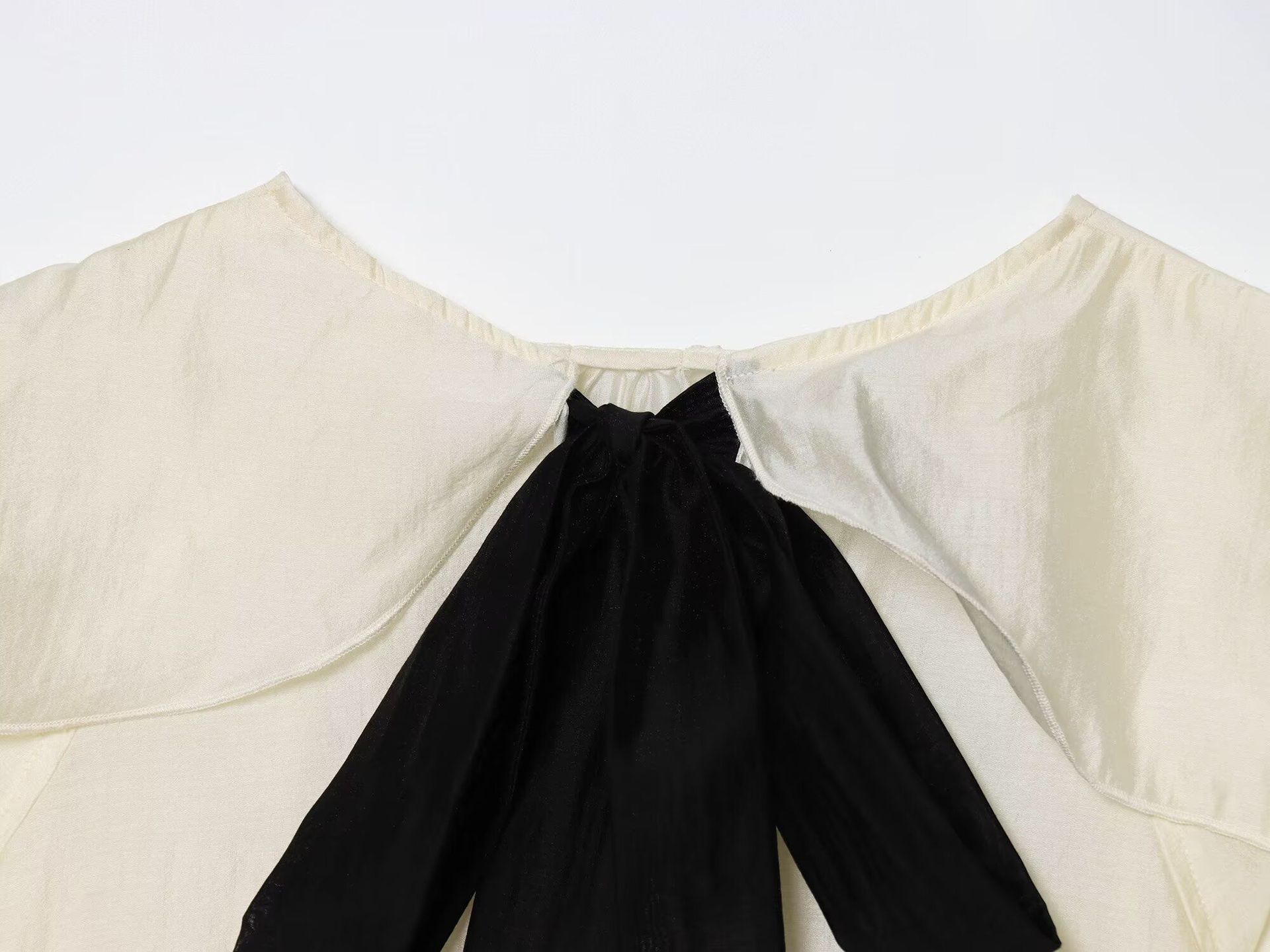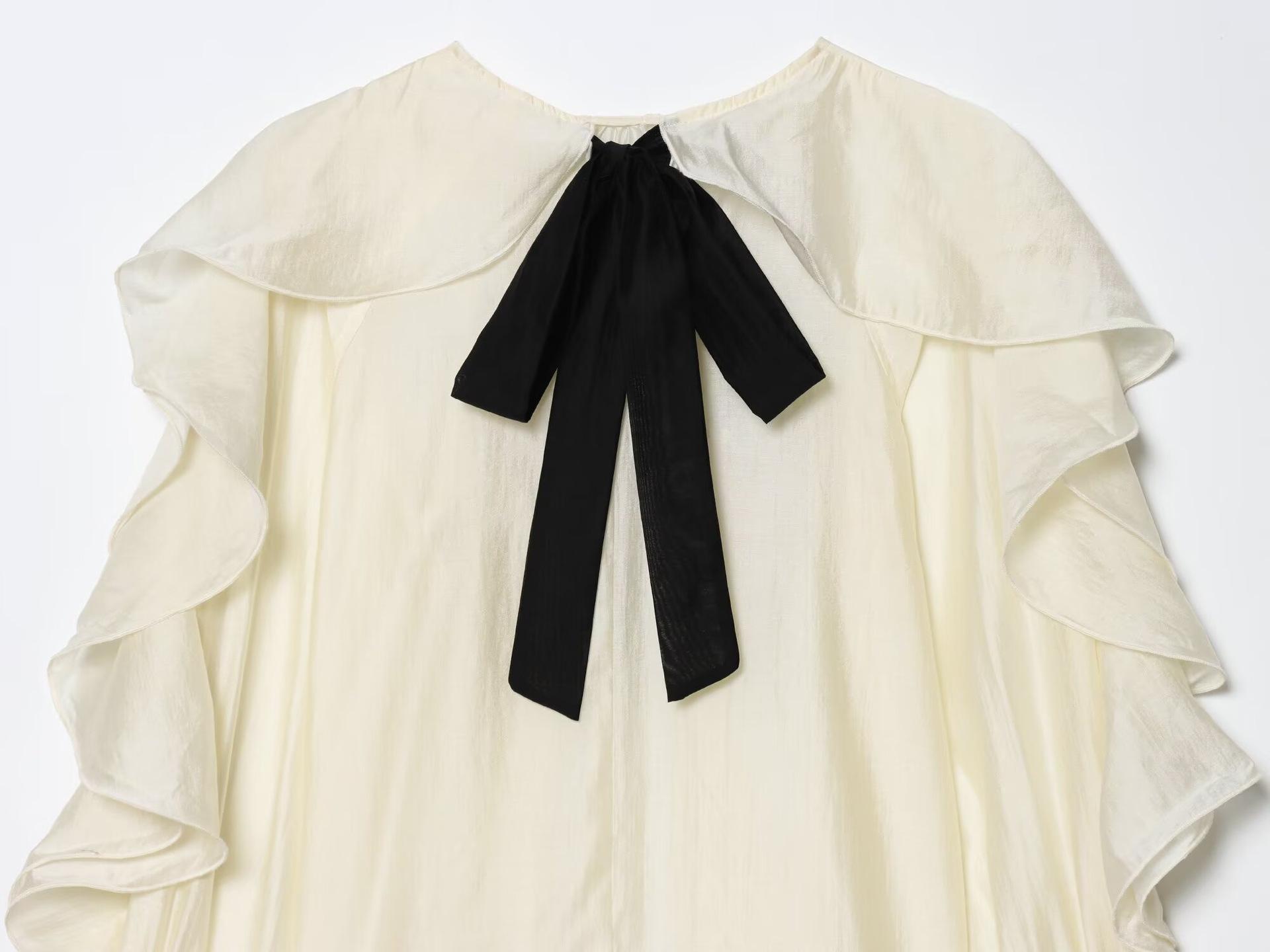 Ropa de Mujer de Comercio Exterior Transfronterizo de Amazon Colección Verano 2025 Diseño de Estilo Preppy Dulce Blusa con Volantes y Lazo
