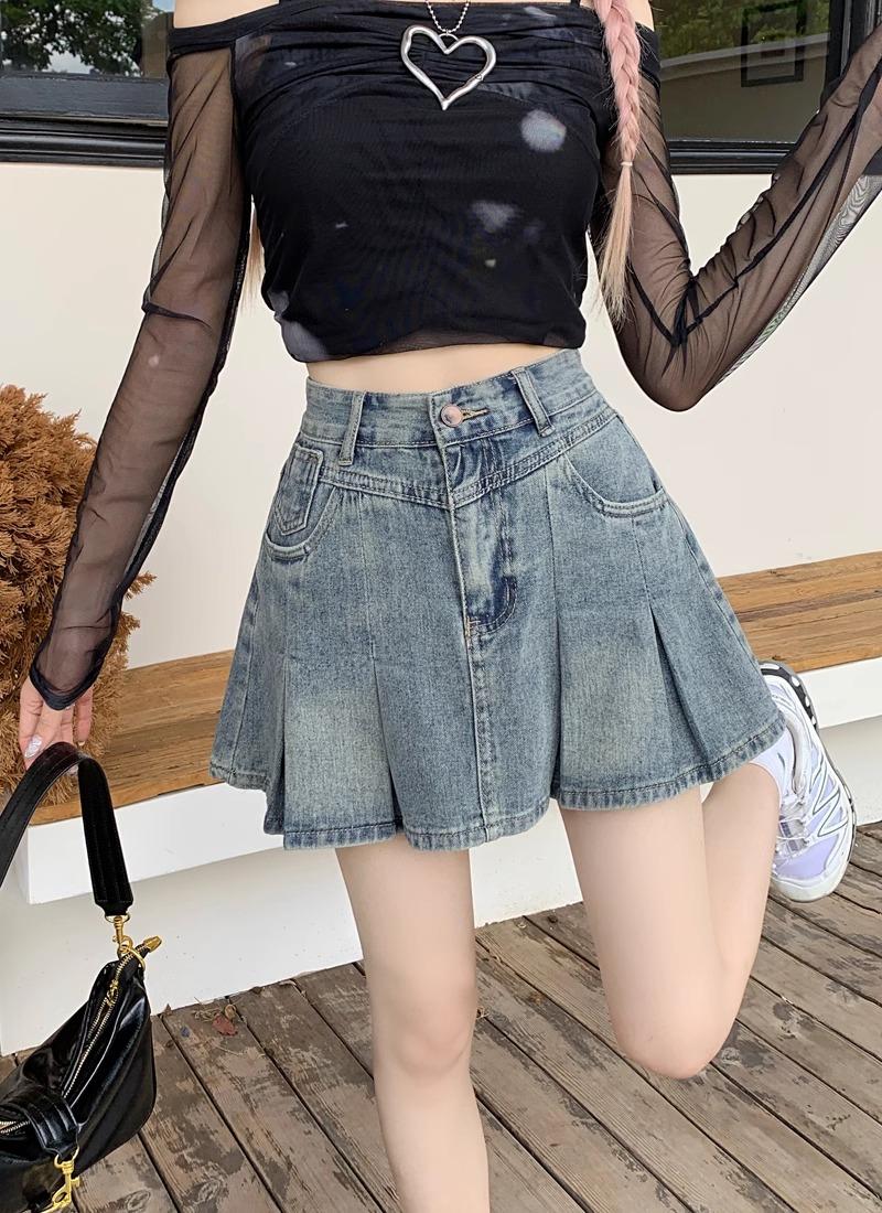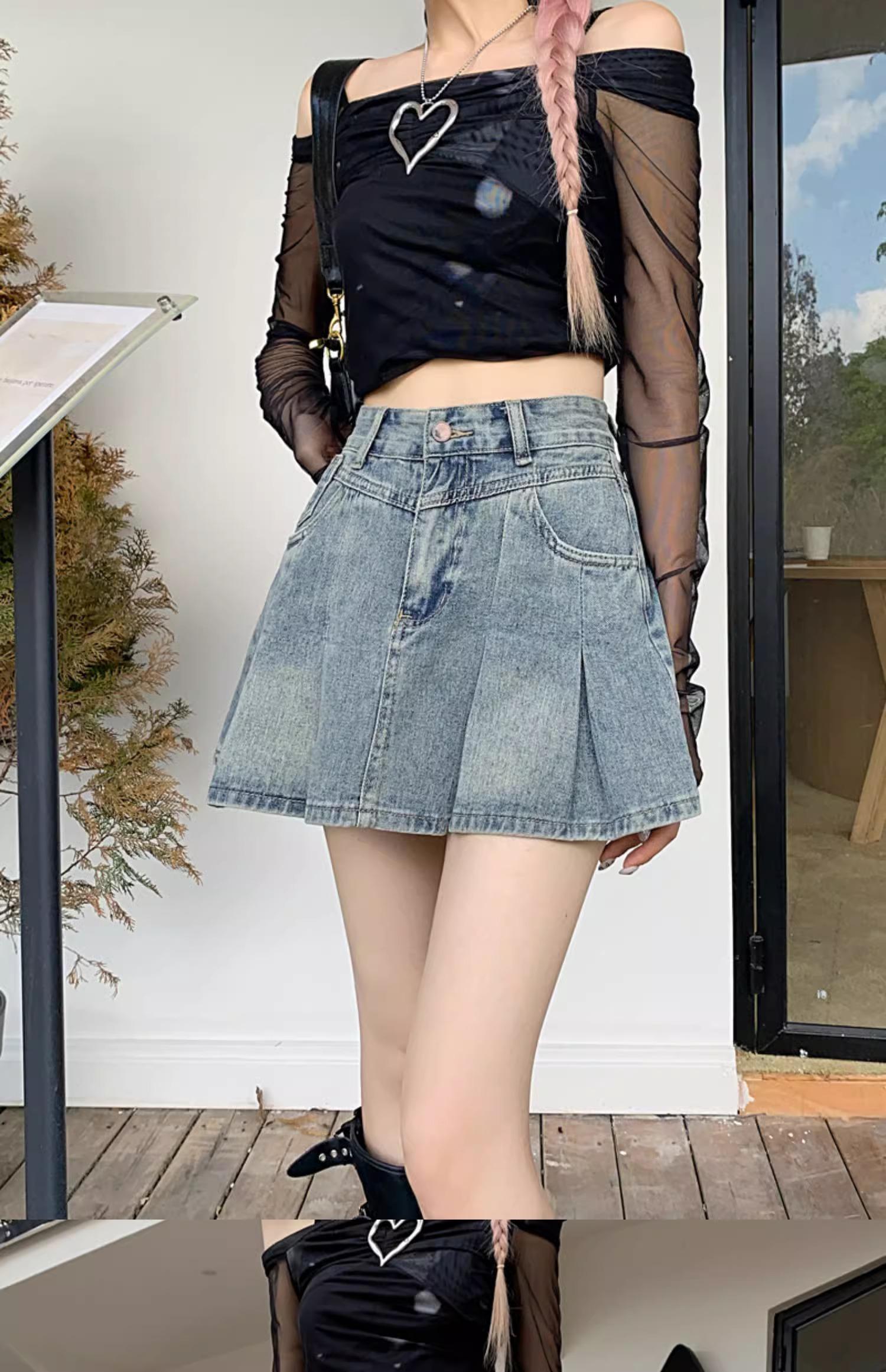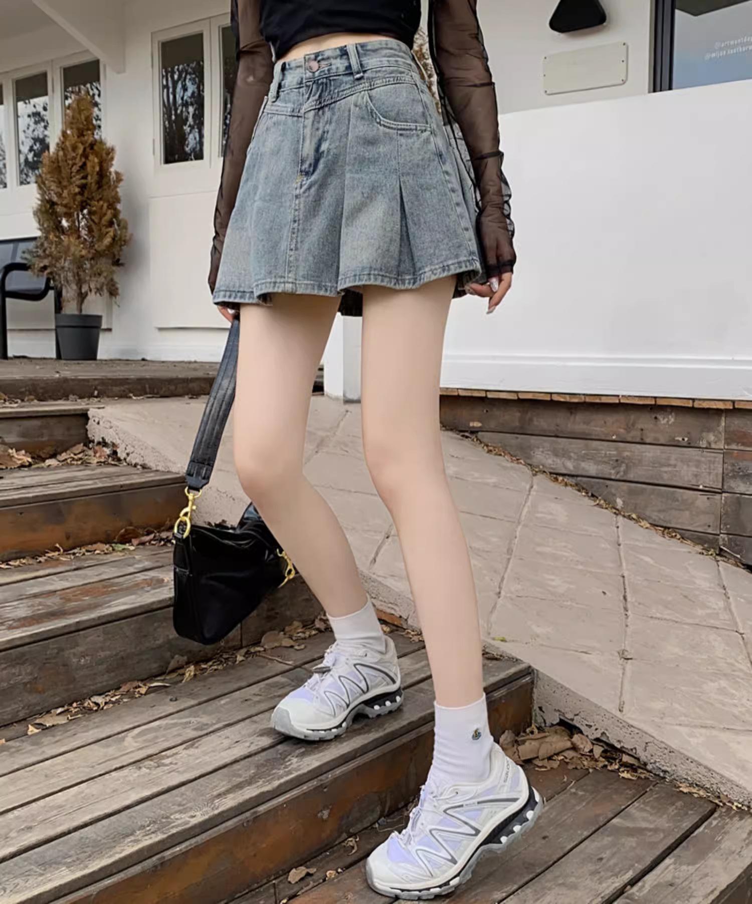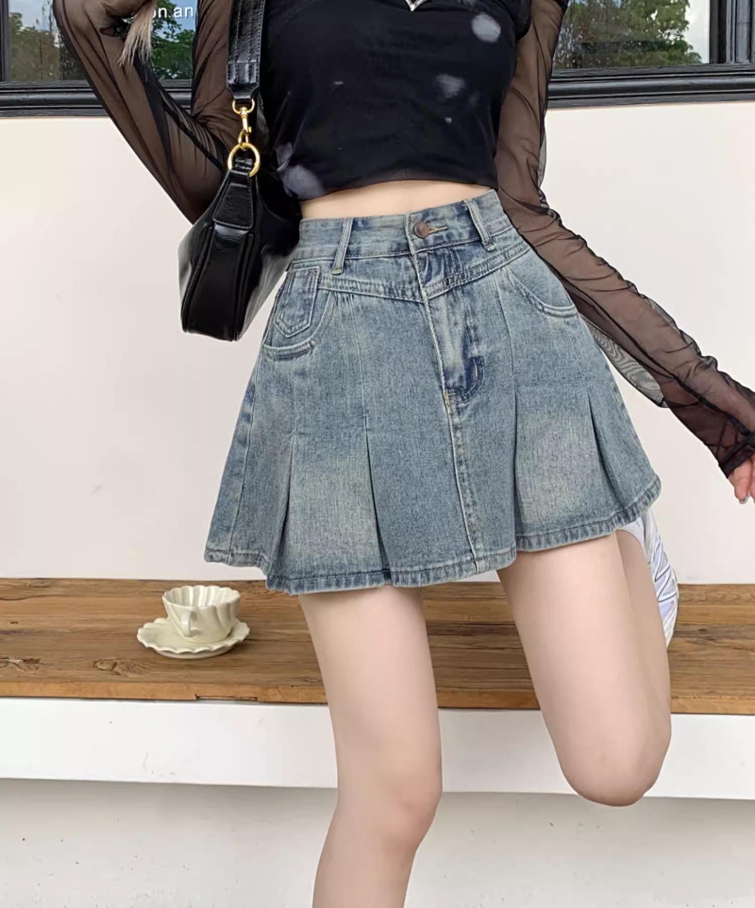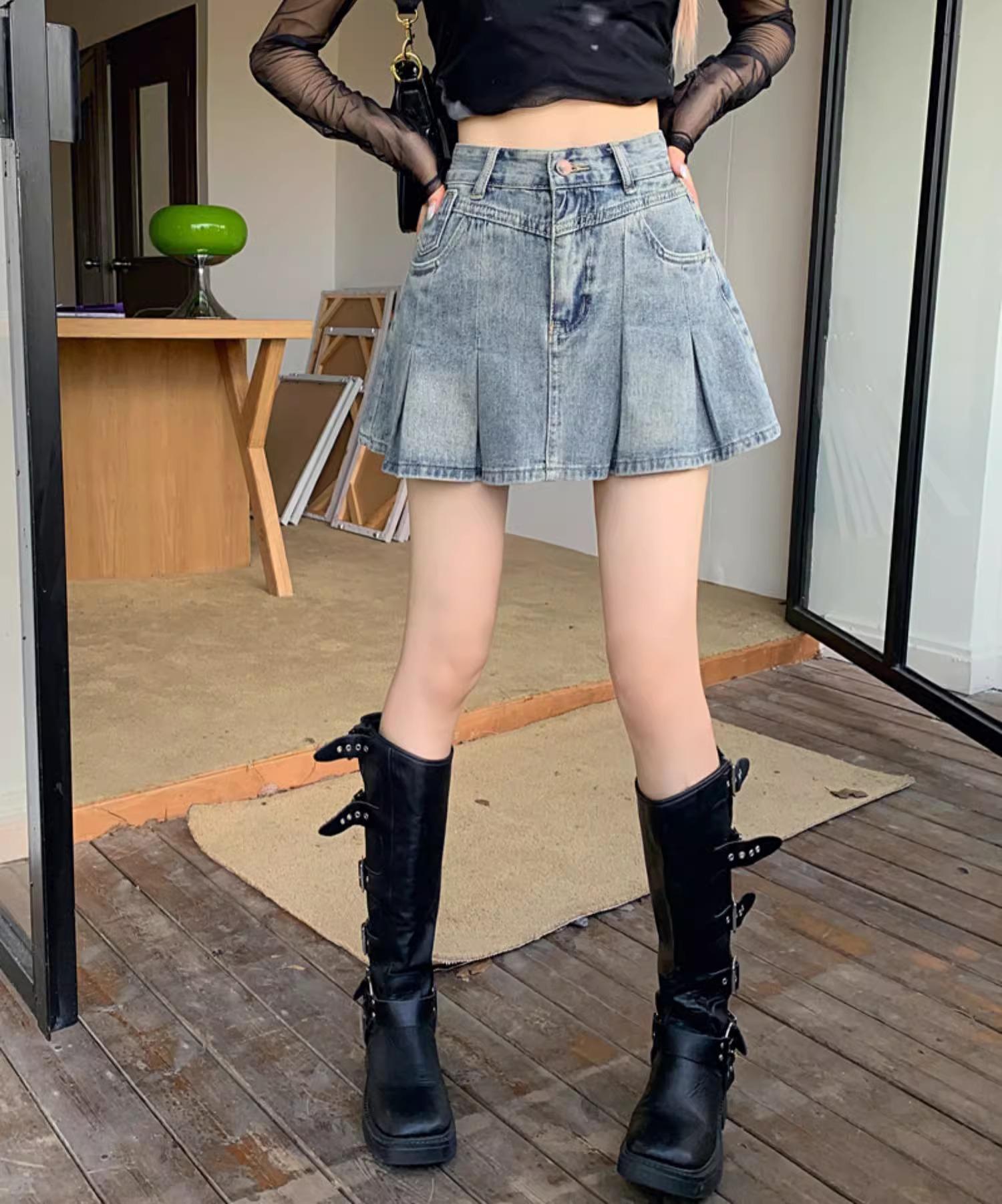 Falda Plisada Falda de Mezclilla de Cintura Alta Primavera Nueva Ropa de Mujer 2025 Falda Corta Falda A-Line Falda de Cadera Falda Verano