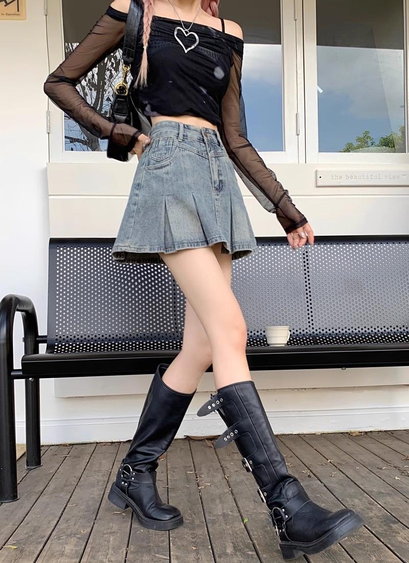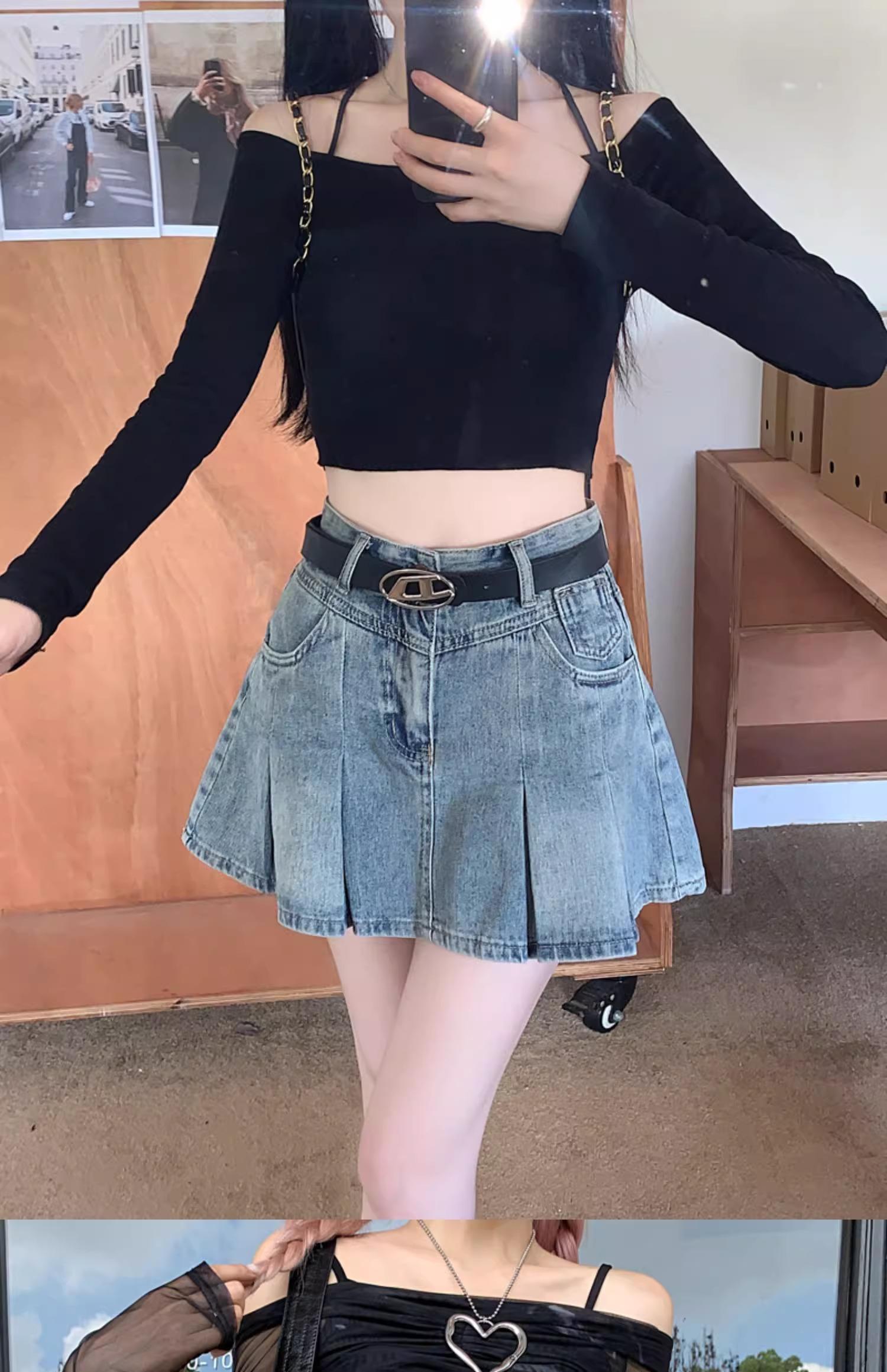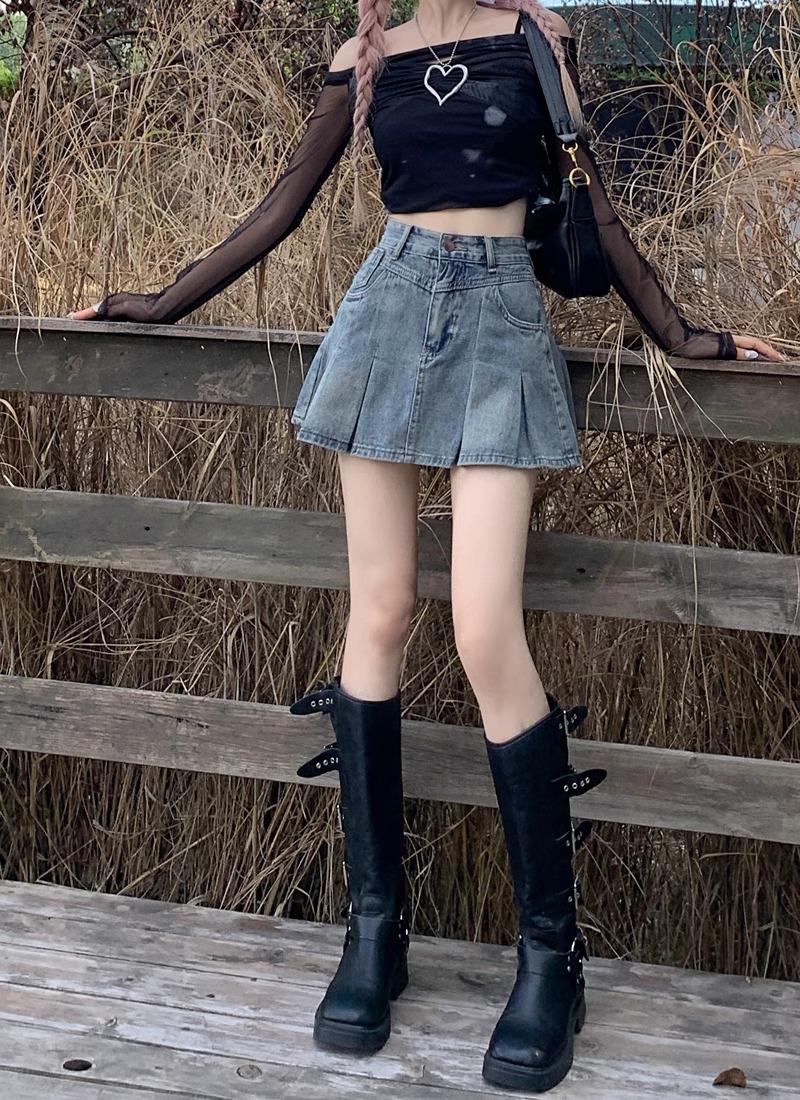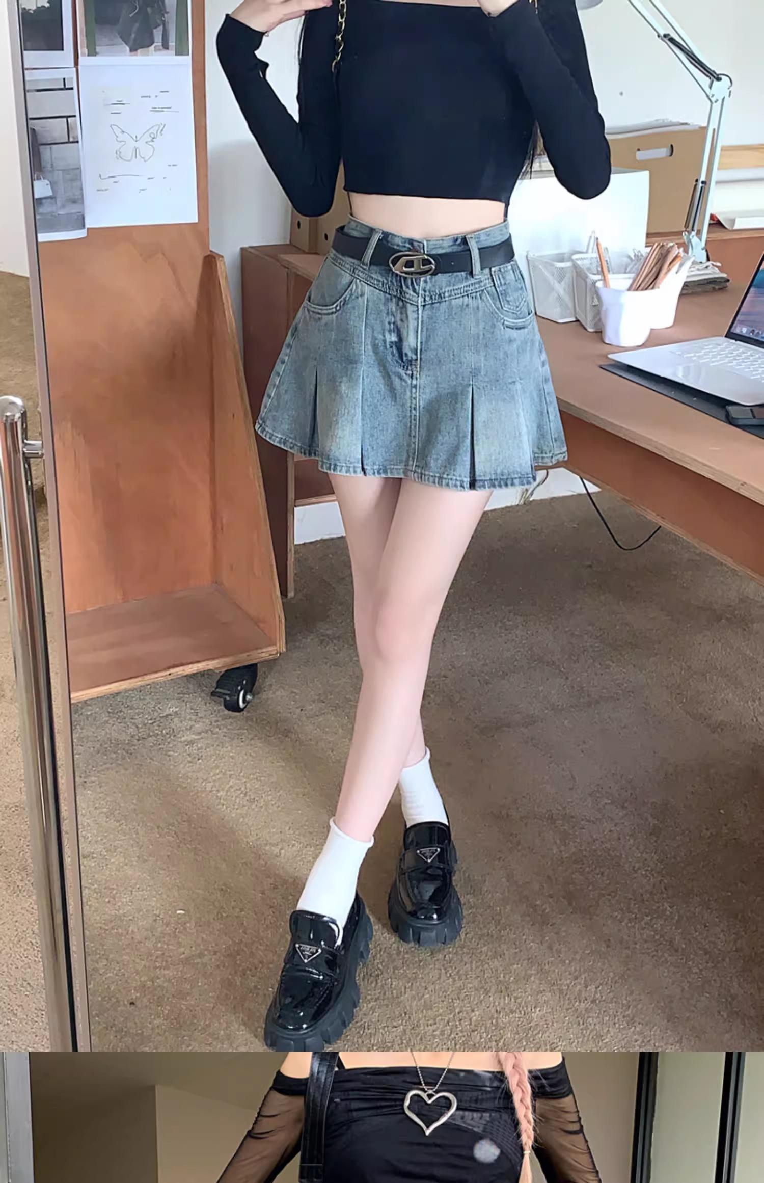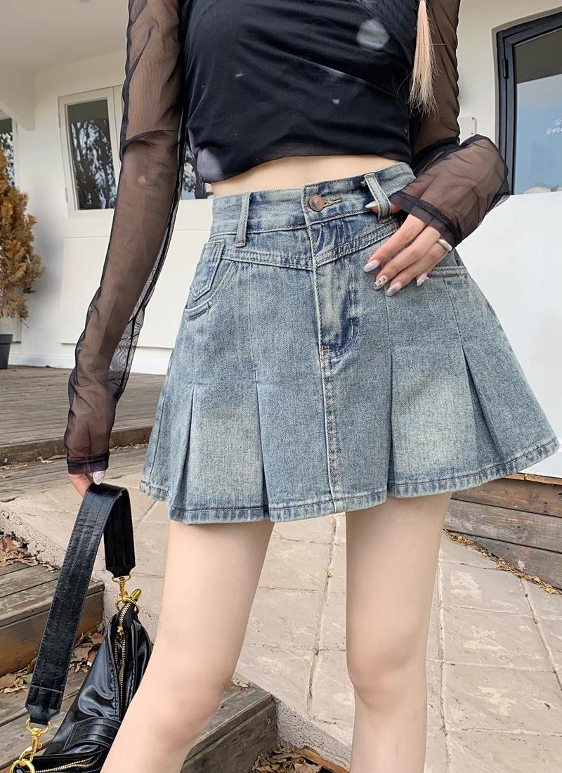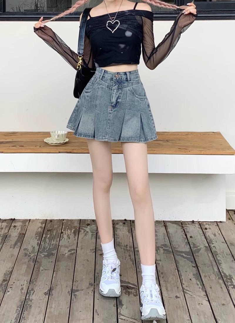 Falda Plisada Falda de Mezclilla de Cintura Alta Primavera Nueva Ropa de Mujer 2025 Falda Corta Falda A-Line Falda de Cadera Falda Verano
