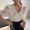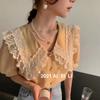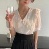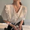 Camisa de Gasa de Manga Corta con Cuello de Muñeca de Encaje Estilo Coreano Holgada Elegante Look Adelgazante 2021 Verano Nueva Tendencia Top