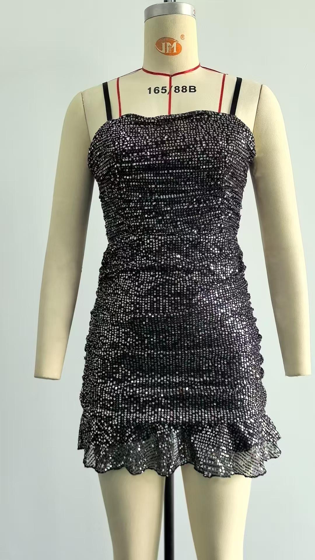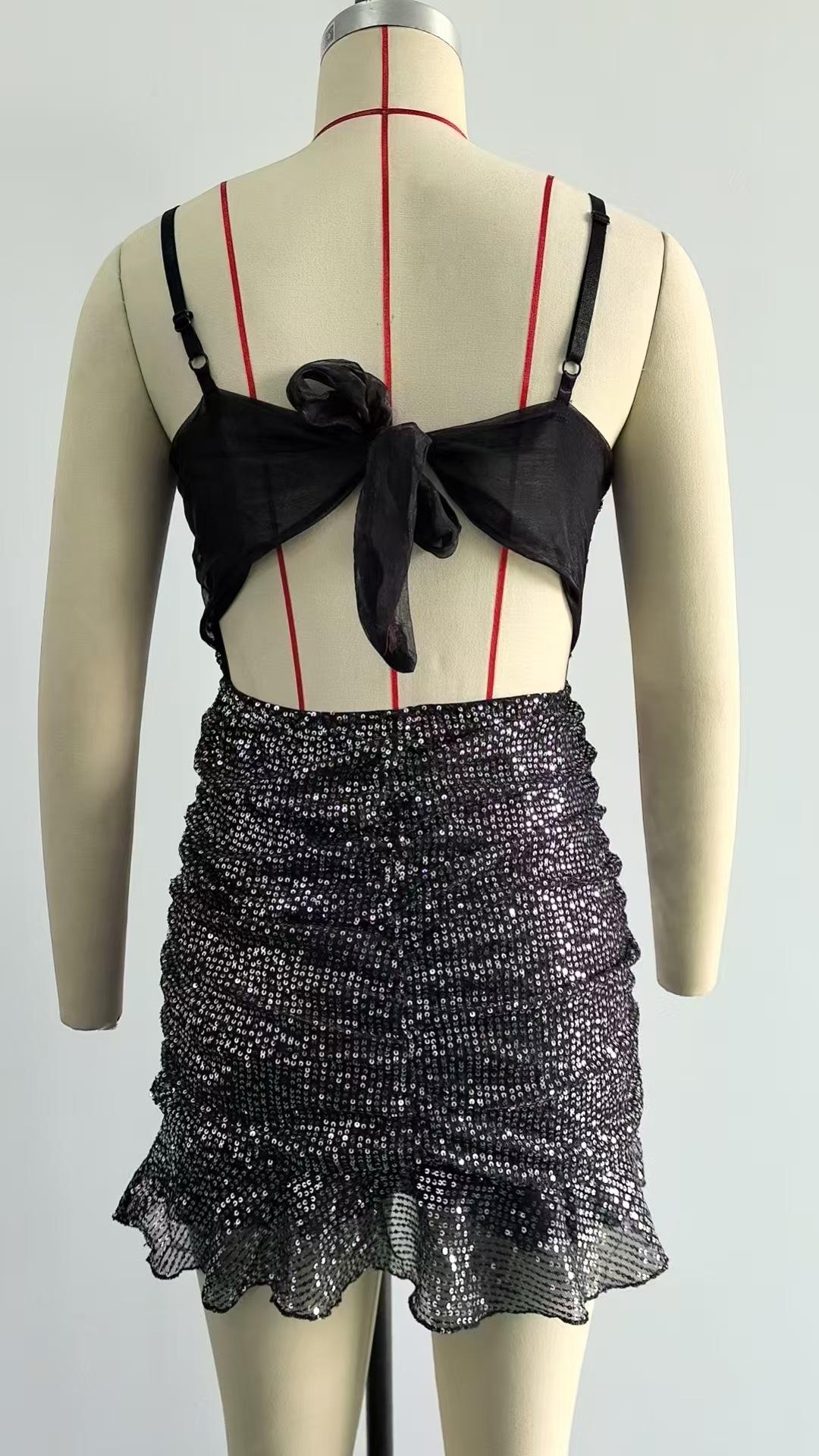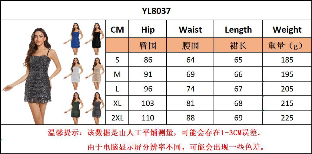 Amazon Exportación Transfronteriza Europea y Americana Primavera y Verano 2025 Nuevo Vestido Sexy Ajustado con Lentejuelas para Mujer Falda con Tirantes