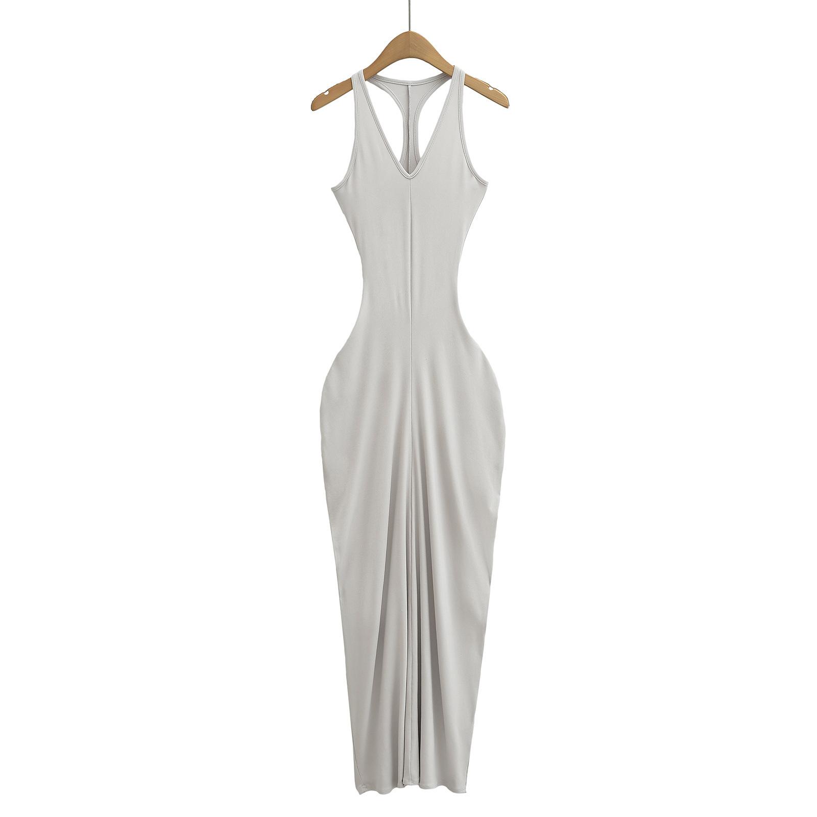 Compra 8508-Vestido Sexy Sexy sin Mangas Estilo Europeo y Americano para Mujer 2025 Nuevo Cuello V Cintura Adelgazante Look Cadera Falda Larga al por mayor en Joom.pro