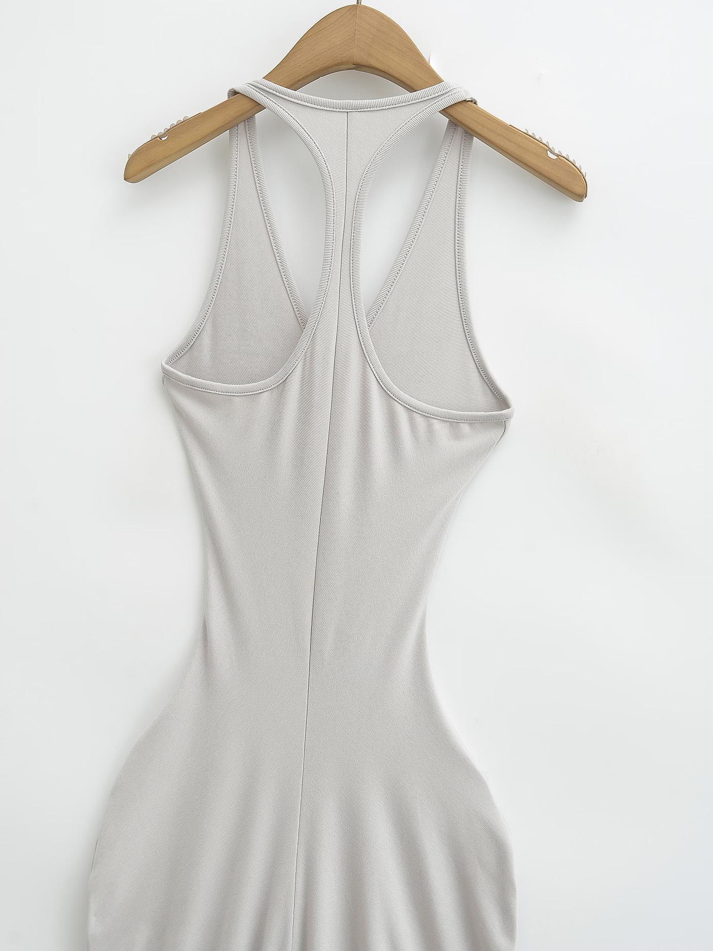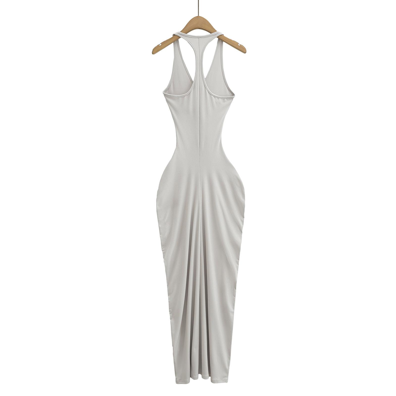 8508-Vestido Sexy Sexy sin Mangas Estilo Europeo y Americano para Mujer 2025 Nuevo Cuello V Cintura Adelgazante Look Cadera Falda Larga