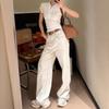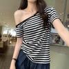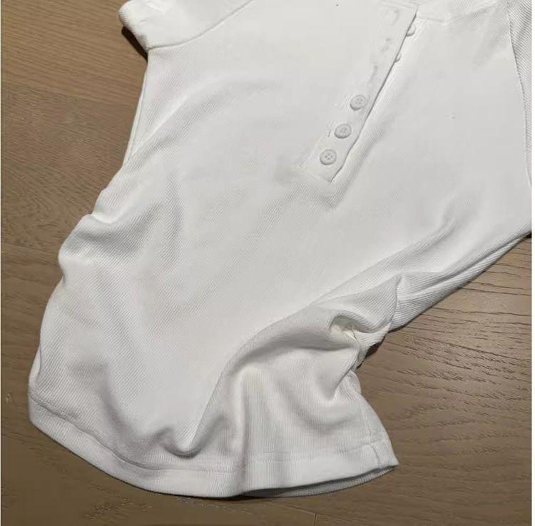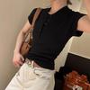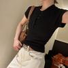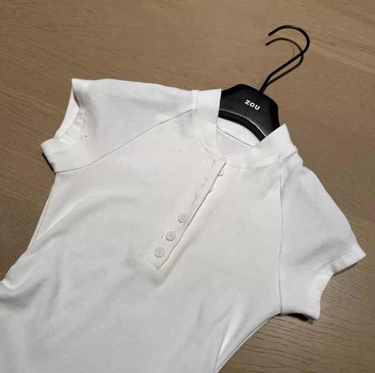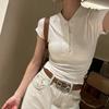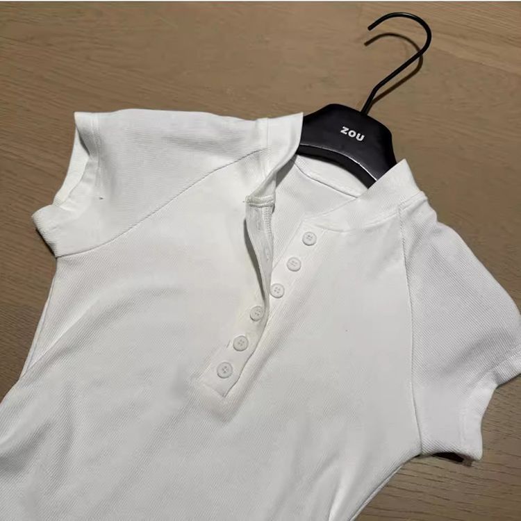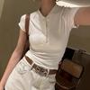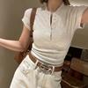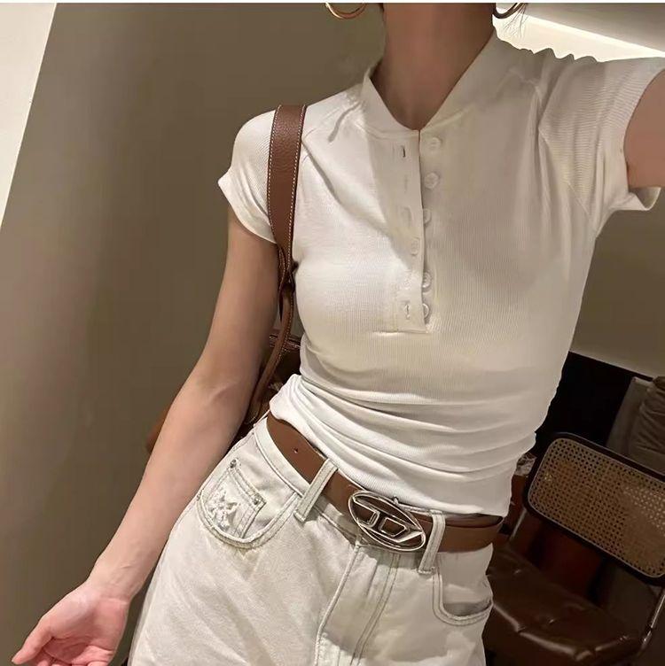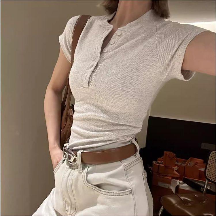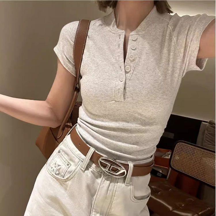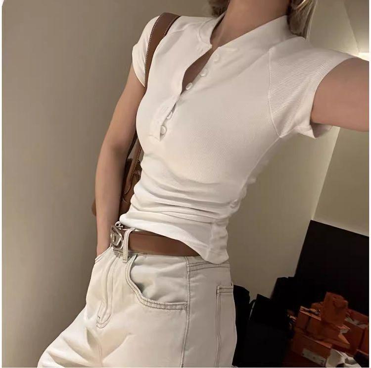 Camiseta de Manga Corta con Botones de Hombro Regular para Mujer, Diseño Niche de Verano de Ajuste Slim
