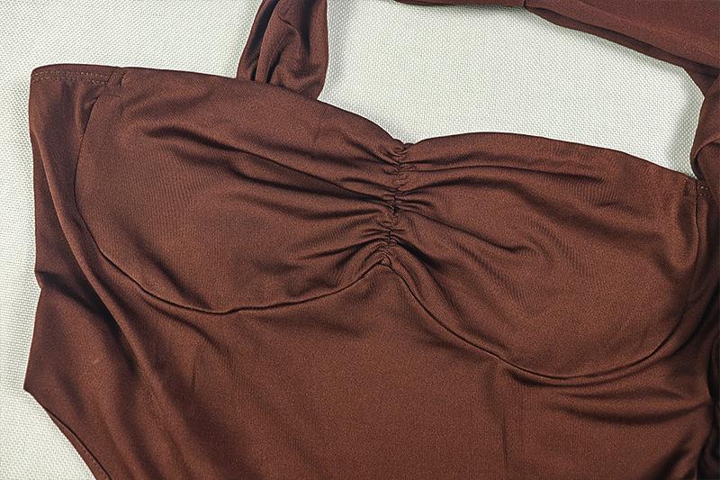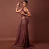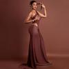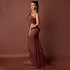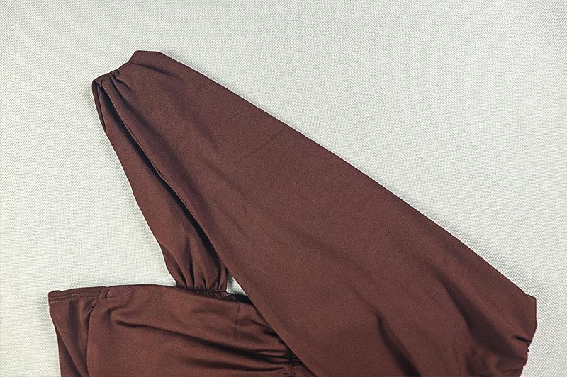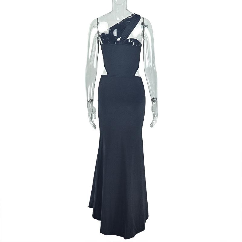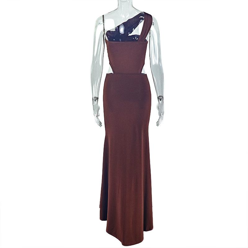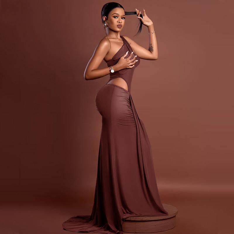 Estilo Europeo y Americano Transfronterizo Elegante Vestido Bodycon Ajustado de Color Sólido Plisado para Mujer de Un Hombro Sexy Sin Mangas Vestido Largo a la Moda