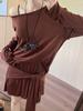 Grande Venda Não Retornável Treze Linhas Outono Seda Lã Casual Borda Crua Alça Camiseta Saia Conjunto Mulher Tzb973