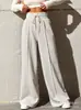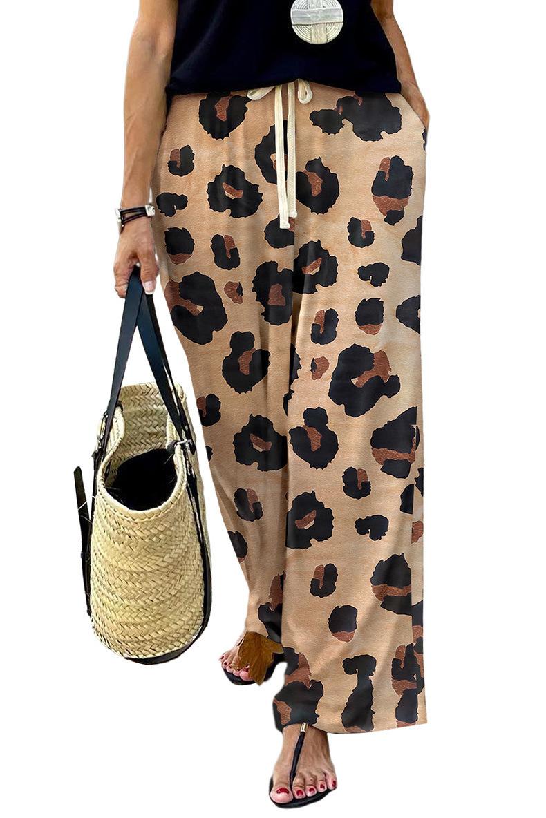 Amazon oferta caliente Otoño nuevo estampado de leopardo pantalones de pierna ancha mujer personalidad europea y americana cordón cintura alta pantalones casuales mujer