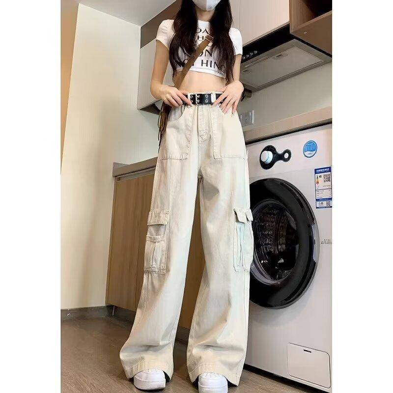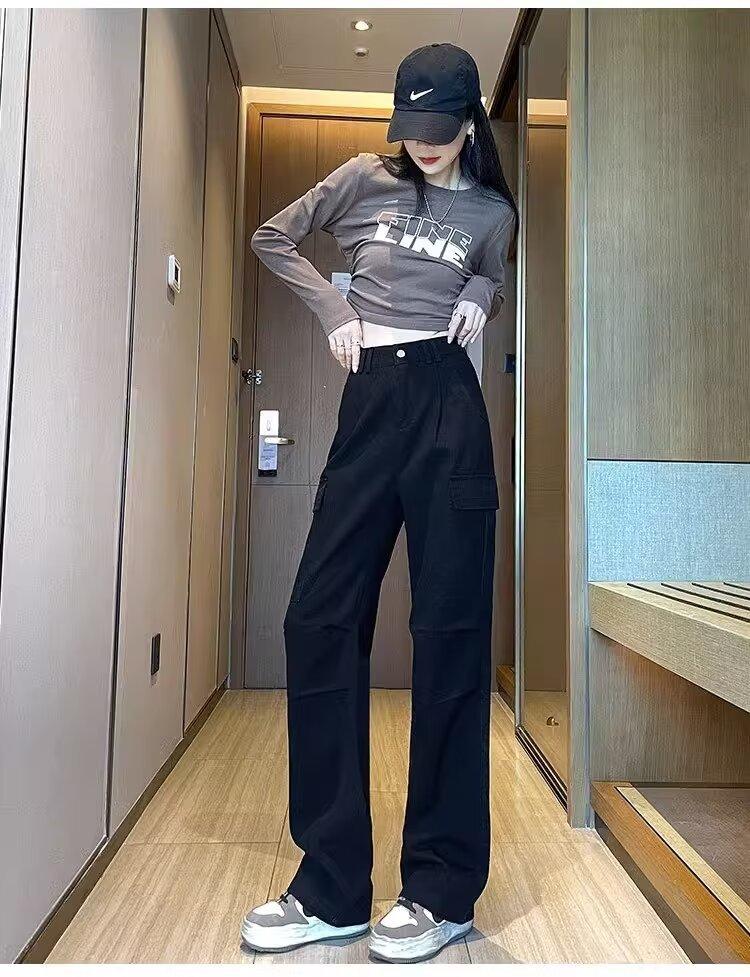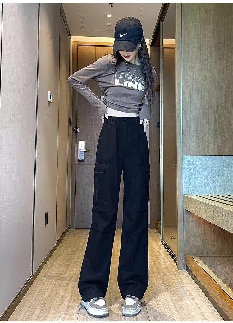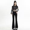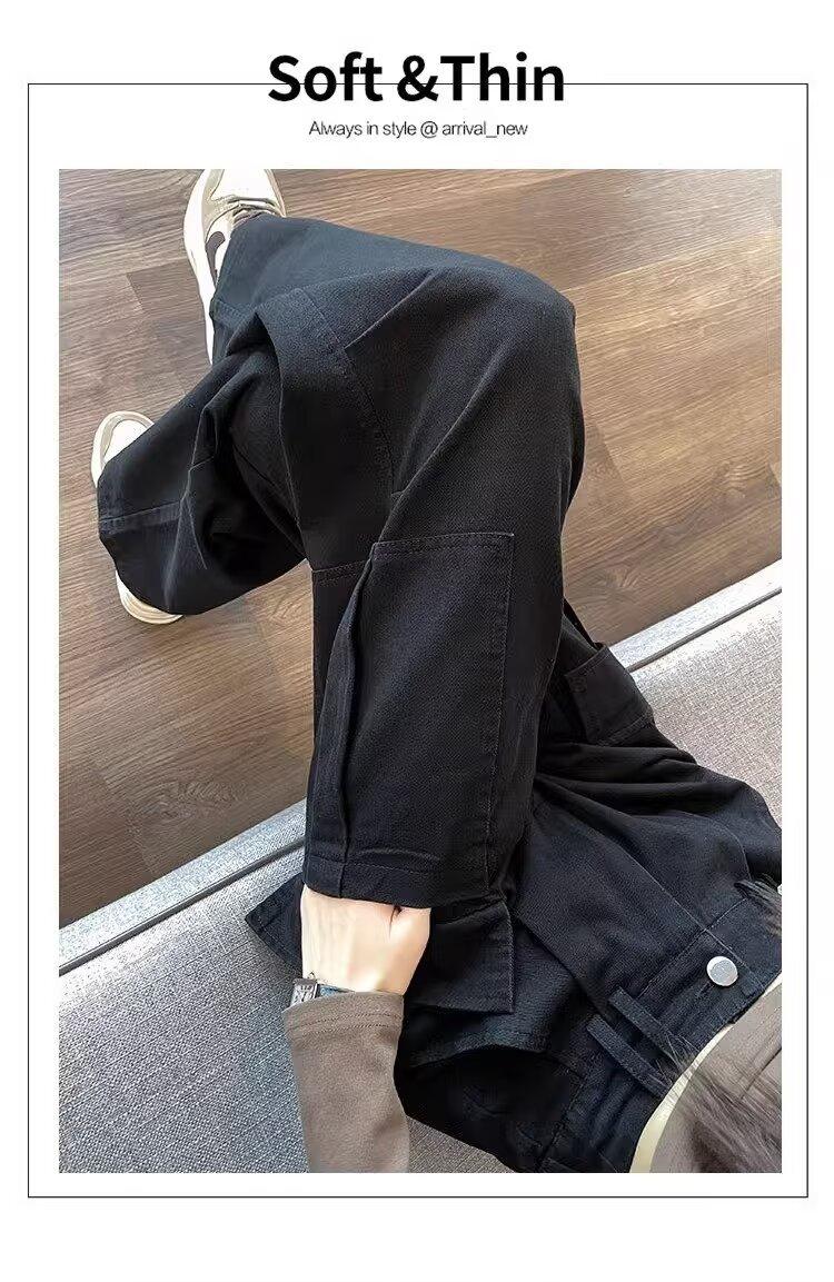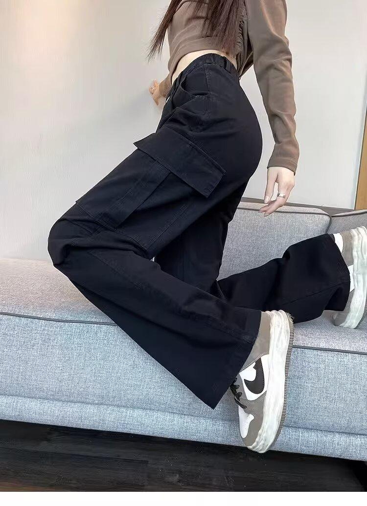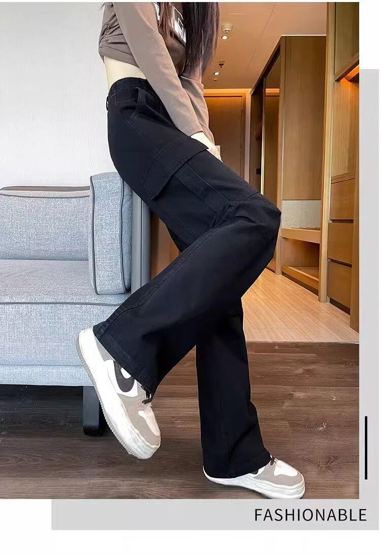 2024 primavera y otoño nuevo negro cintura alta mezclilla pantalones acampanados para mujer funcional viento slim gris chicas sexys overol