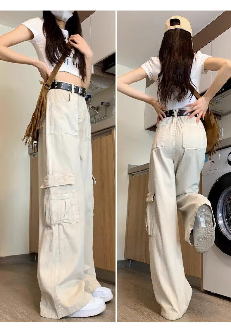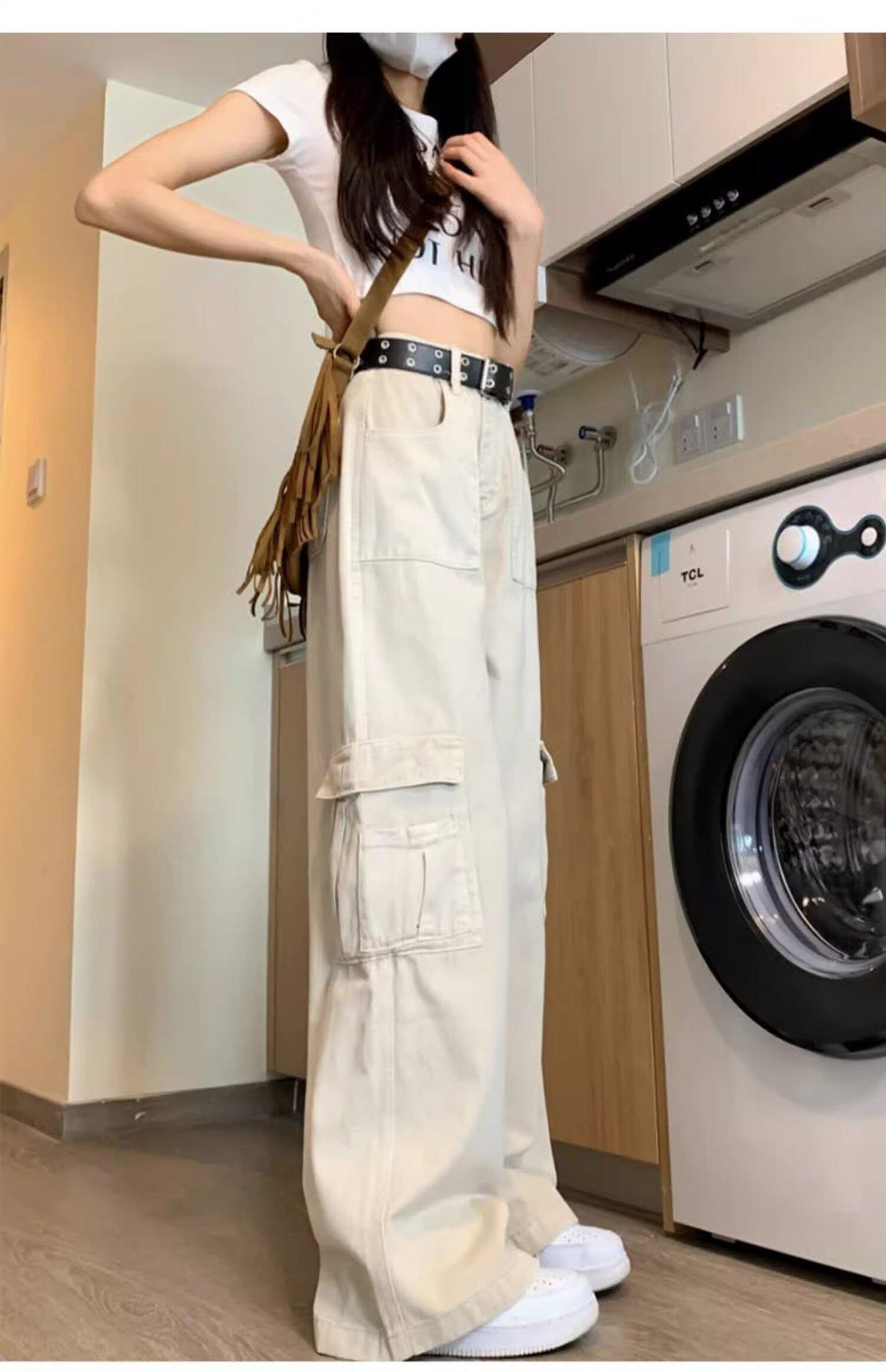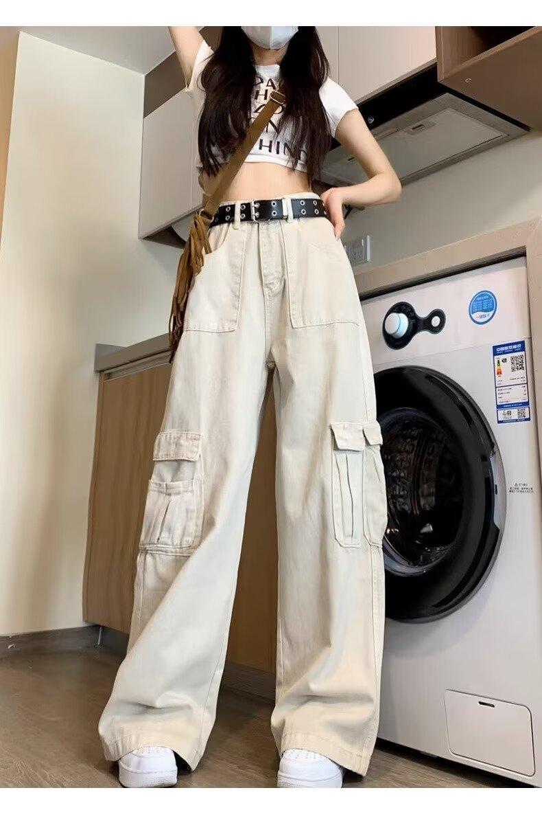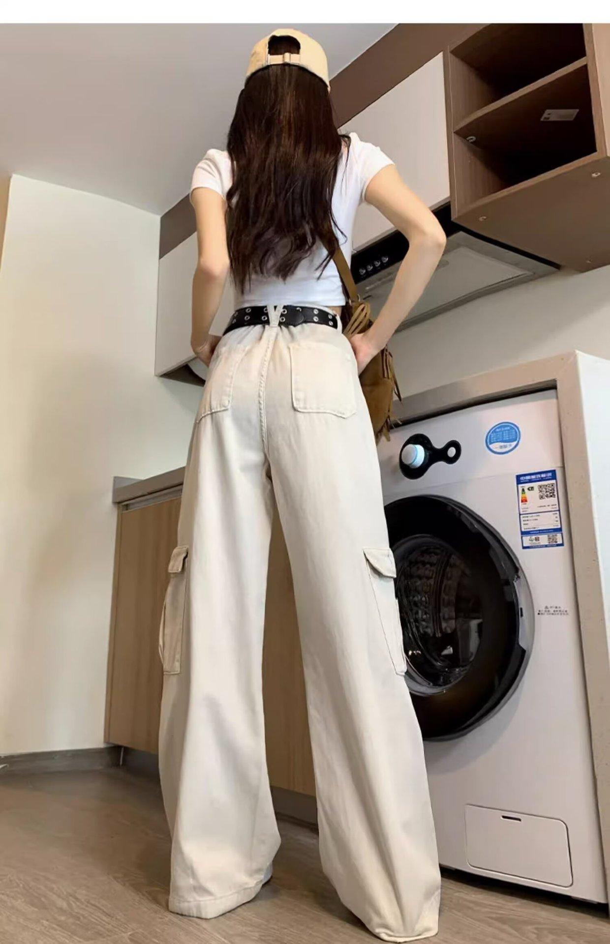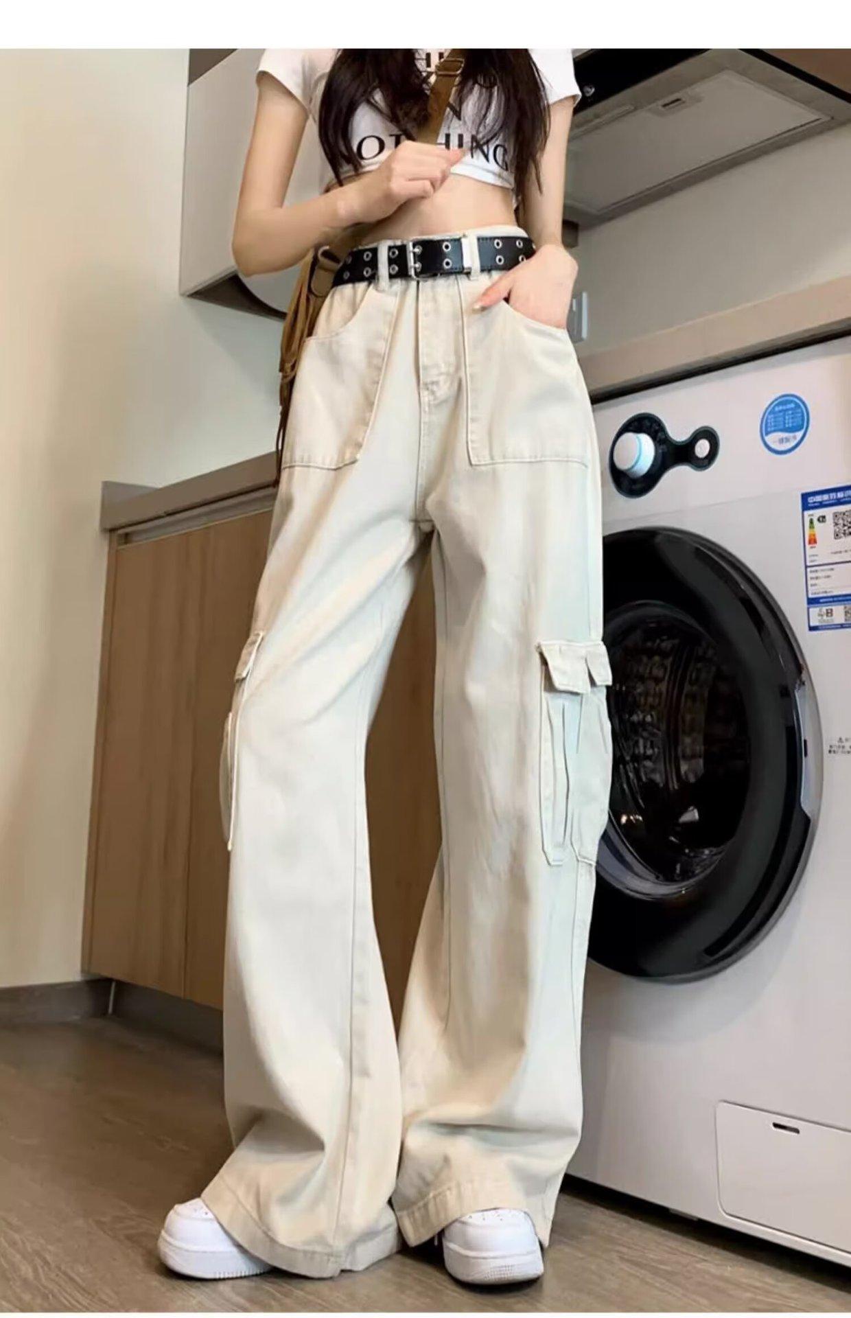 2024 primavera y otoño nuevo negro cintura alta mezclilla pantalones acampanados para mujer funcional viento slim gris chicas sexys overol