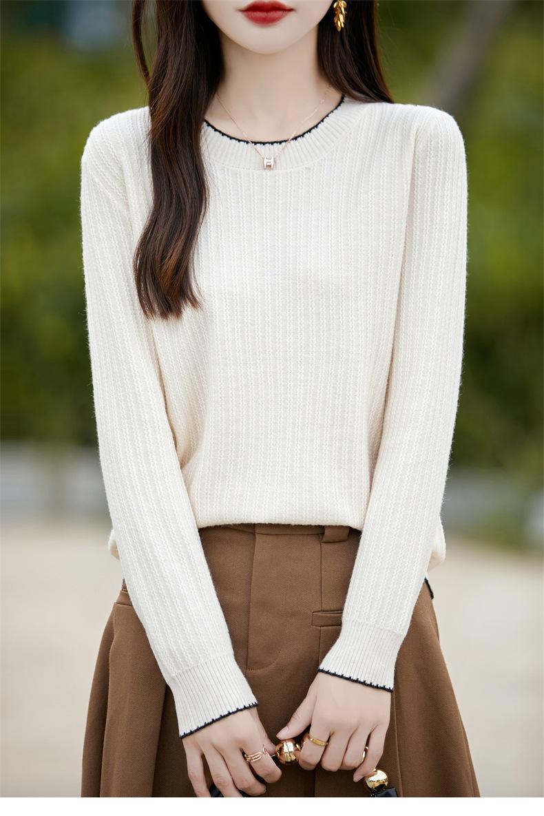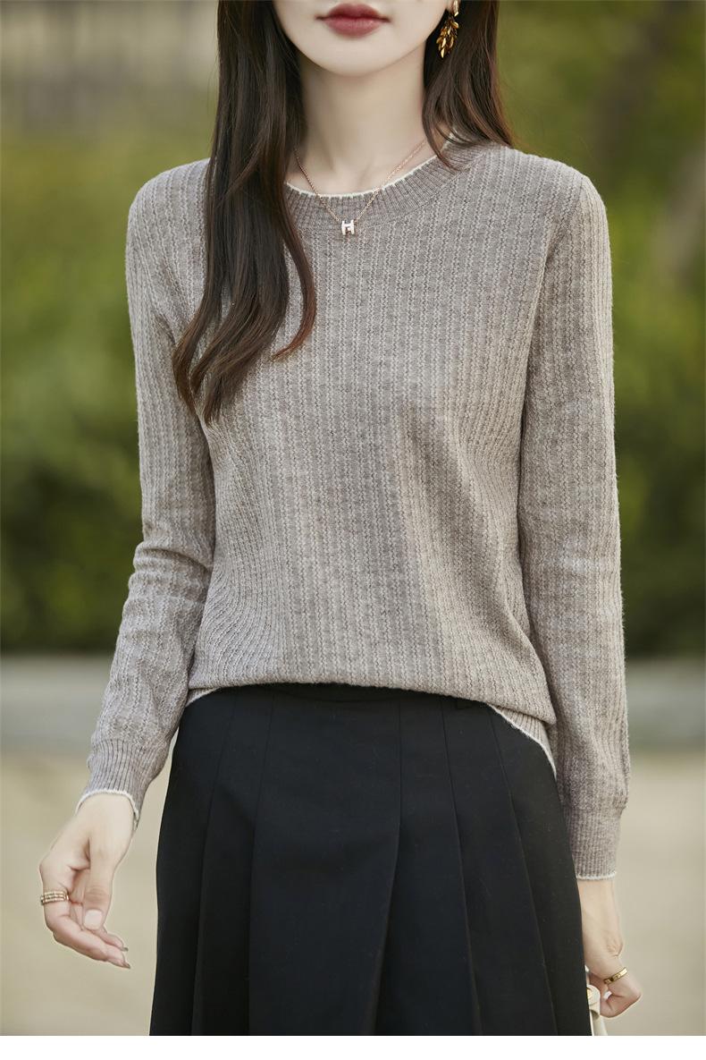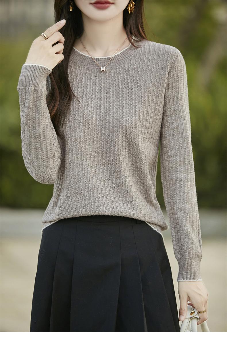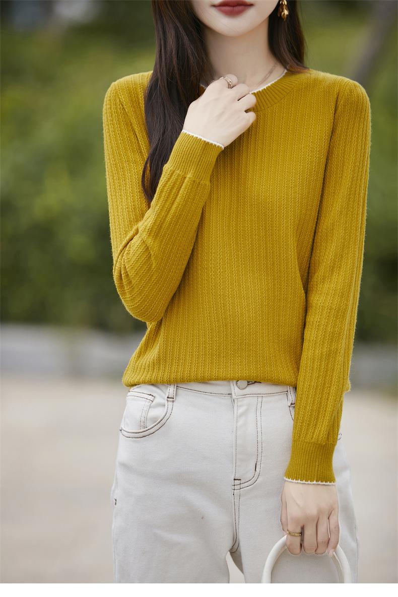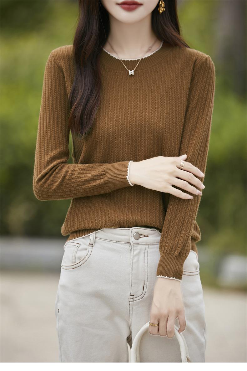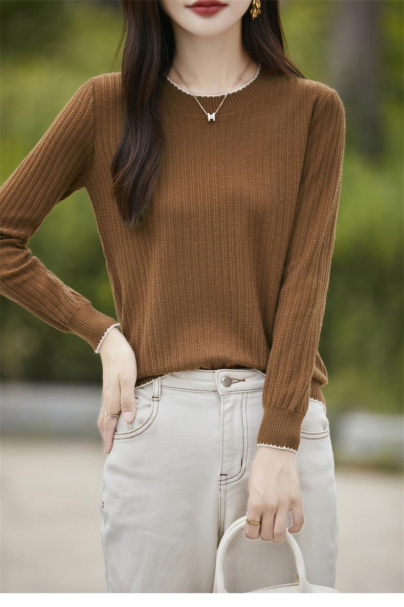 Primavera, Otoño e Invierno Nuevo Tejido de Punto de Manga Larga de Terciopelo Andy para Mujer Top Jersey de Cuello Redondo Suéter Básico al Por Mayor