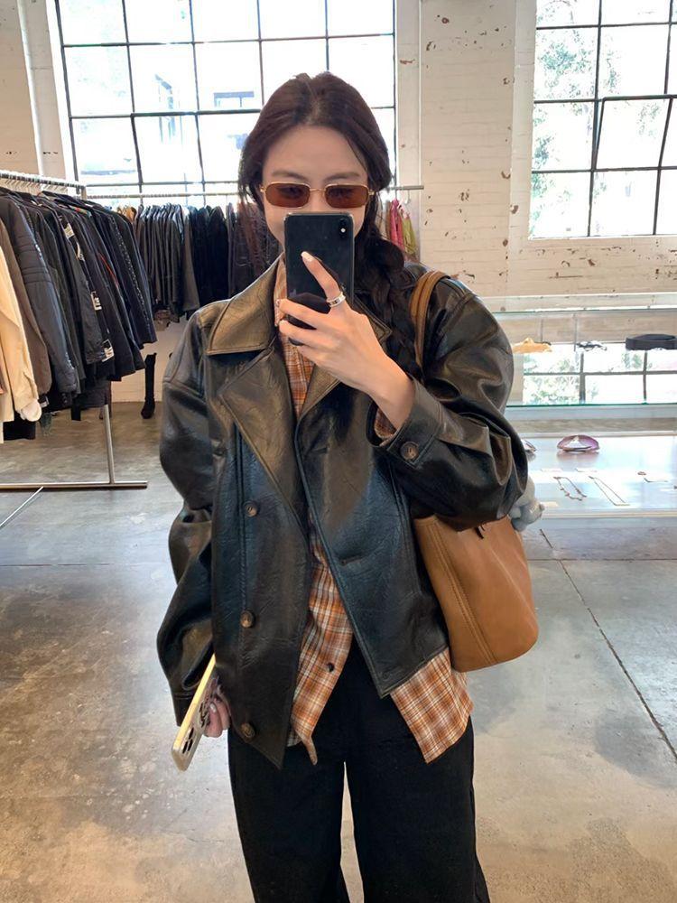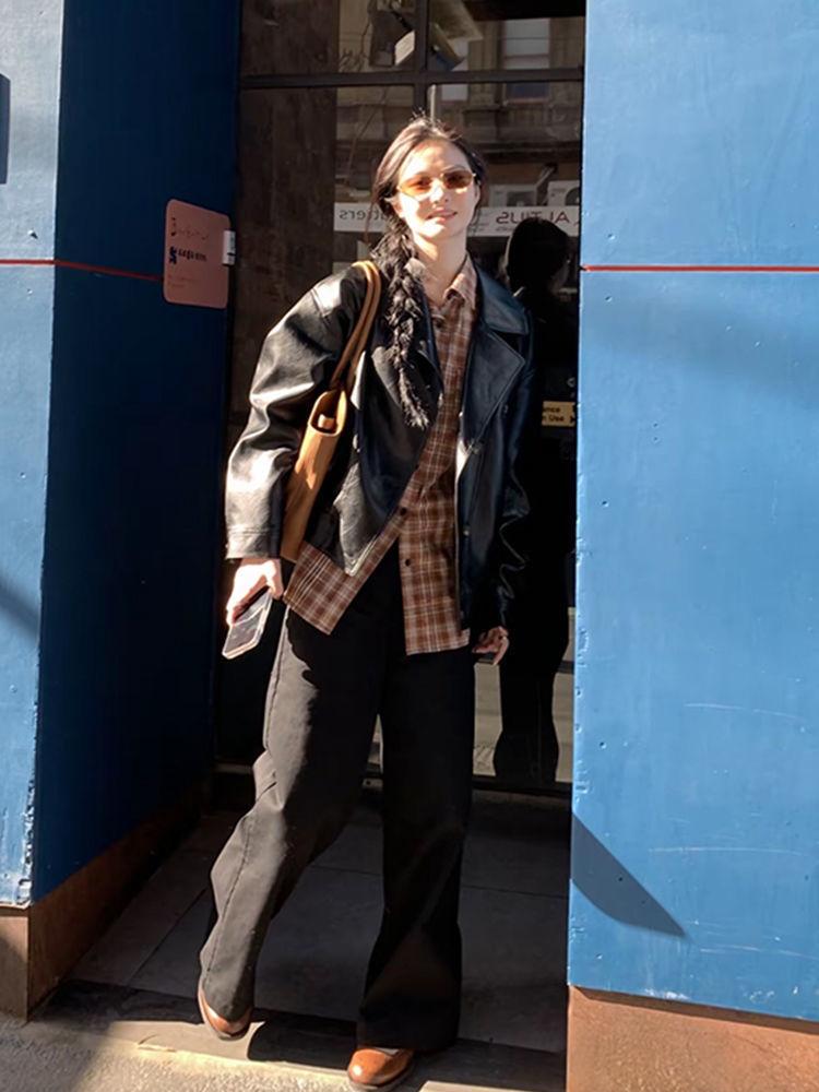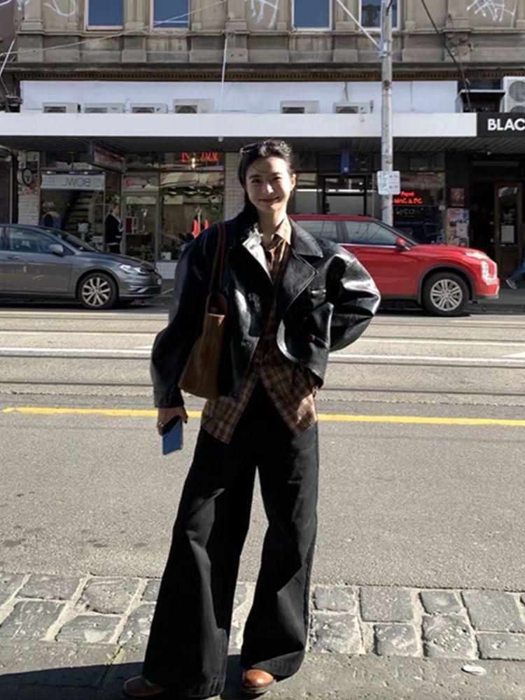 Chaqueta Pu Negra Americana Retro de Alta Gama para Mujer 2025 Otoño Nueva Moda Elegante Chaqueta Pequeña Versátil