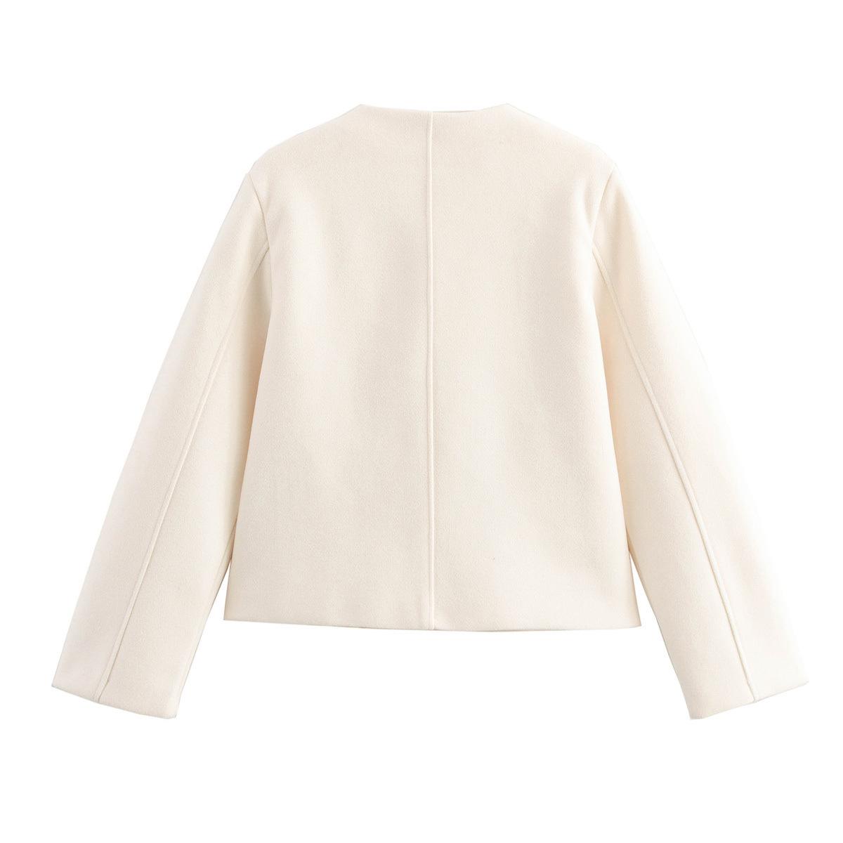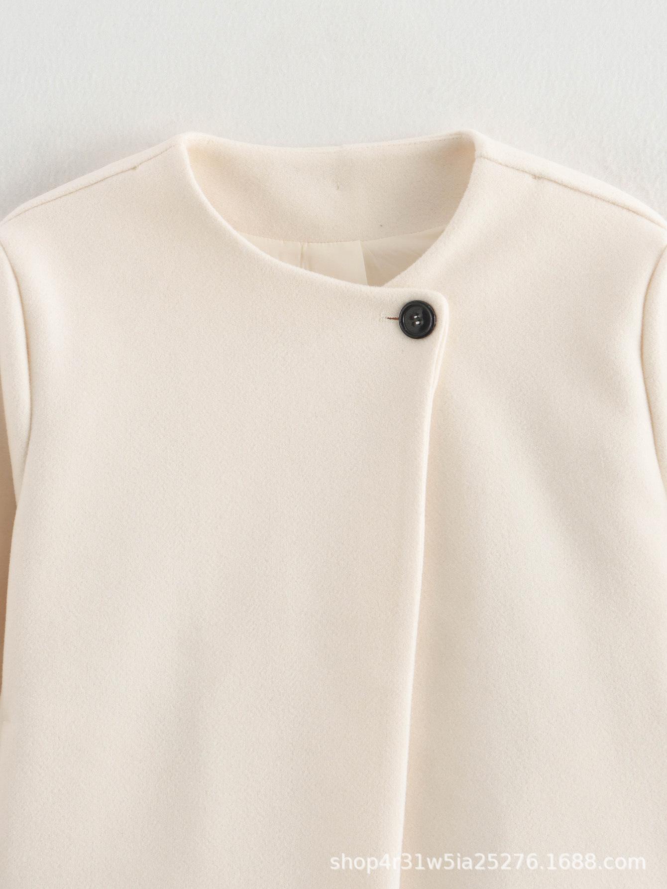 Estilo europeo y americano transfronterizo al por mayor 2024 otoño nuevo temperamento de moda color sólido cuello redondo abrigo de lana ajustado mujer