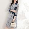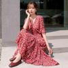 25. Elegante vestido floral retro de primavera para mujer, vestido camisero de gasa con tirantes finos y largo medio.