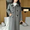 Otoño e Invierno Estilo Holgado Perezoso Hebilla Chaqueta Larga de Punto Cárdigan Moda Femenina de Alta Gama Suéter con Capucha Nuevo Hasta la Rodilla