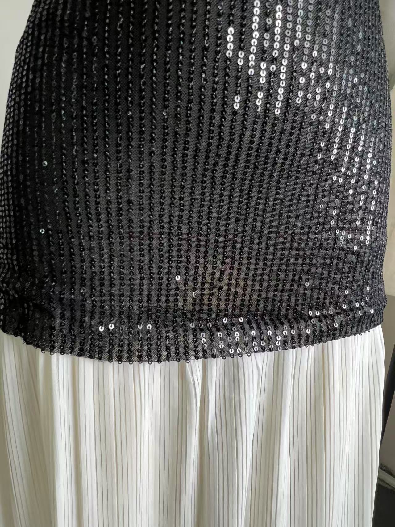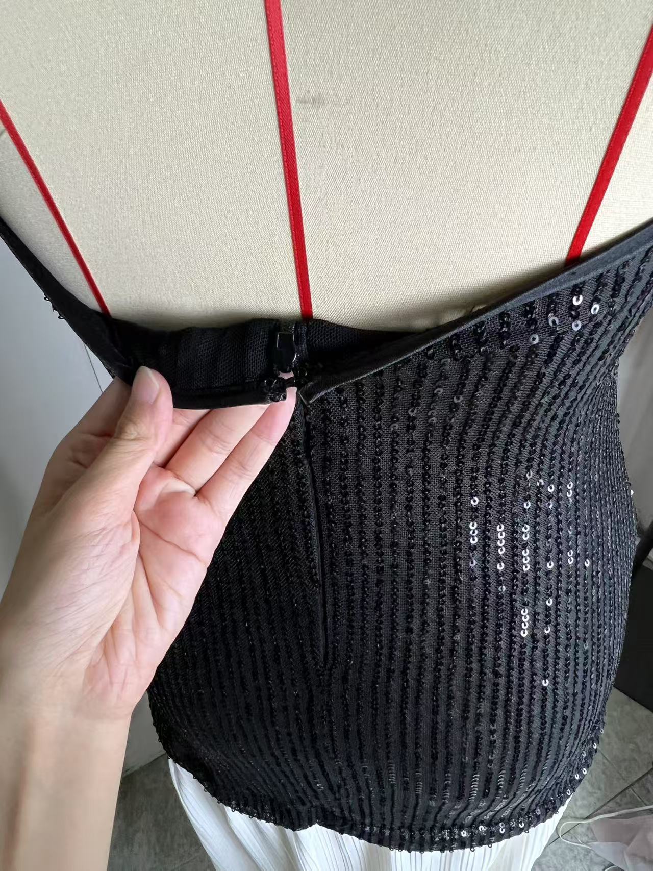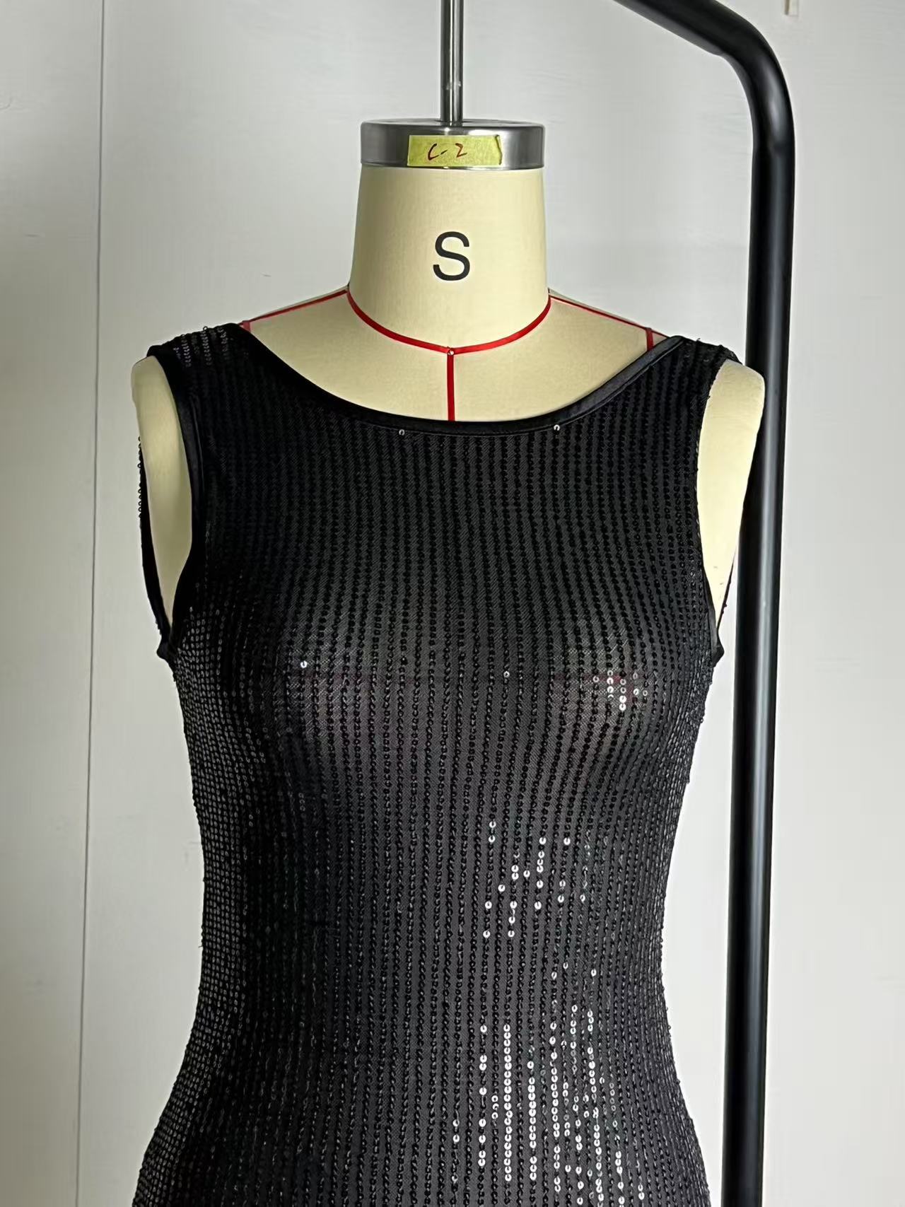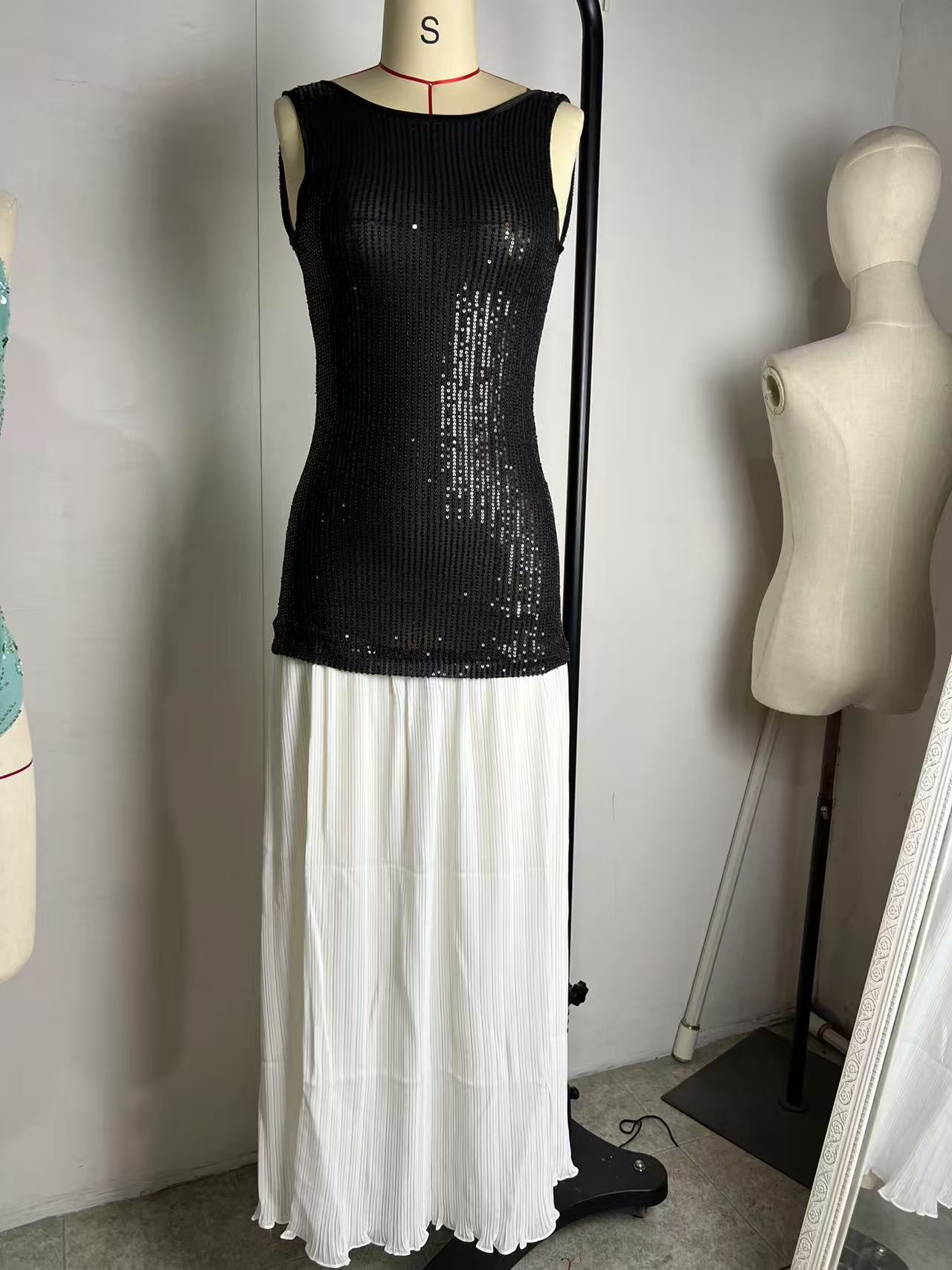 2025 Nuevo Estilo de Verano Sexy Personalizado Sin Espalda Sin Mangas Lentejuelas Costuras Largo Estilo Urbano Vestido Plisado para Mujeres