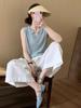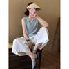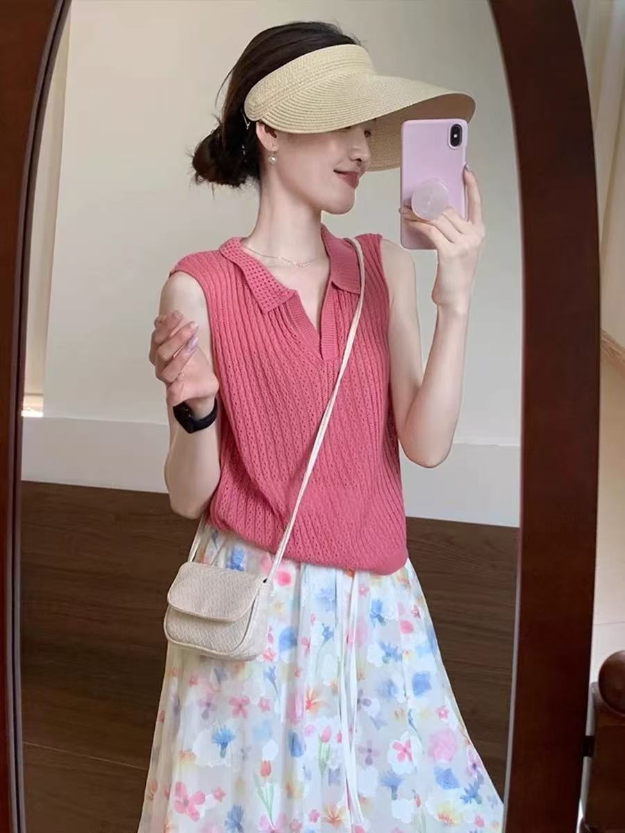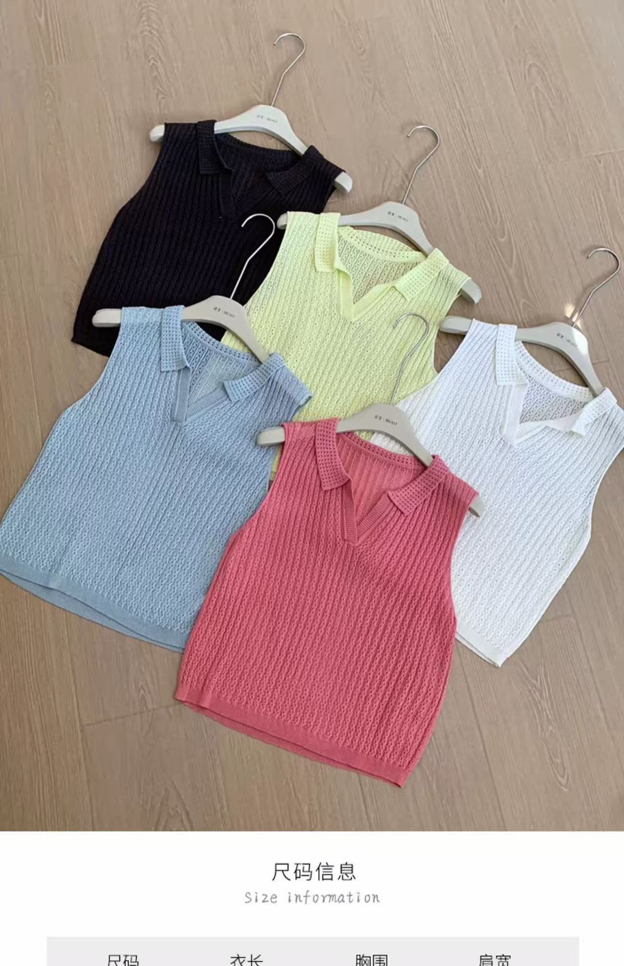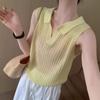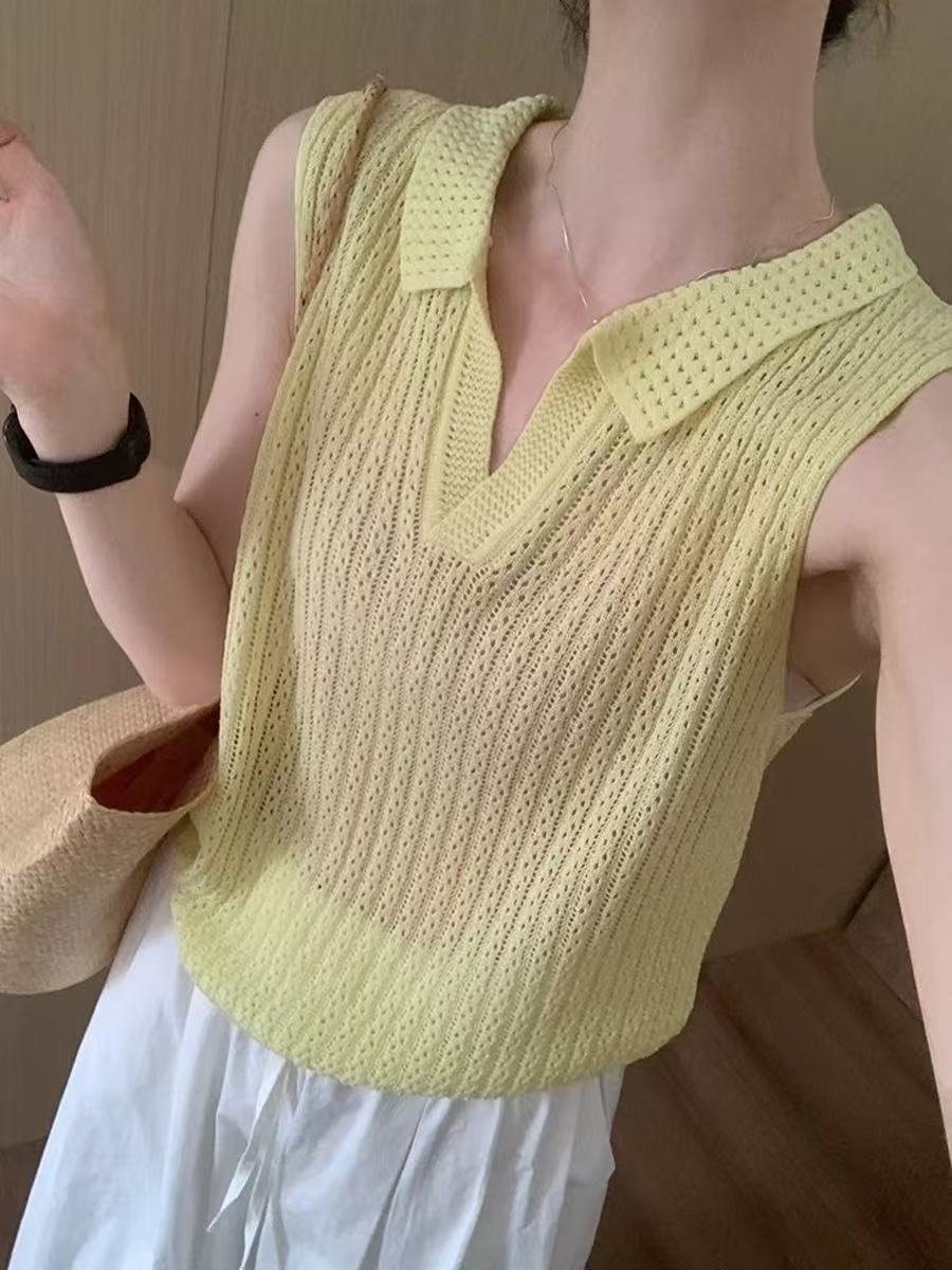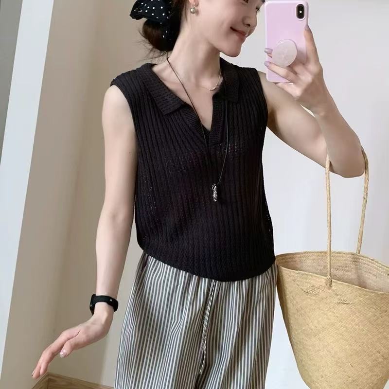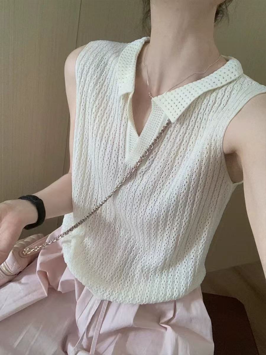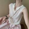 Camisola de Punto de Seda Helada con Solapa Diseño Nicho Diseño de Verano Único Top sin Mangas Super Bonito