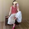 Top sin mangas de punto de seda helada rosa palo con cuello para mujer, diseño nicho con sentido del diseño, verano único, super favorecedor