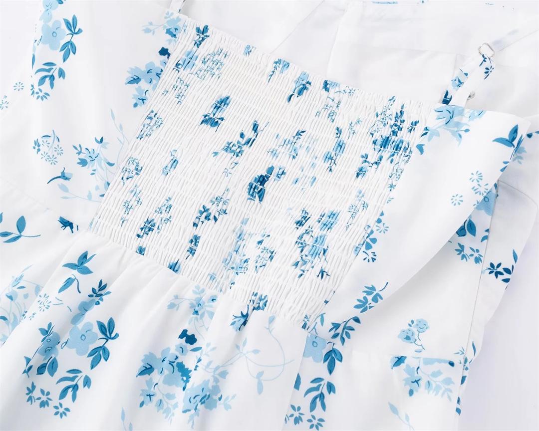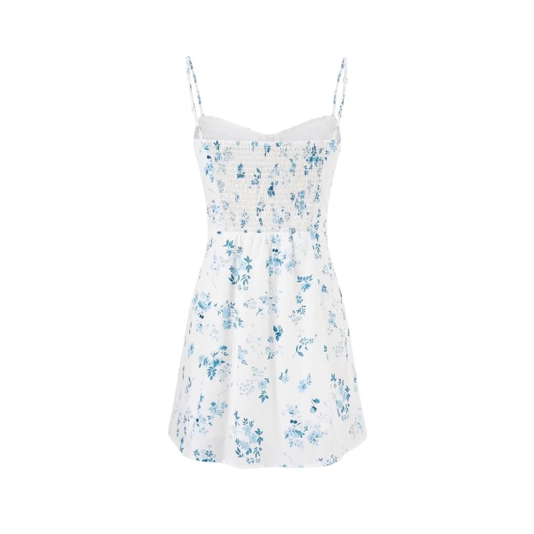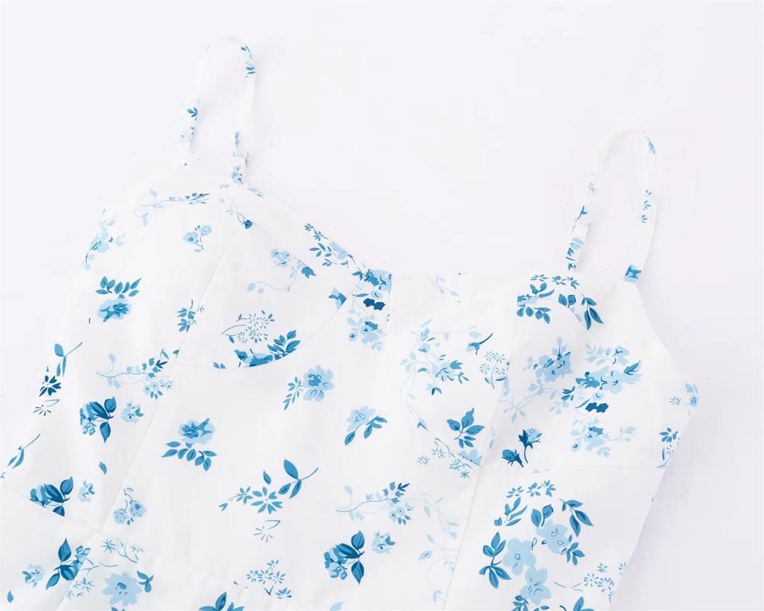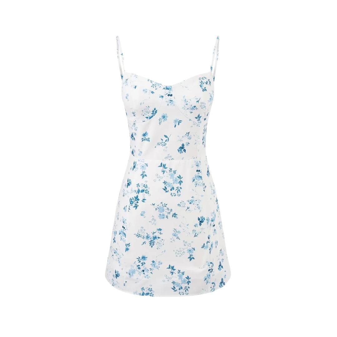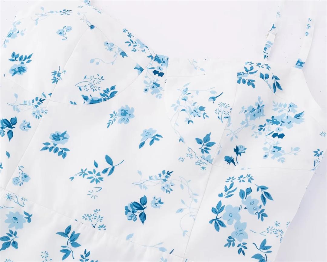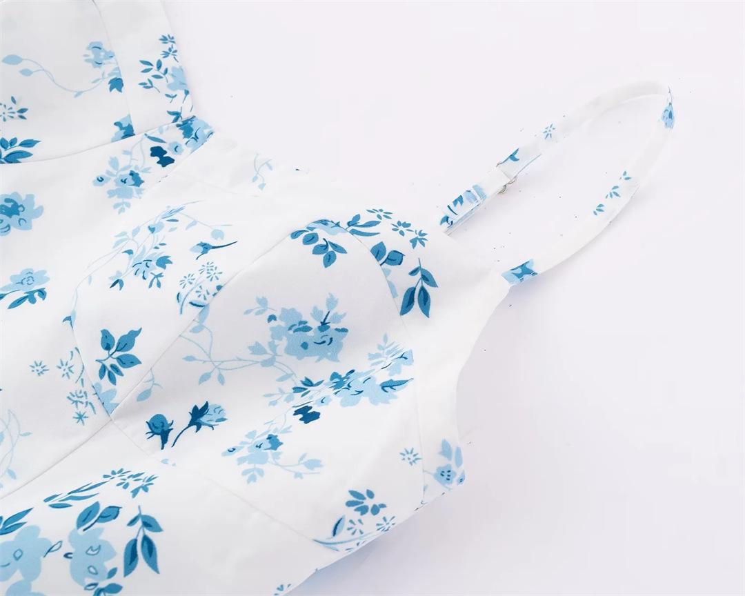 Vestido Francés Nuevo Dulce Floral de Tirantes Verano Espalda Semicelástica Slim Vacaciones Mini Falda A