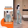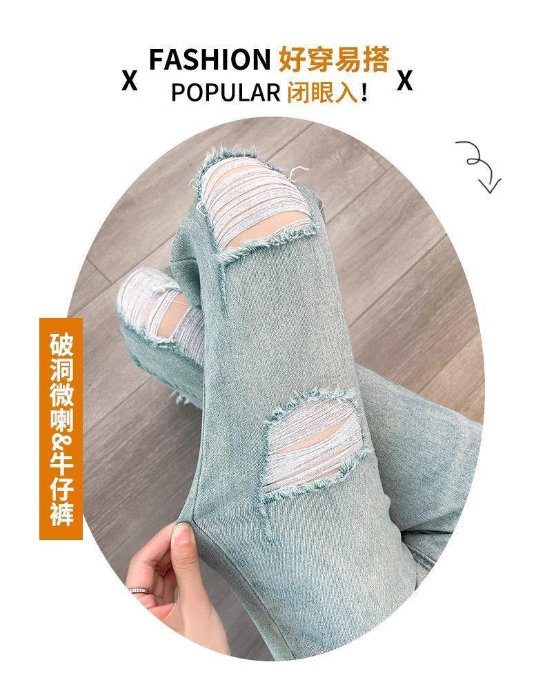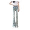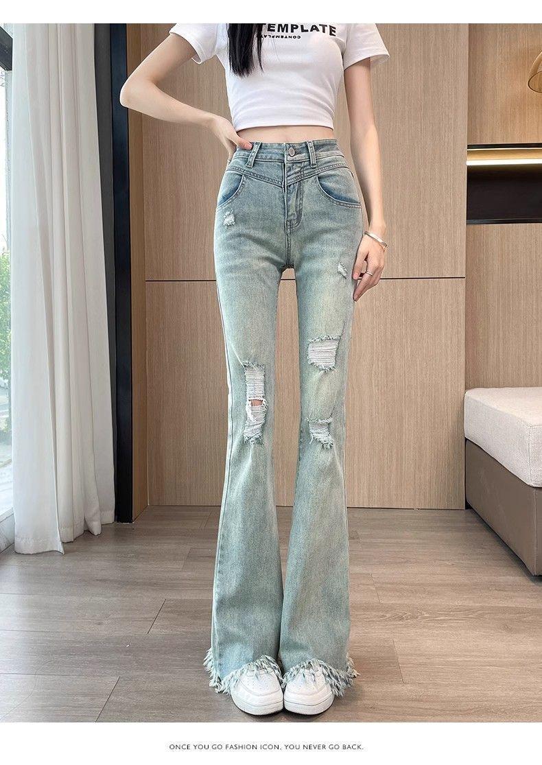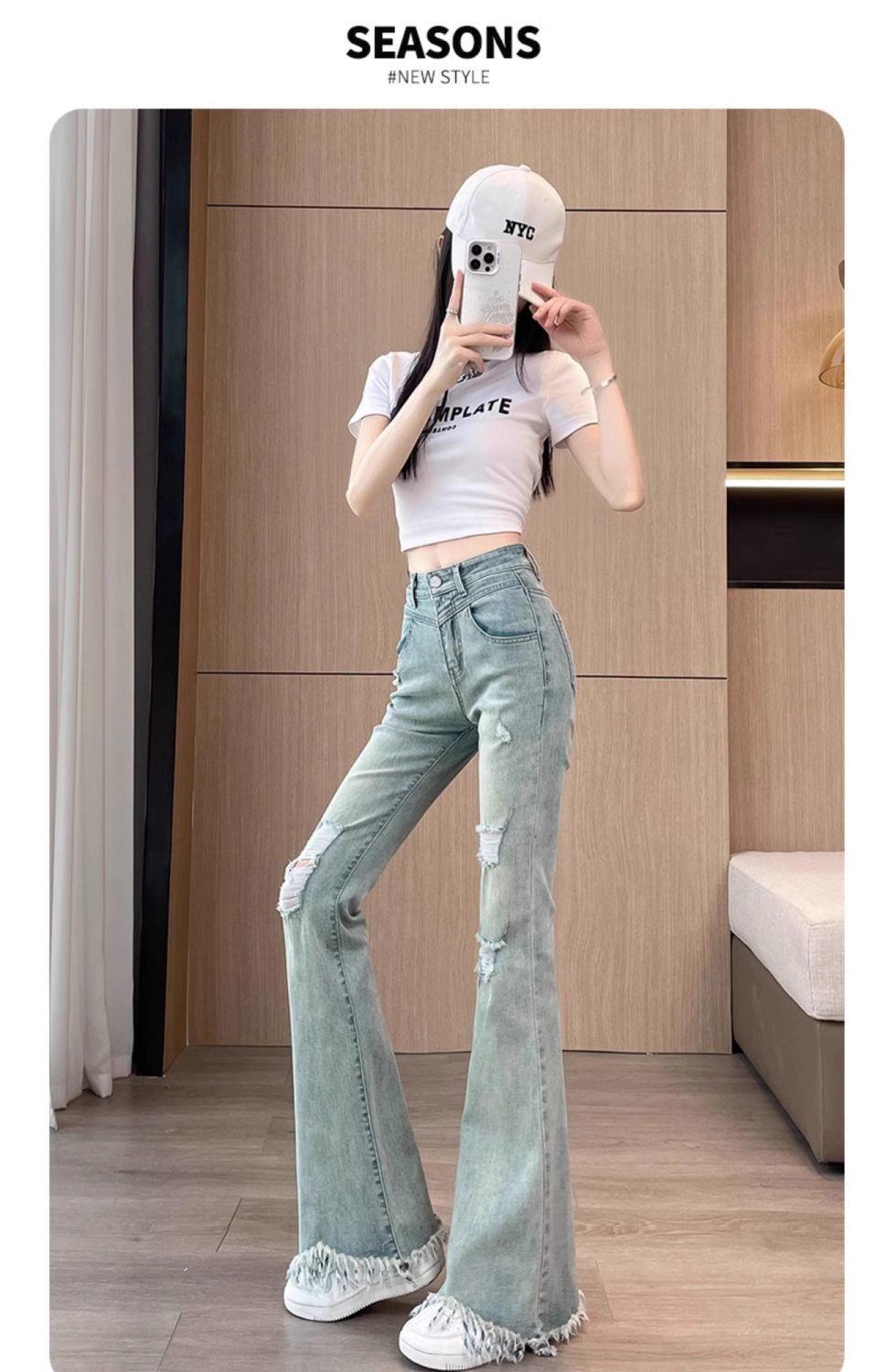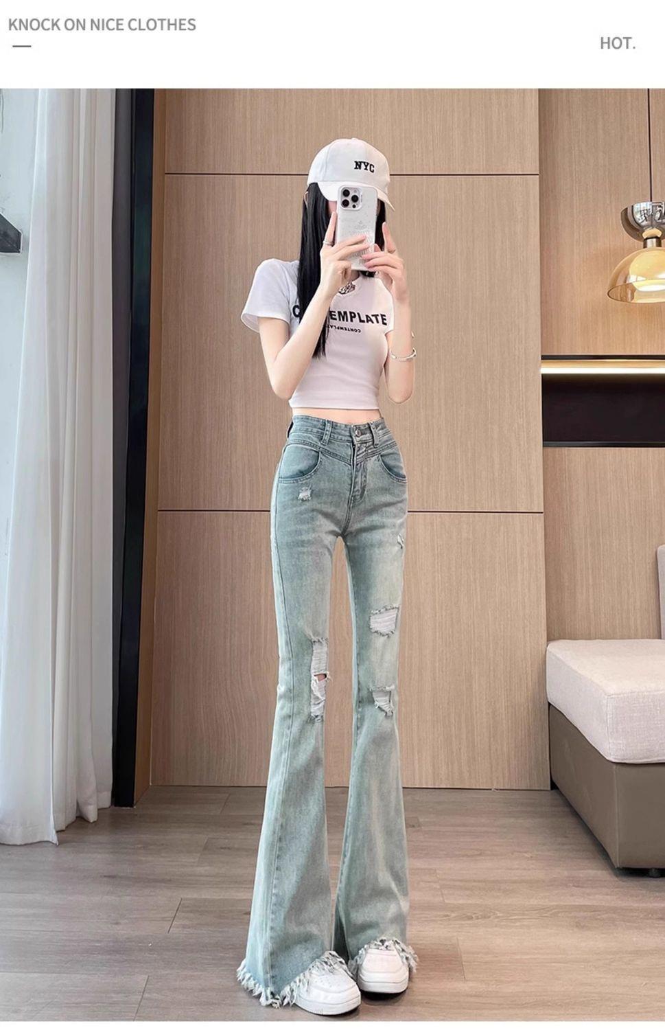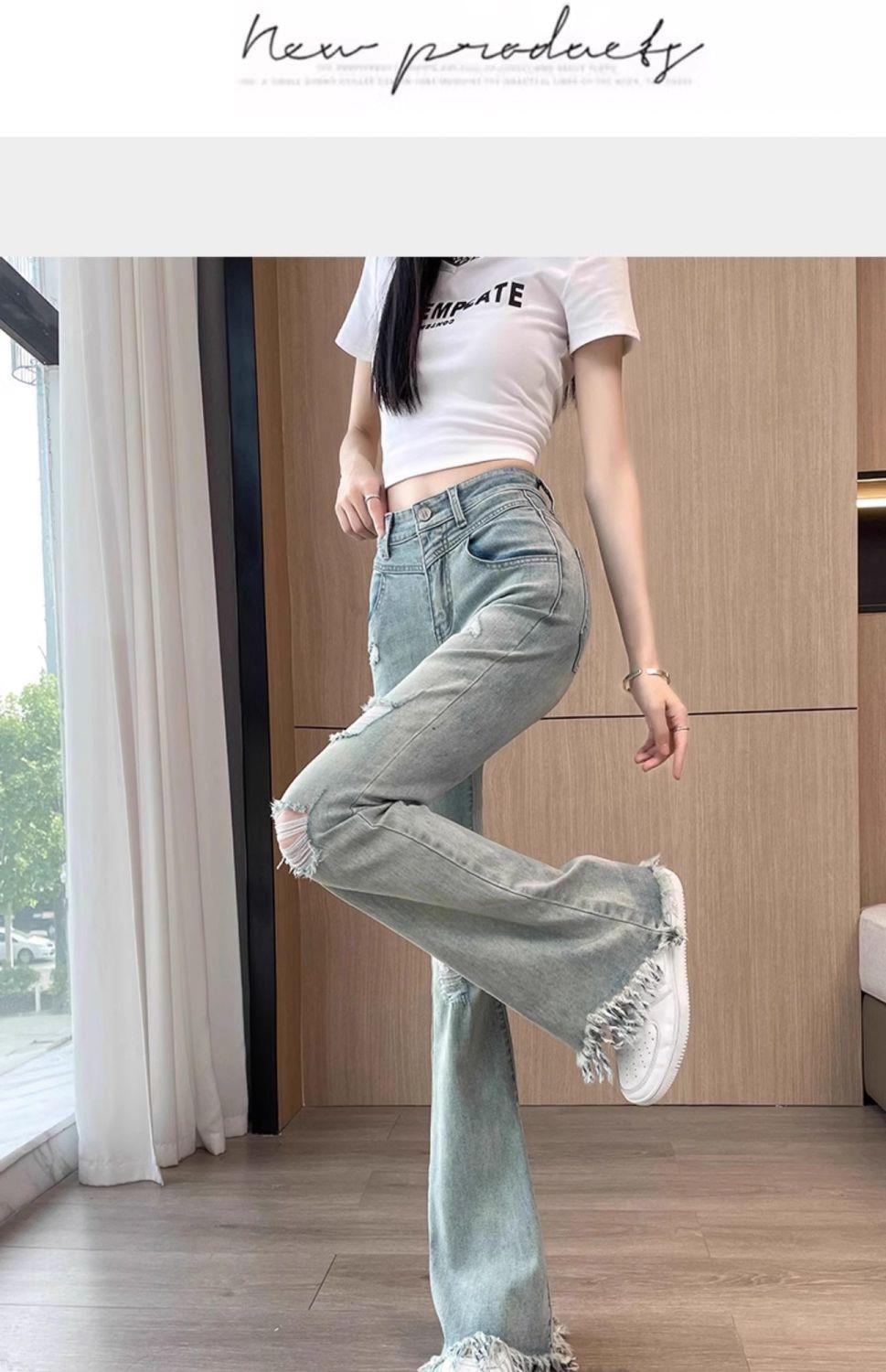 Jeans Rotos de Cintura Alta en Color Claro para Mujer Primavera y Verano 2025 Nuevo Pantalón Acampanado Delgado de Orilla Cruda