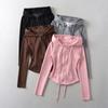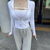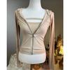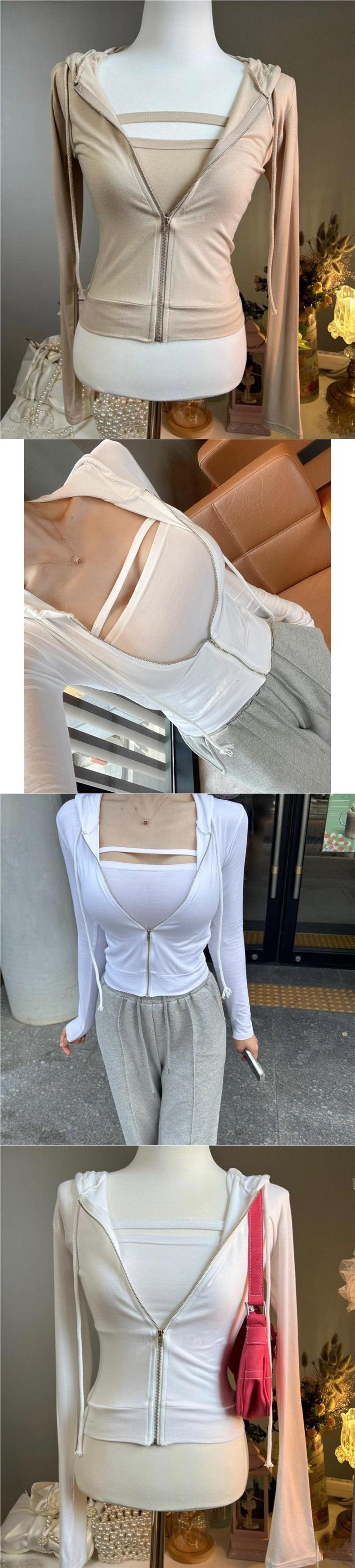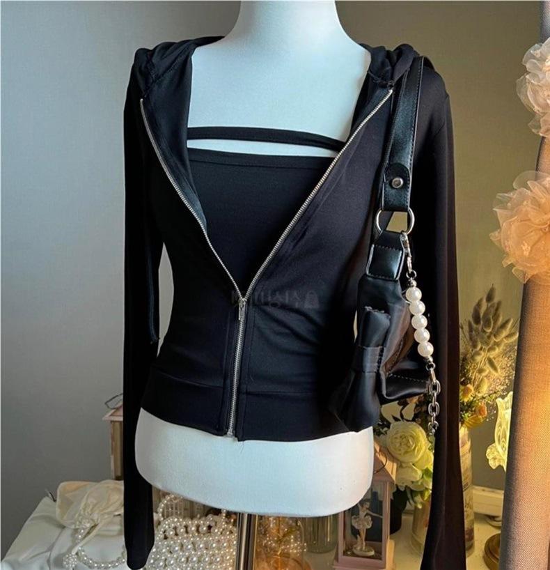 Chaqueta Corta Ajustada con Capucha de Manga Larga Top Cárdigan Sexy Top de Tubo Chaleco Diseño de Moda Deseo Puro Conjunto de Dos Piezas para Mujer
