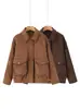 Moda transfronteriza para mujer europea y americana 2025 otoño nuevo simple y elegante textura de gamuza chaqueta bomber con bolsillo tridimensional