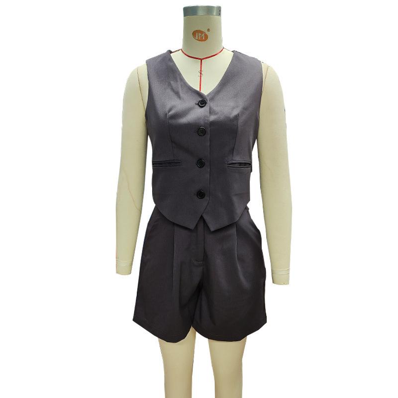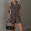 Fd2165 Spot 2025 Verano Europeo y Americano Transfronterizo Holgado Shorts Chaleco Conjunto Casual de Dos Piezas para Mujer