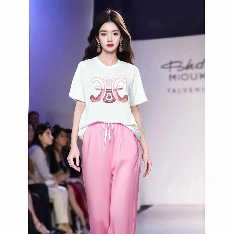 Traje deportivo europeo para mujer verano 2025 nueva moda estilo occidental alta sensación holgado pantalones anchos conjunto de dos piezas marea
