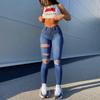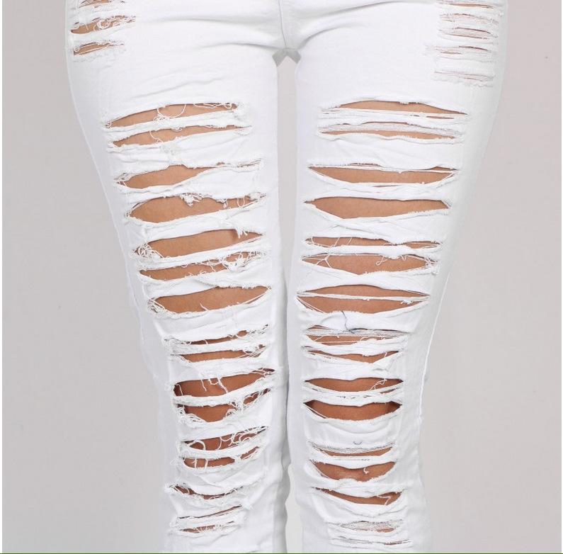 Suministro transfronterizo AliExpress Europa y Estados Unidos jeans de agujero grande moda de mujer personalidad mendigo desgastado leggings elásticos