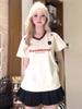 Bordado Cuello en V Hombro Recto Manga Corta Camiseta Mujer Diseño Adelgazante Holgado Nicho Bloque de Color Camiseta Top Verano Chica Picante Americana