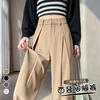 Pantalones Casuales de Verano 2025 Nuevos Pantalones Slim Holgados de Pierna Recta Color Sólido Negro Francés Pantalones de Pierna Ancha Mujer