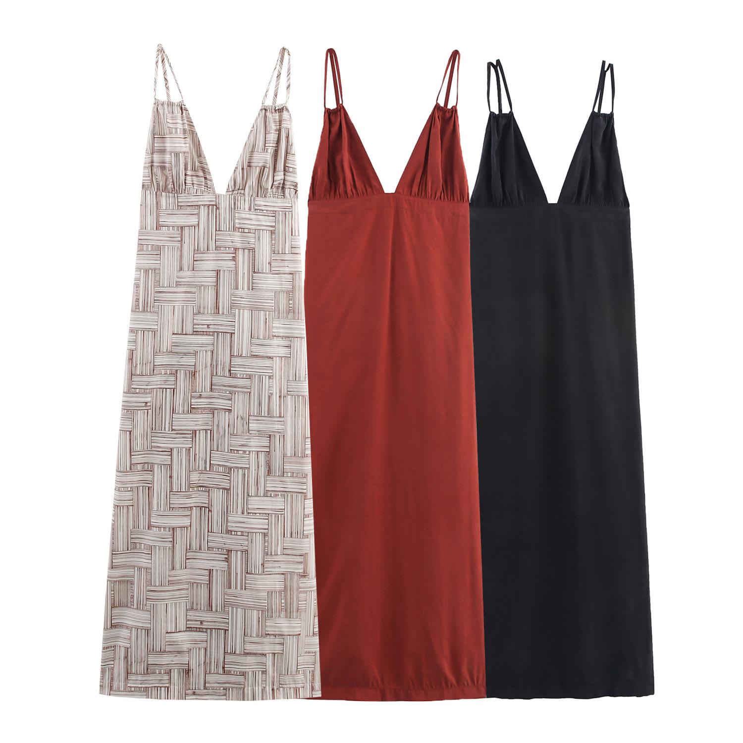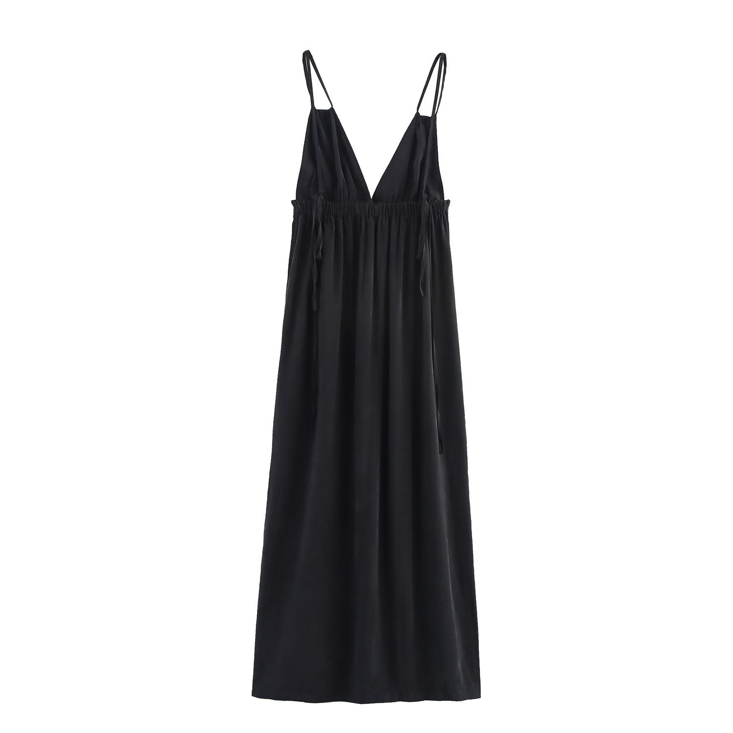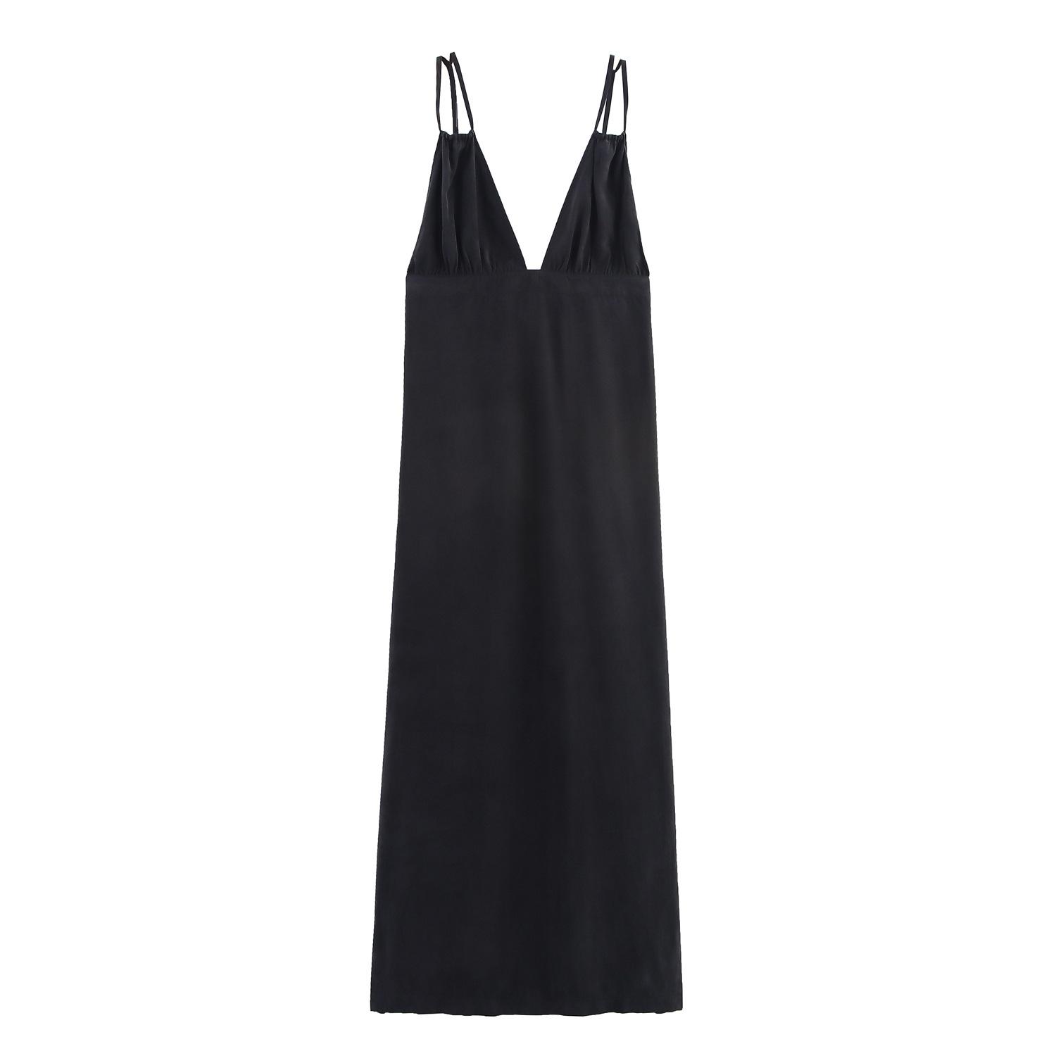 Ropa Europea y Americana Transfronteriza Aliexpress Popular Vestido Largo con Pliegues y Cuello en V