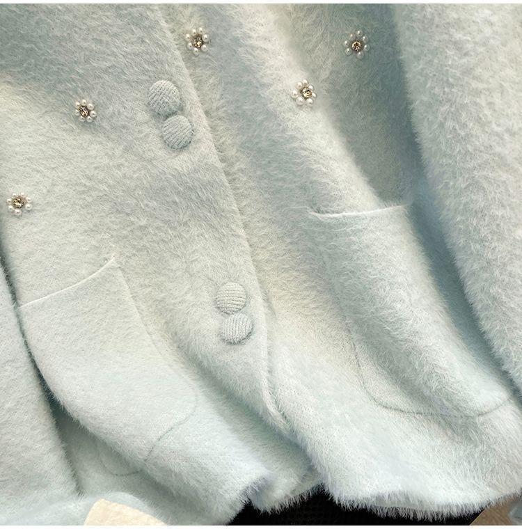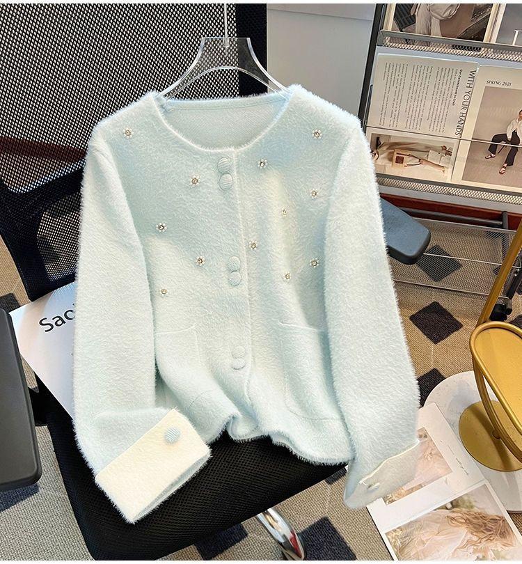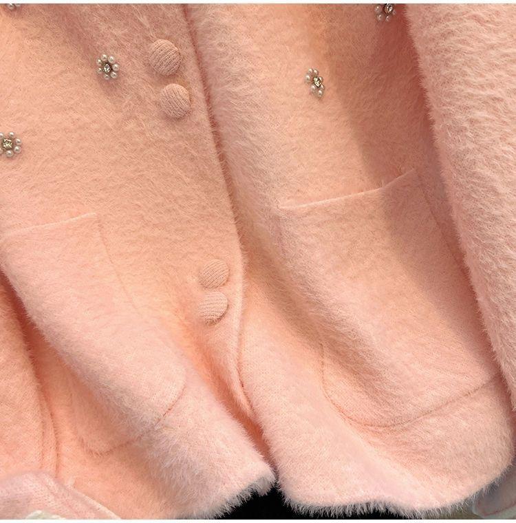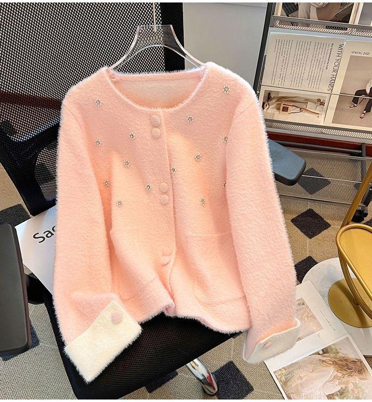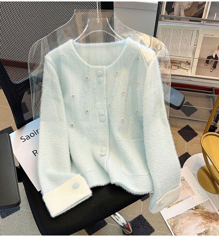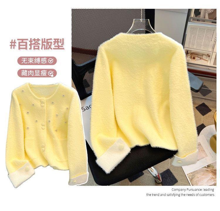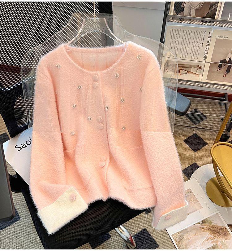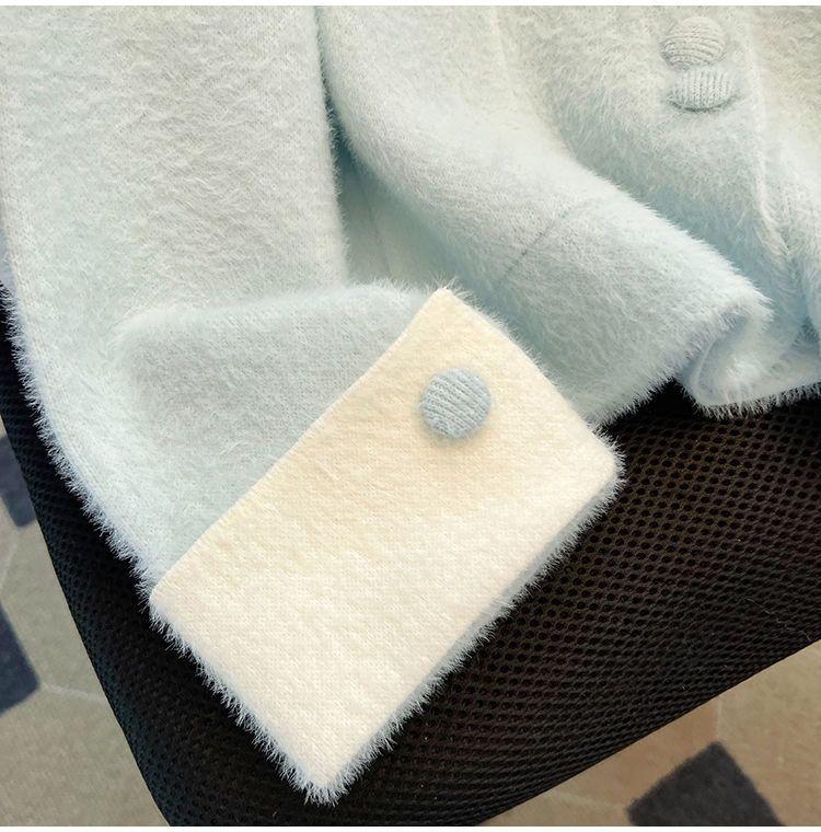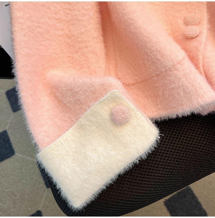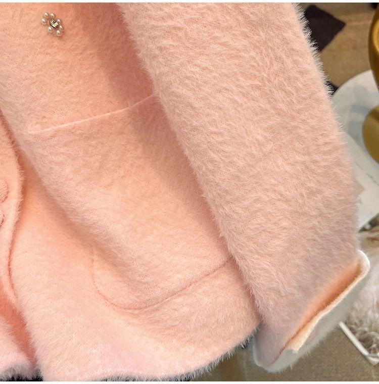 2025 Nuevo Estilo Abrigo Holgado de Moda Tipo Visón Estilo Chic Pequeño Fragante Temperamento Dulce y Gentil Bloque de Color Chic Versátil