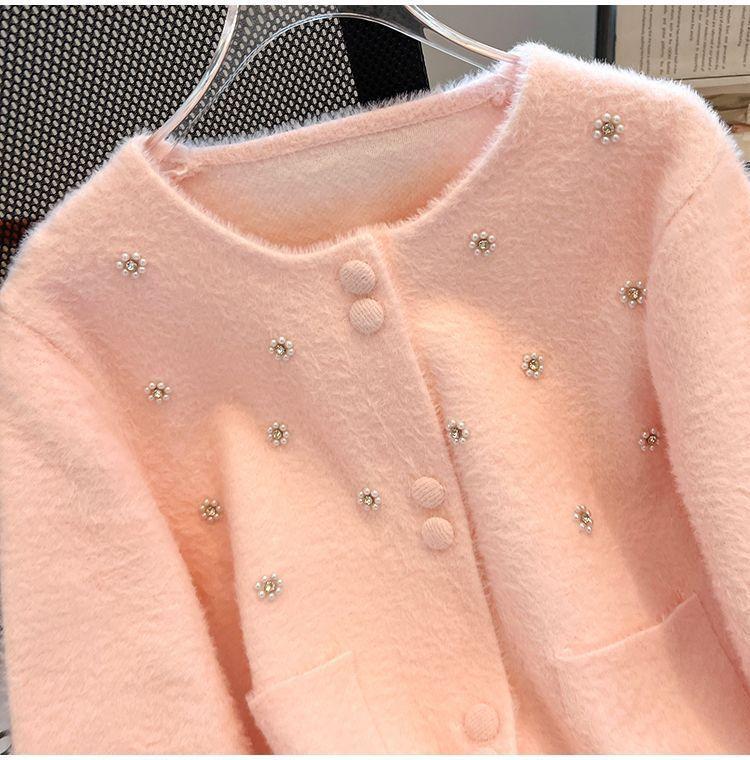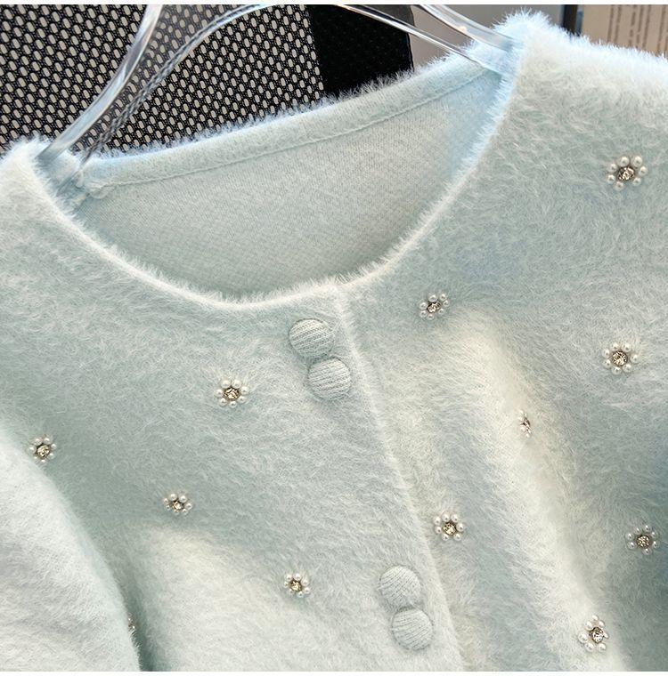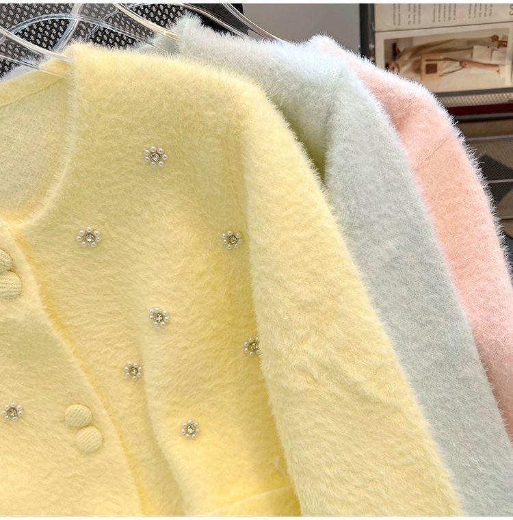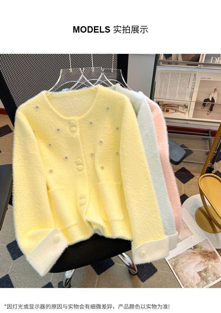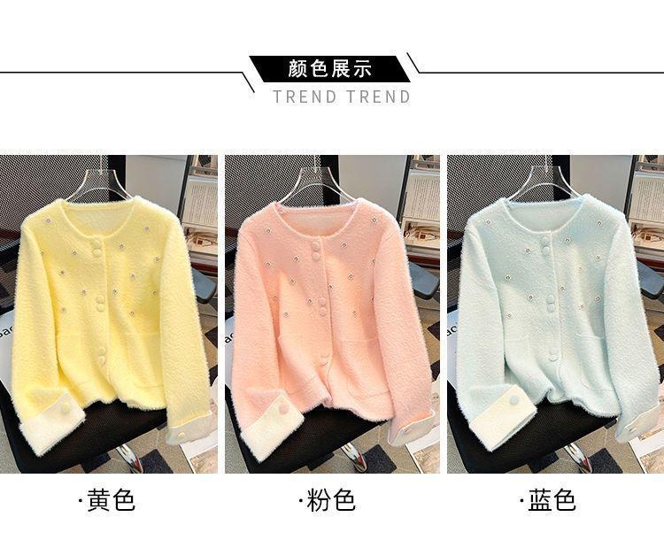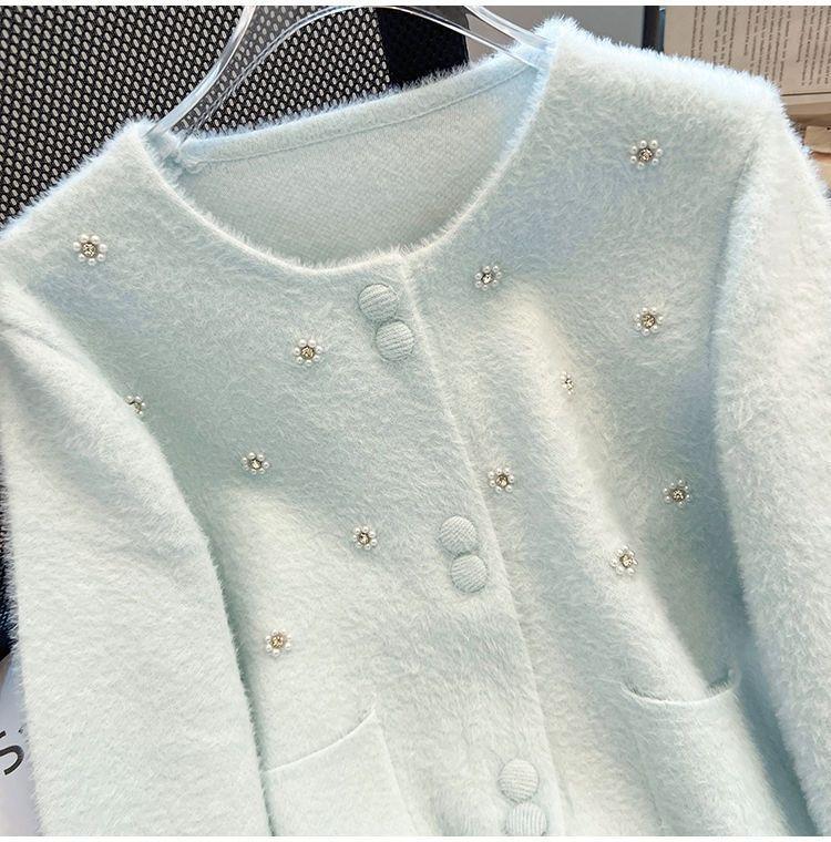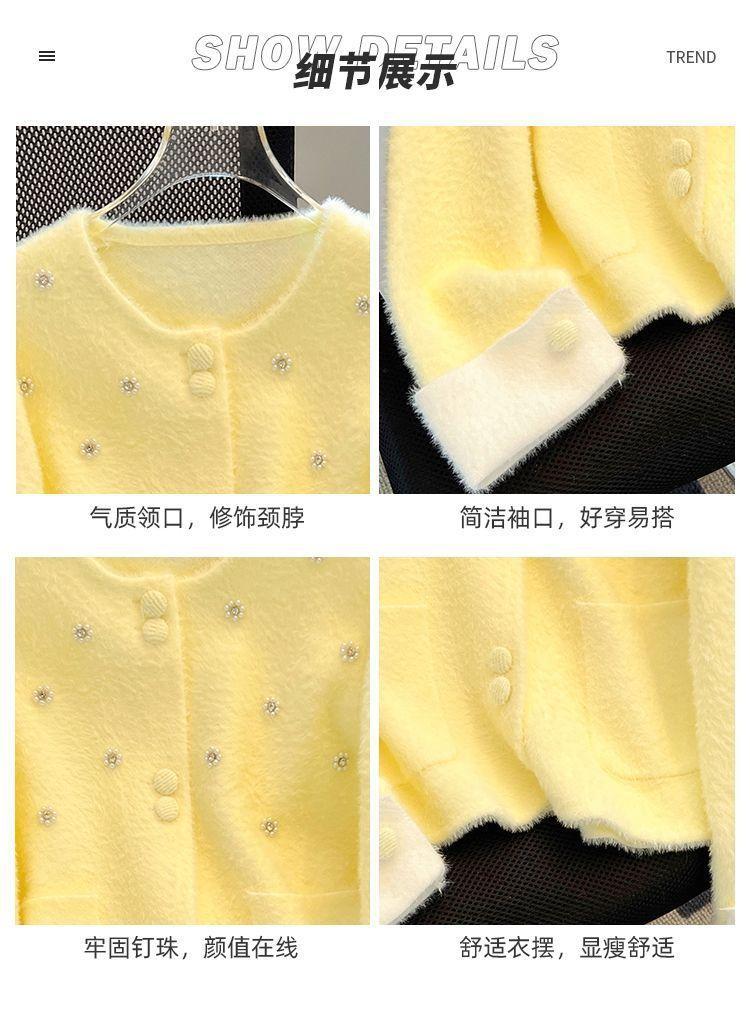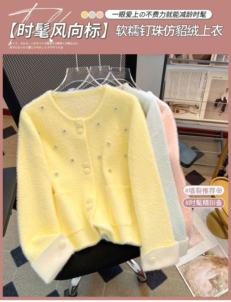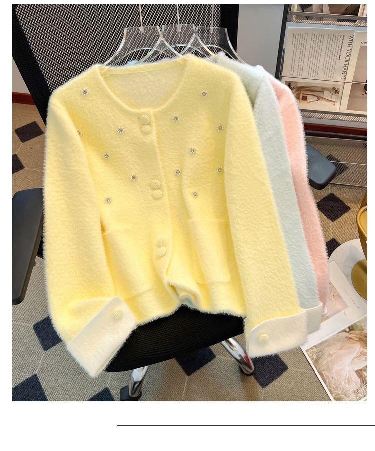 2025 Nuevo Estilo Abrigo Holgado de Moda Tipo Visón Estilo Chic Pequeño Fragante Temperamento Dulce y Gentil Bloque de Color Chic Versátil
