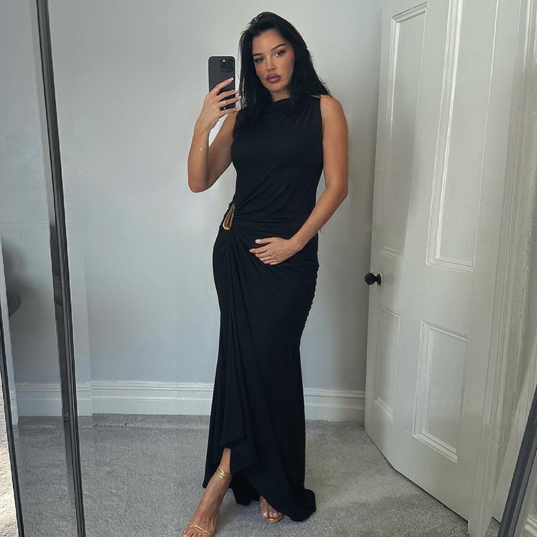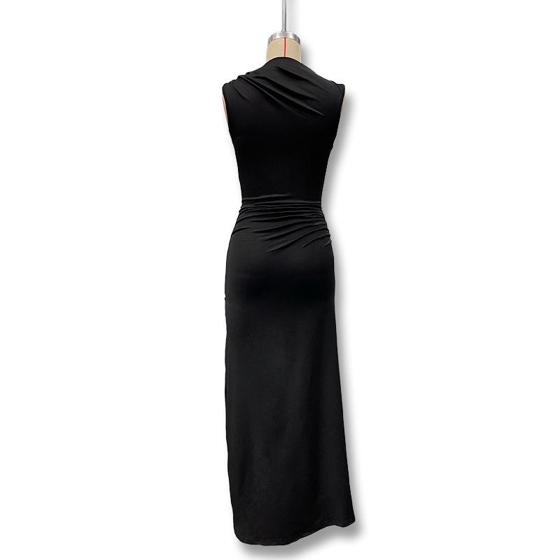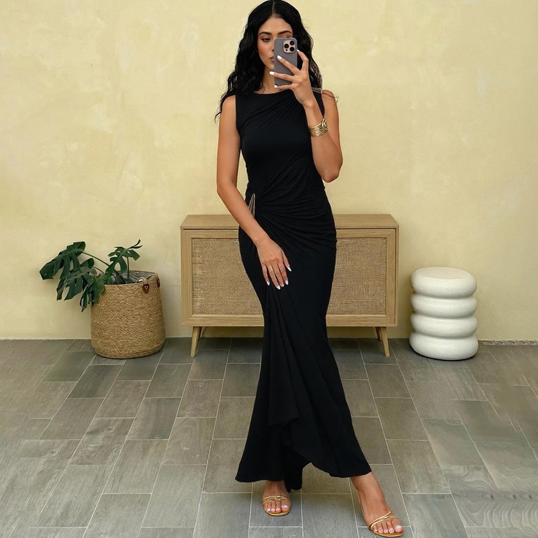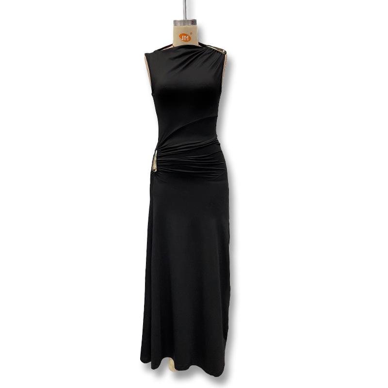 2025 Nuevo Vestido de Moda Femenina Transfronteriza Europea y Americana Sexy Ajustado Decorativo Metálico Cubre Caderas Plisado Sin Mangas para Mujer