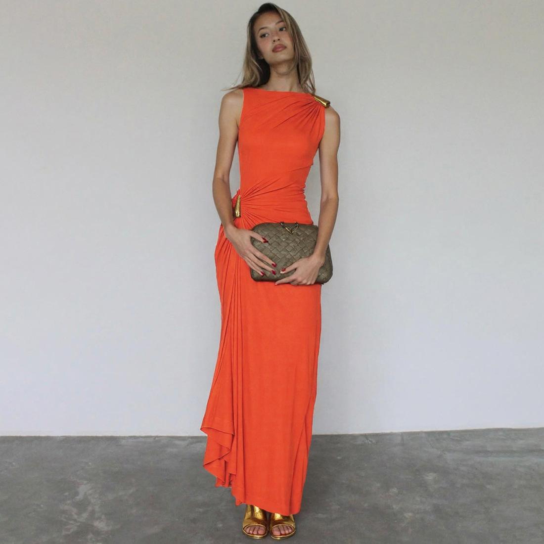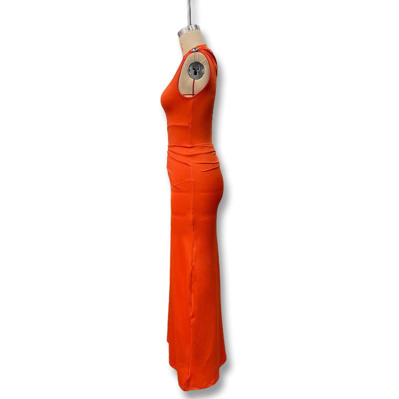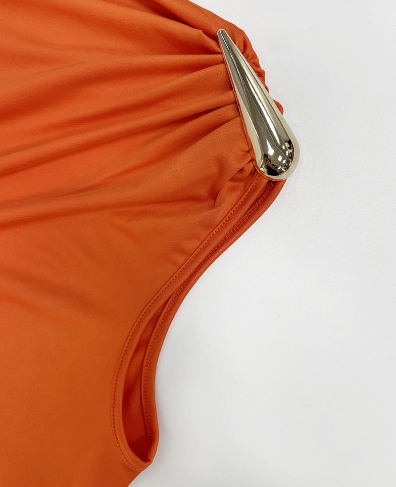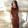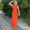 2025 Nuevo Vestido de Moda Femenina Transfronteriza Europea y Americana Sexy Ajustado Decorativo Metálico Cubre Caderas Plisado Sin Mangas para Mujer