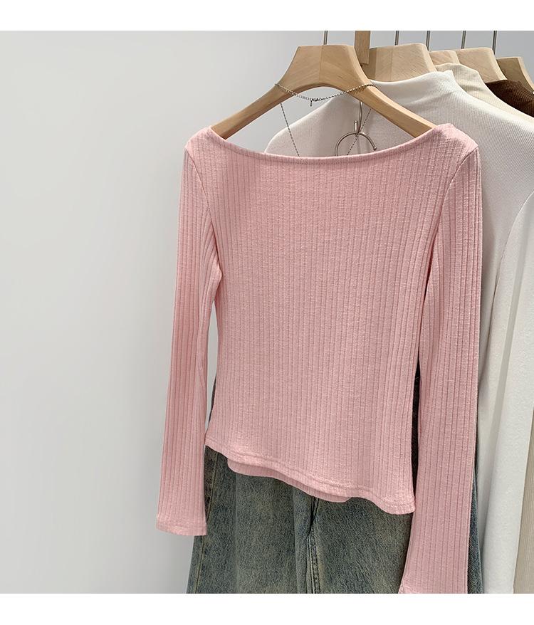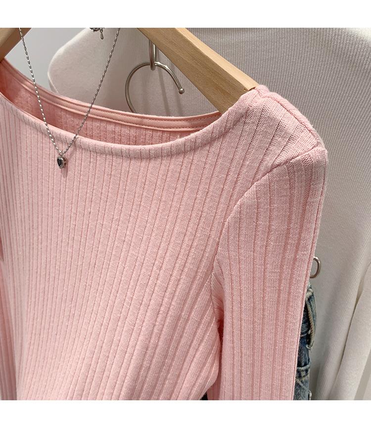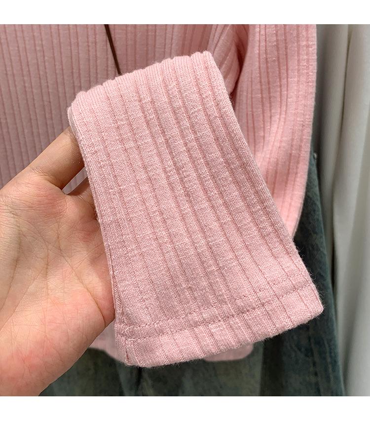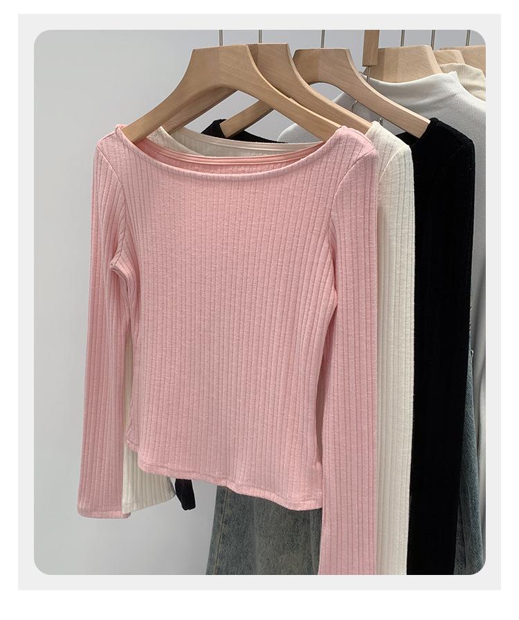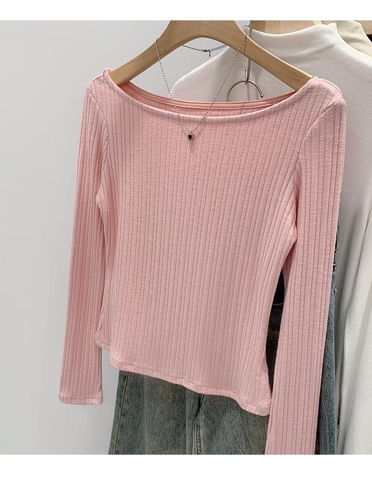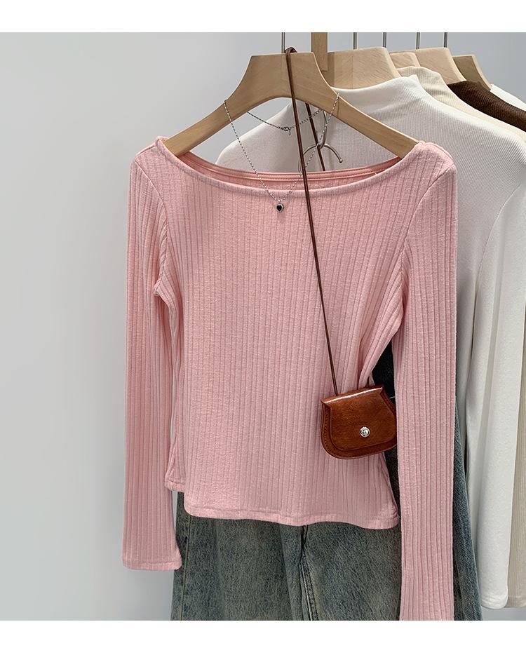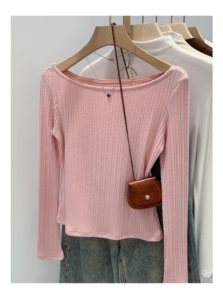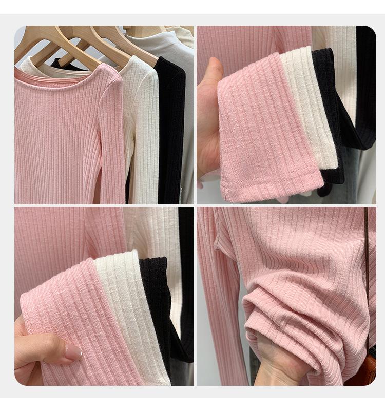 Camiseta Rosa Americana de Moda Simple de Manga Larga para Mujer Tendencia 2025 Principios de Otoño Nuevo Estilo Coreano Tan Hermosa Top de Ropa Interior