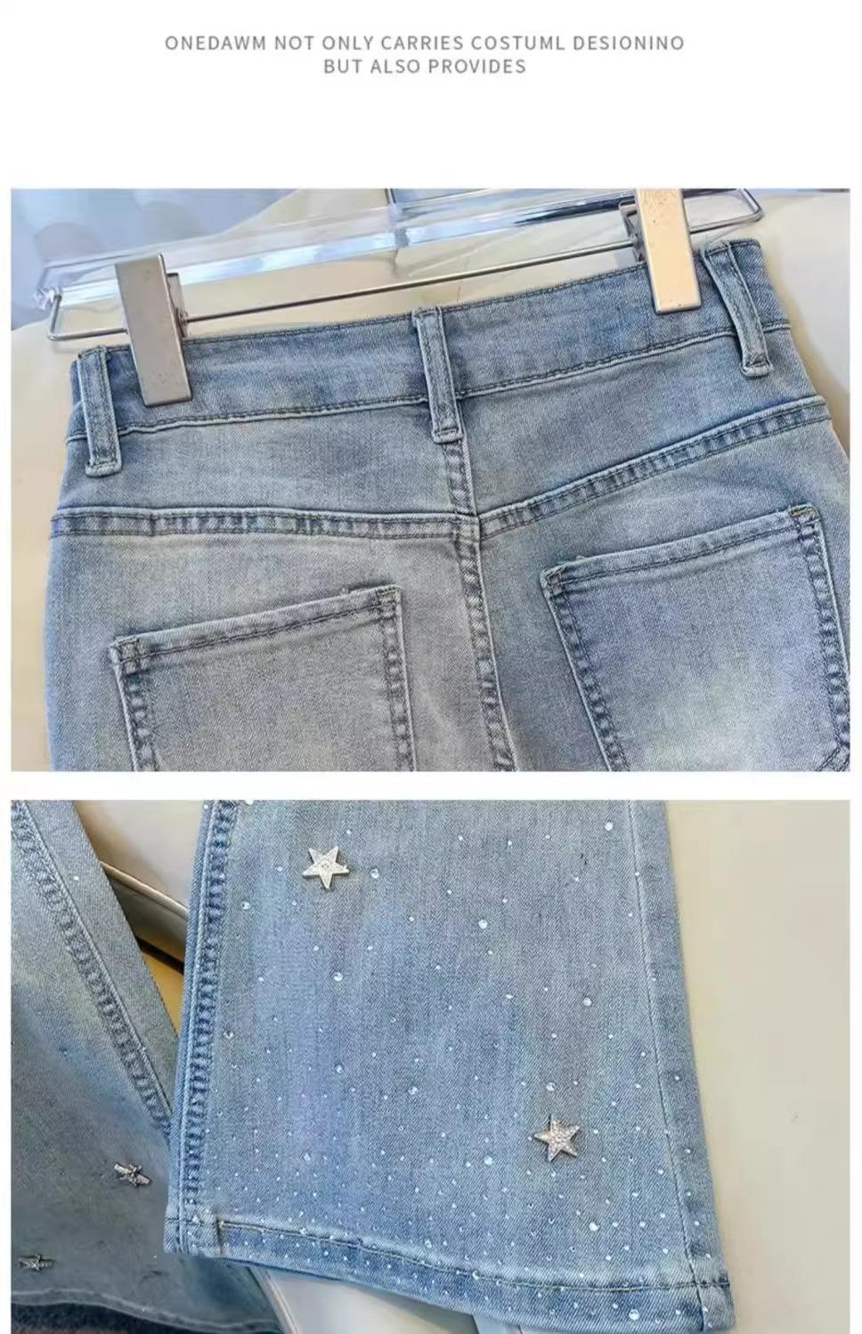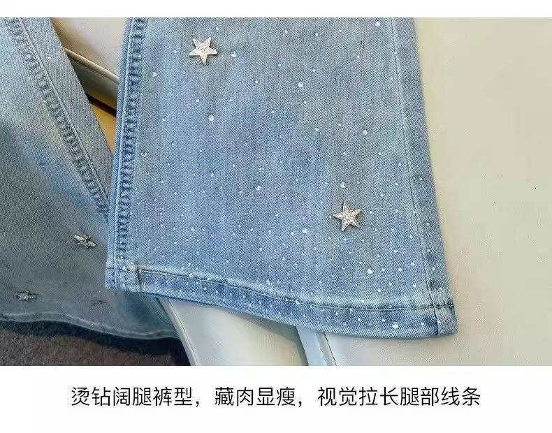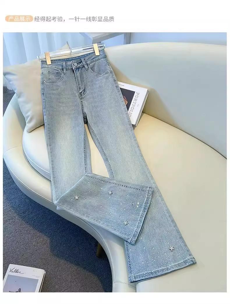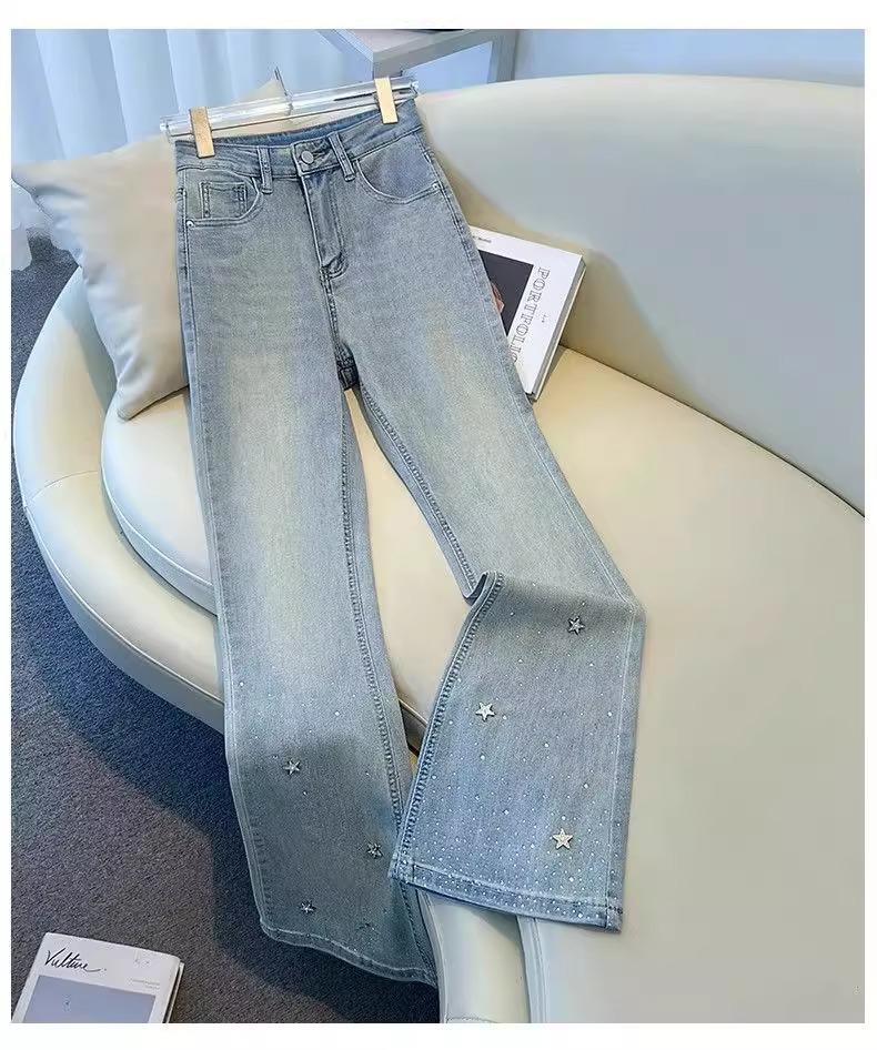 Jeans Acampanados Petite para Mujer Verano 2025 Nuevo Estrás de Estrella Cintura Alta Adelgazantes Pierna Ancha Largos hasta el Piso Pantalones Acampanados
