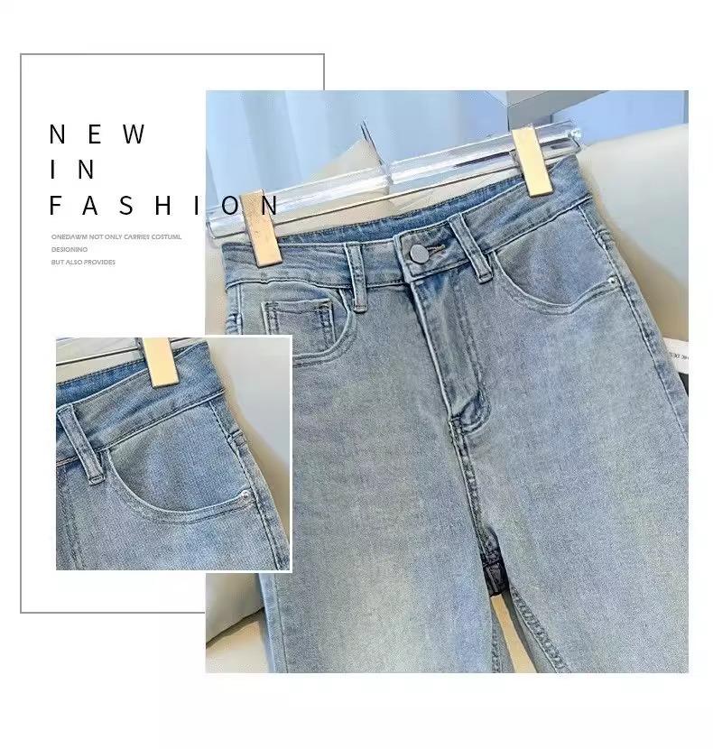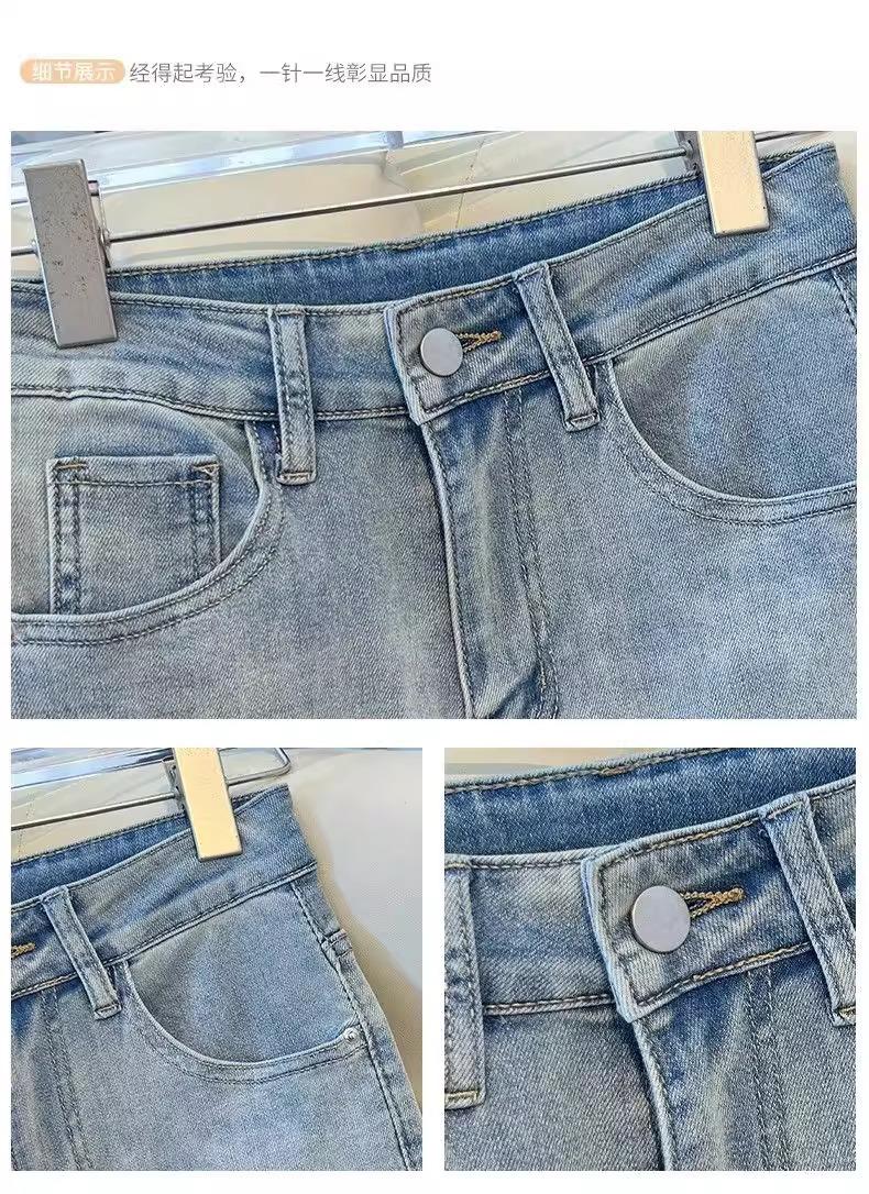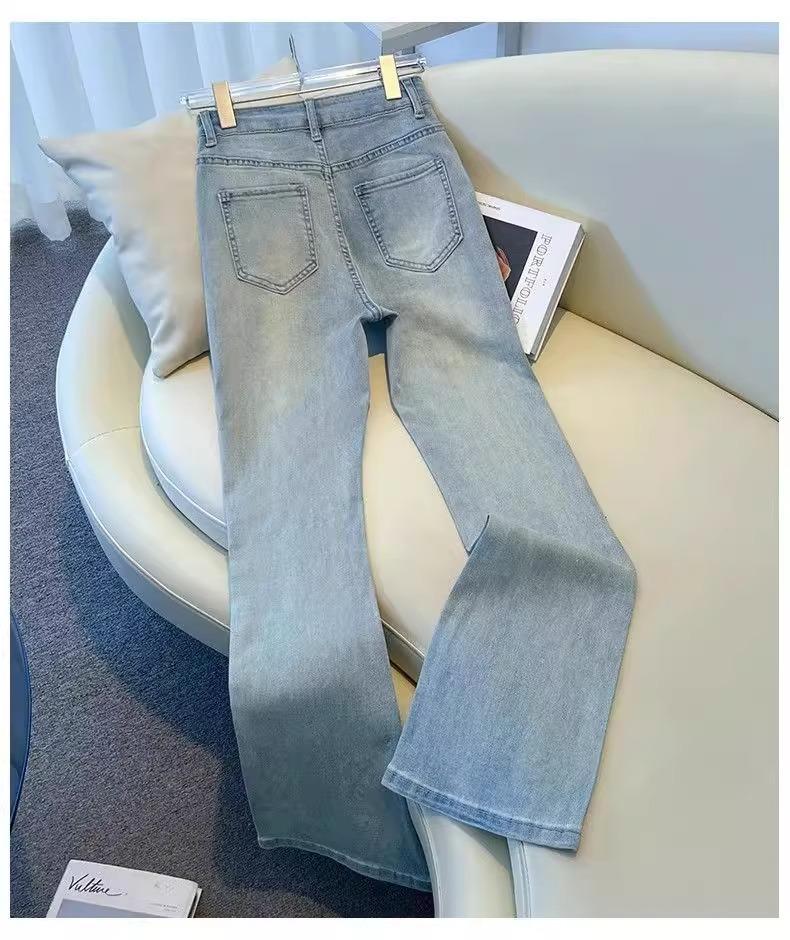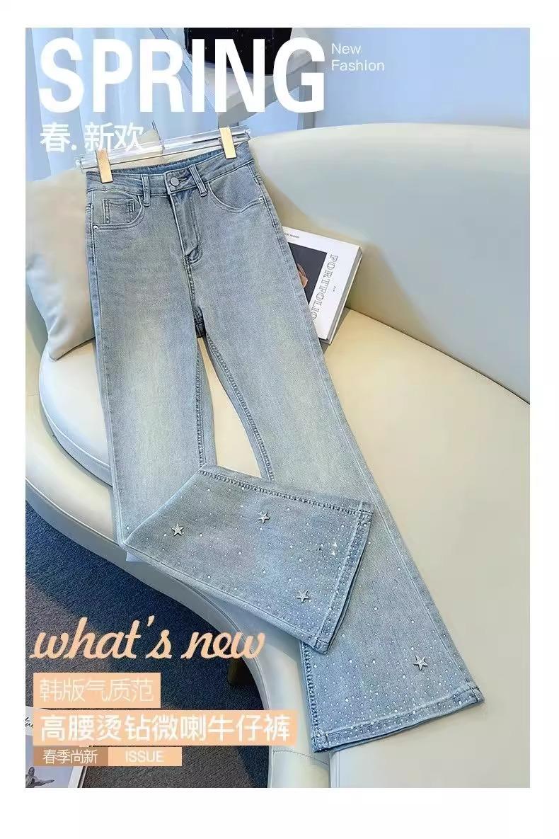 Jeans Acampanados Petite para Mujer Verano 2025 Nuevo Estrás de Estrella Cintura Alta Adelgazantes Pierna Ancha Largos hasta el Piso Pantalones Acampanados