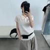 2025 Verano Polo Cuello Rayas Manga Corta Diseño Moderno Versátil Cuello Redondo Tejido Camiseta Top para Mujer Ins