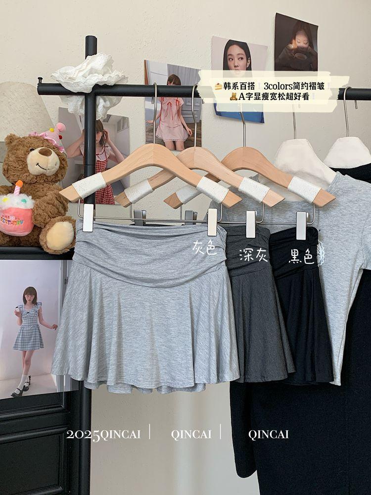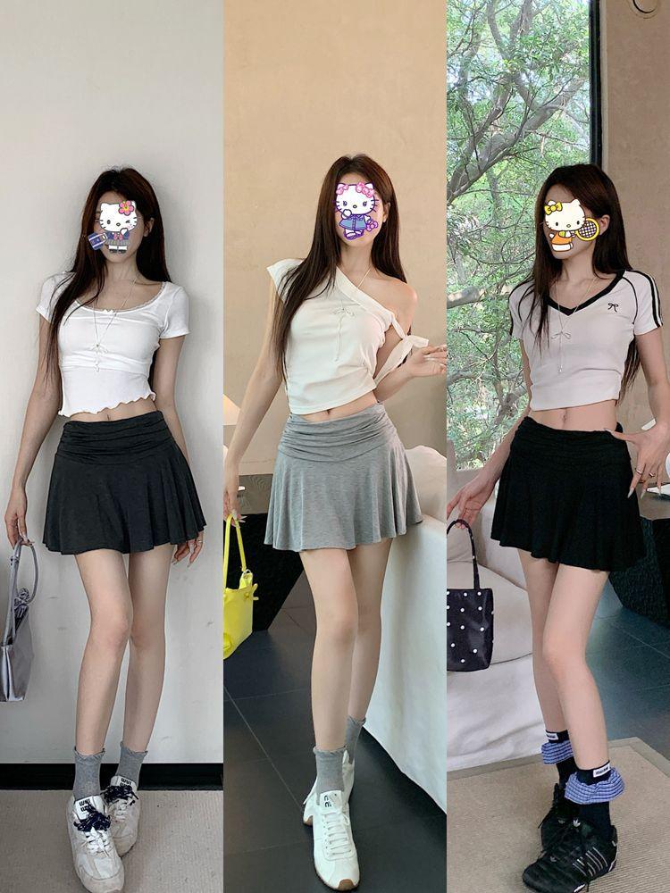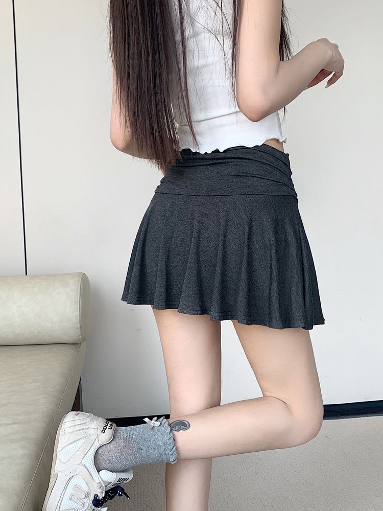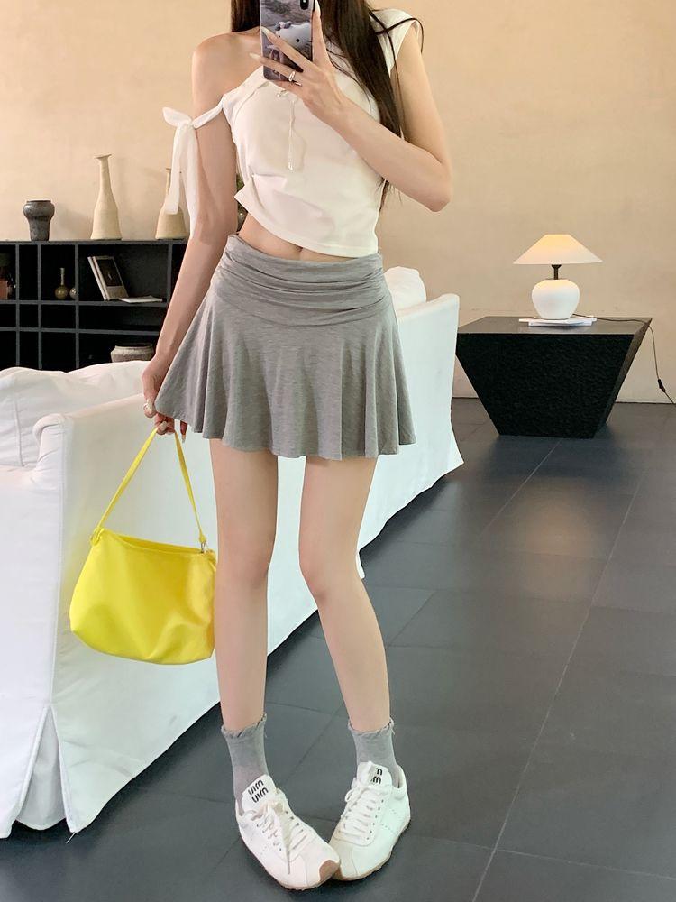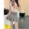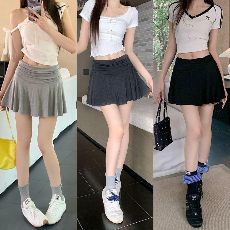 Falda Americana Gris Estilo Deportivo Plisada A-Line para Mujer Verano Nueva Cintura Alta Look Adelgazante Anti-Exposición Falda Corta Versátil