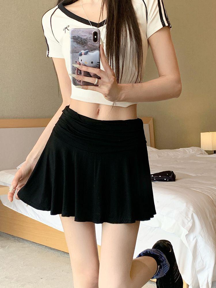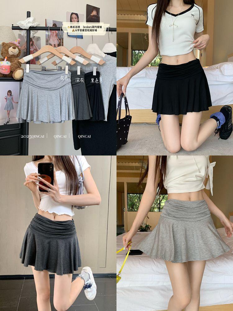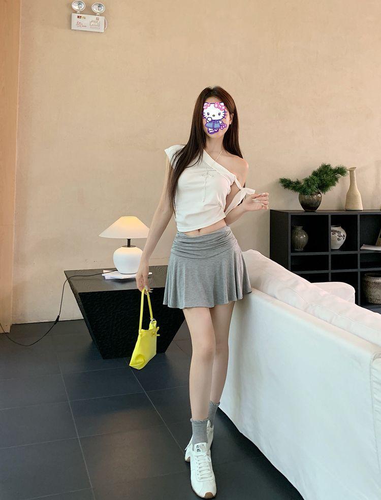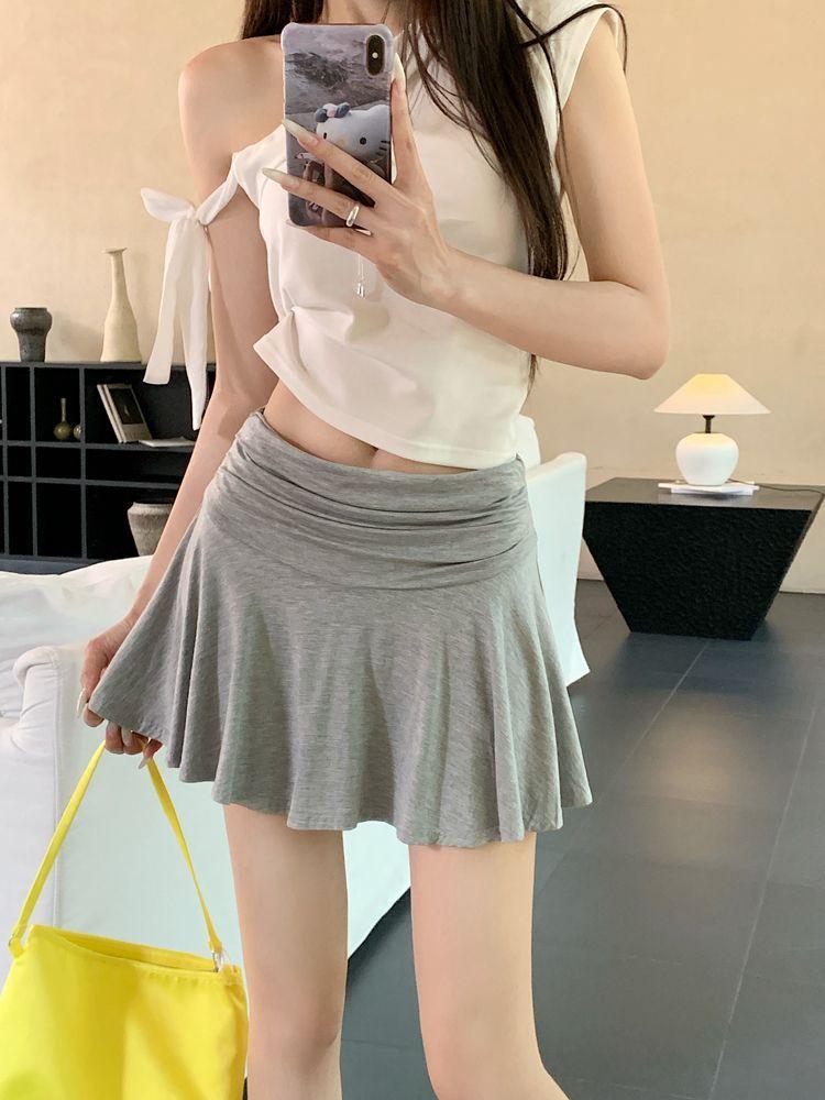 Falda Americana Gris Estilo Deportivo Plisada A-Line para Mujer Verano Nueva Cintura Alta Look Adelgazante Anti-Exposición Falda Corta Versátil
