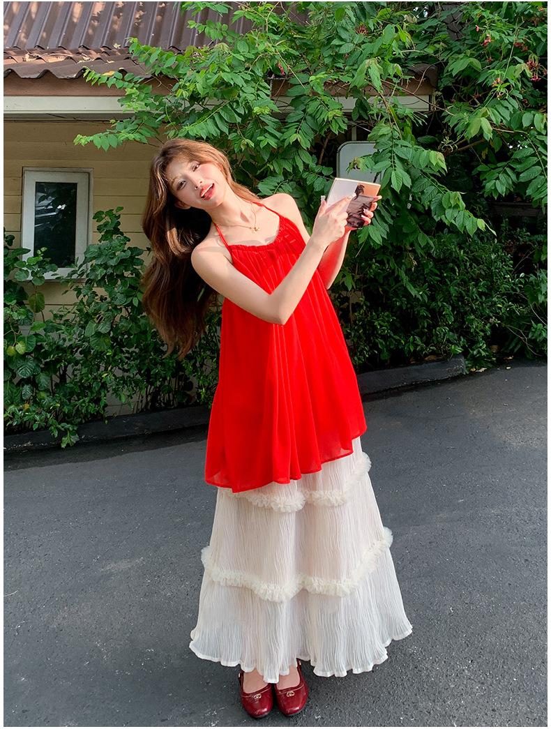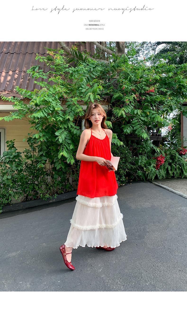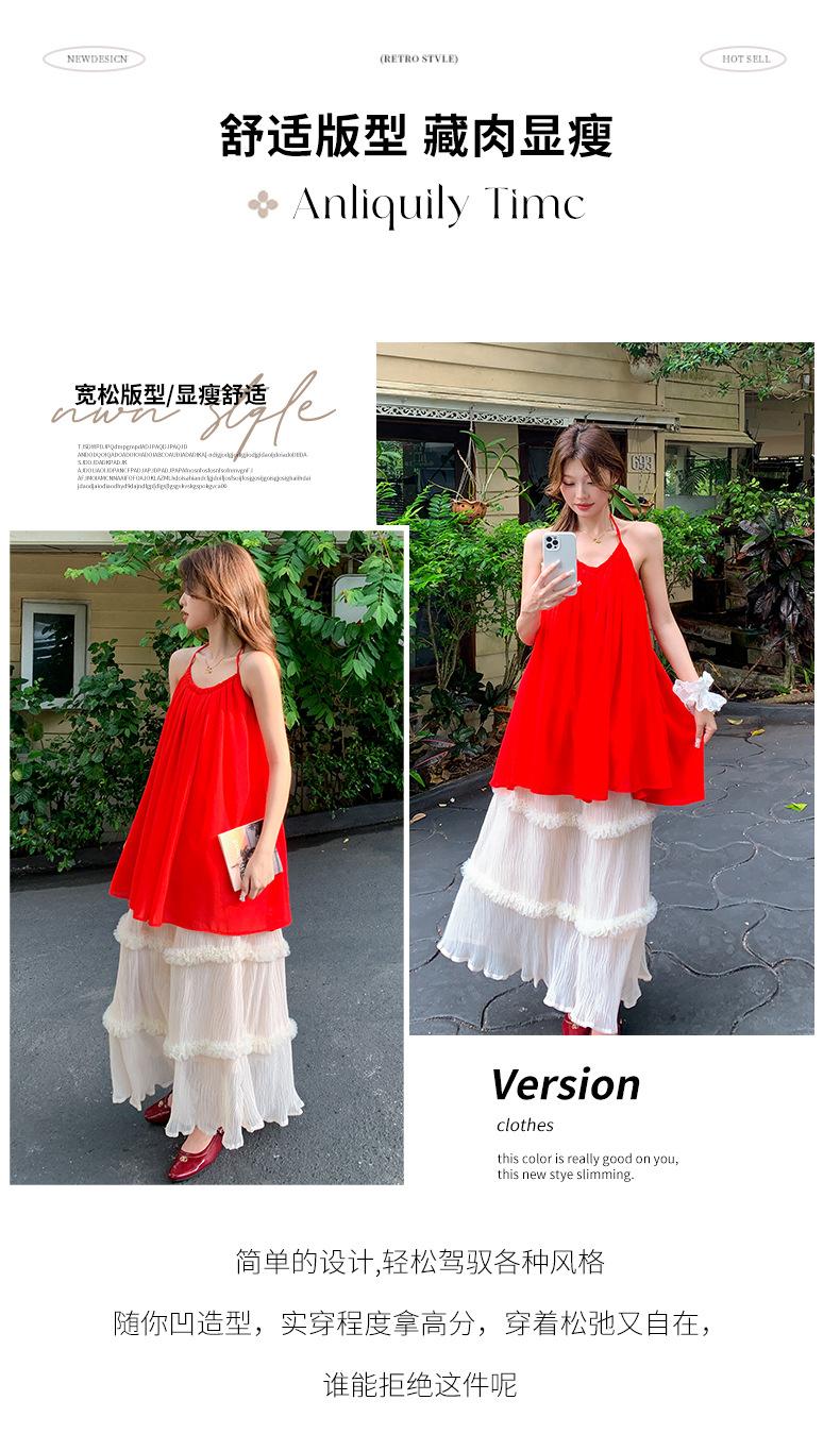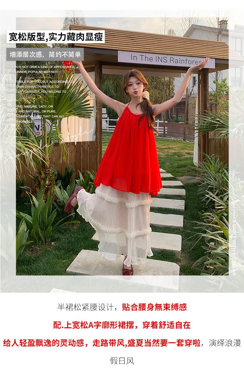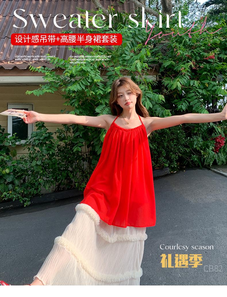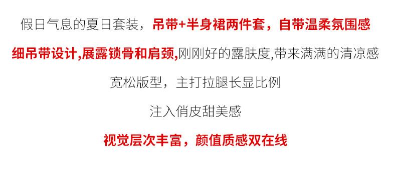 2025 Nueva Moda de Verano Versátil Casual Reductor de Edad Cómodo Tirantes + Falda Estilo Vacacional Traje de Color Contrastante